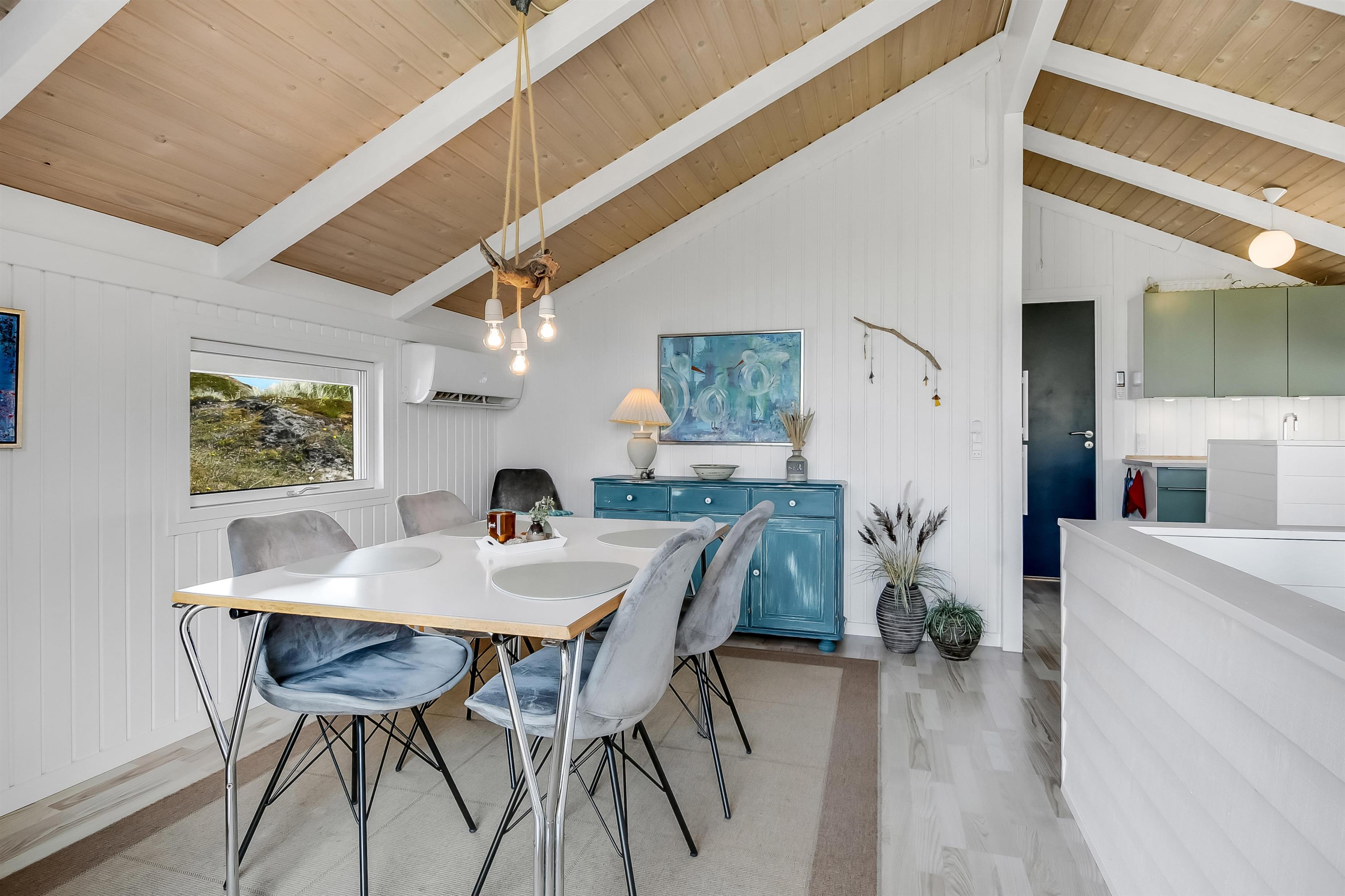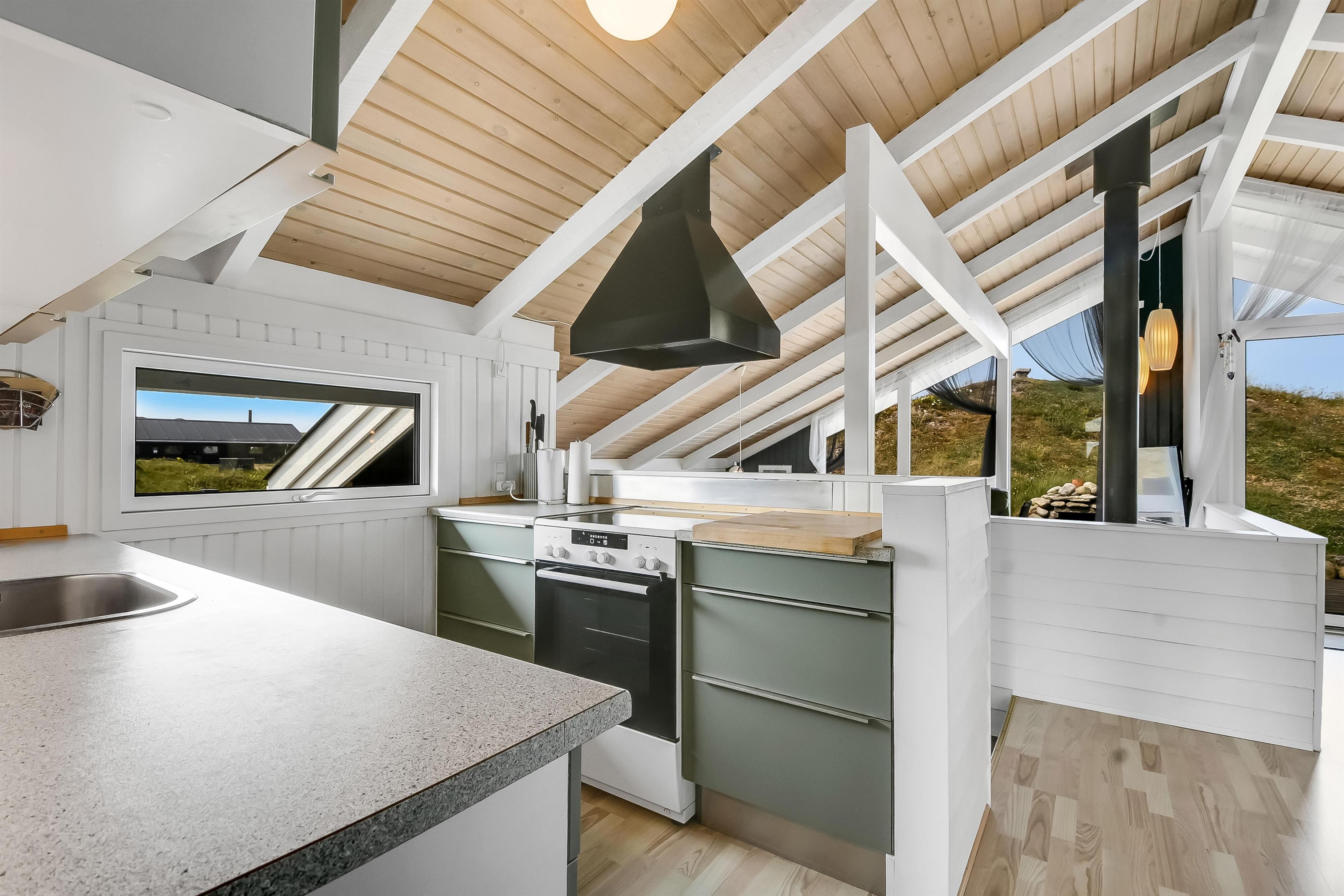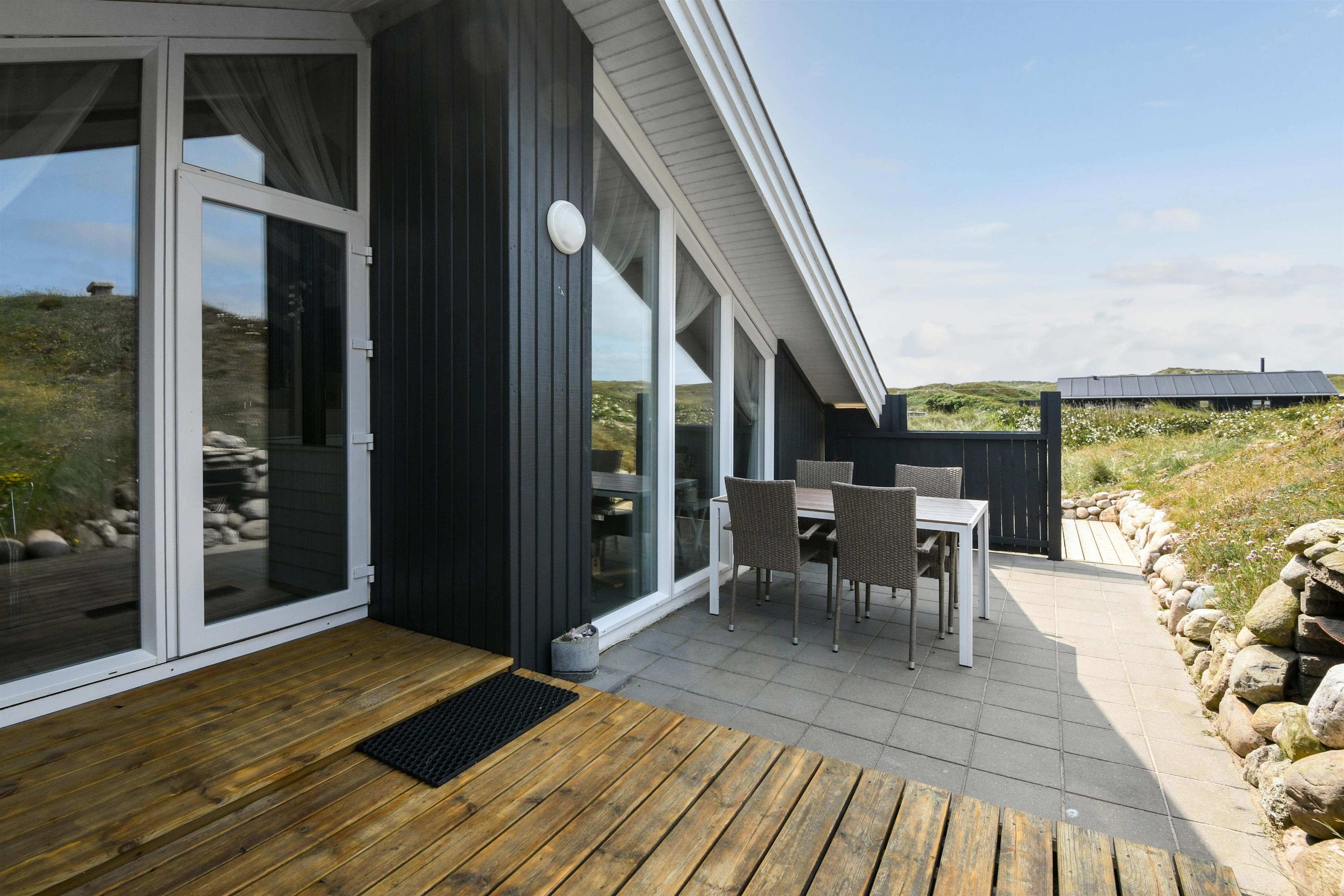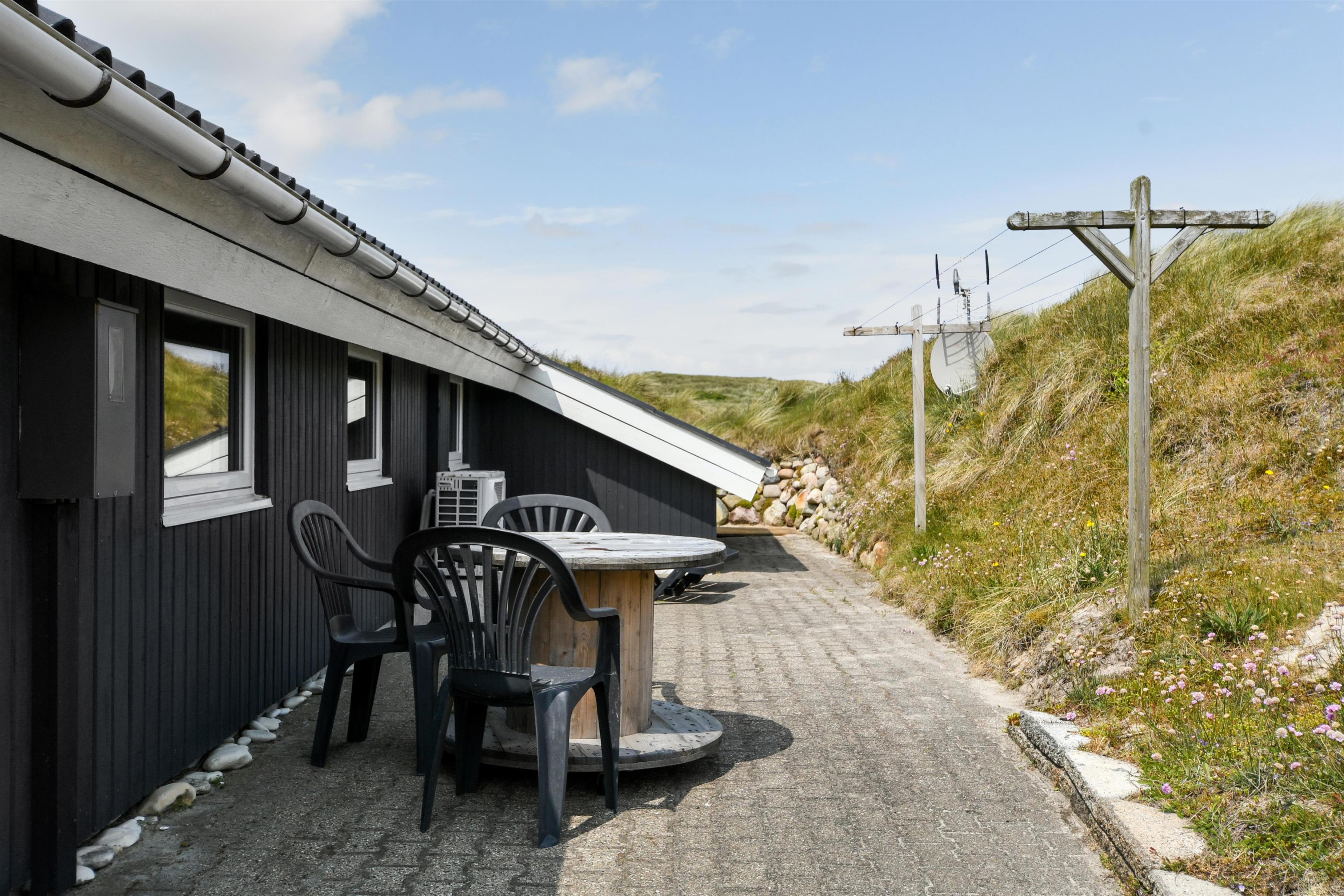 Das Haus ist auf einem Dünengrundstück gelegen in das schöne Gebiet Vejlky Klit. Vom Haus haben Sie Ausgang zur offener neurenovierten Terrassen die mit Gartenmöbeln und Sonnenliegen und Grill ausgestattet sind. Wenn Sie auf der Terrasse sind können Sie die Rauschen vom Nordsee hören. Das Haus hat in 2025 neue Fenster überall bekommen.