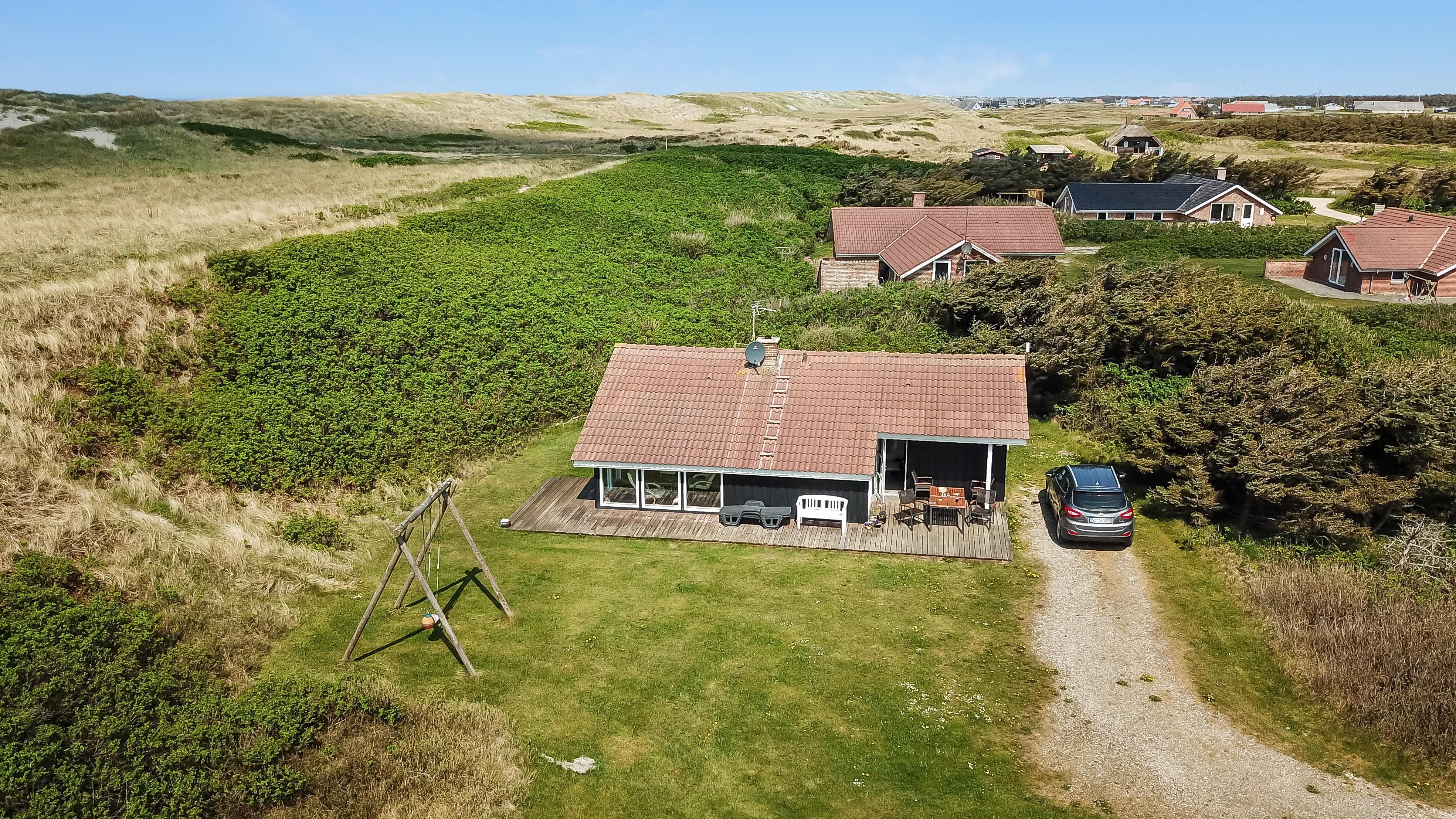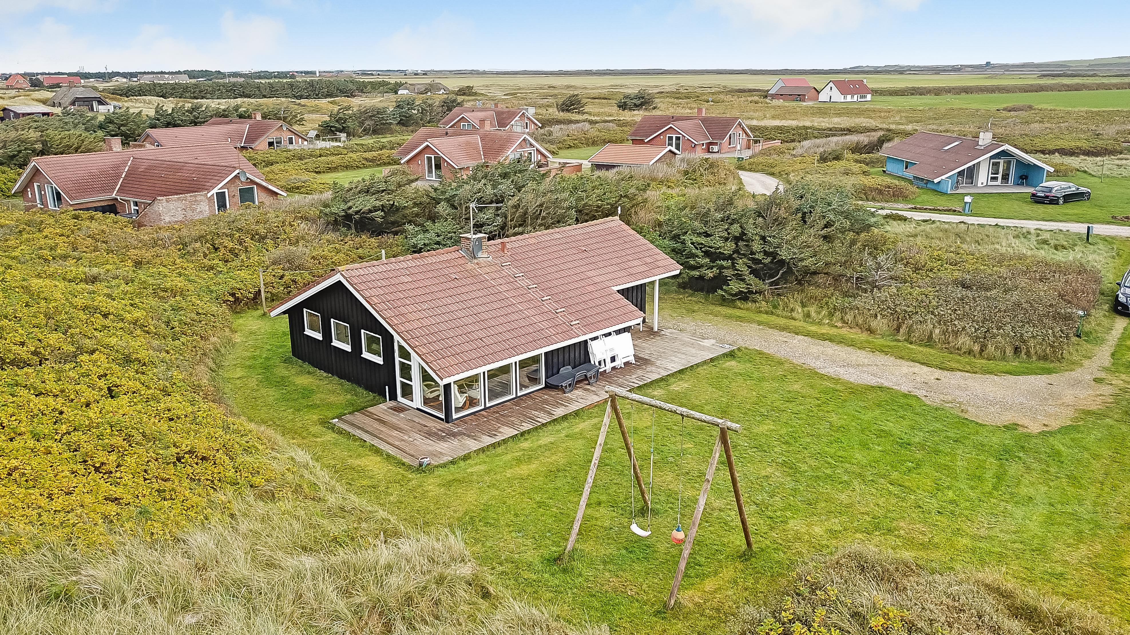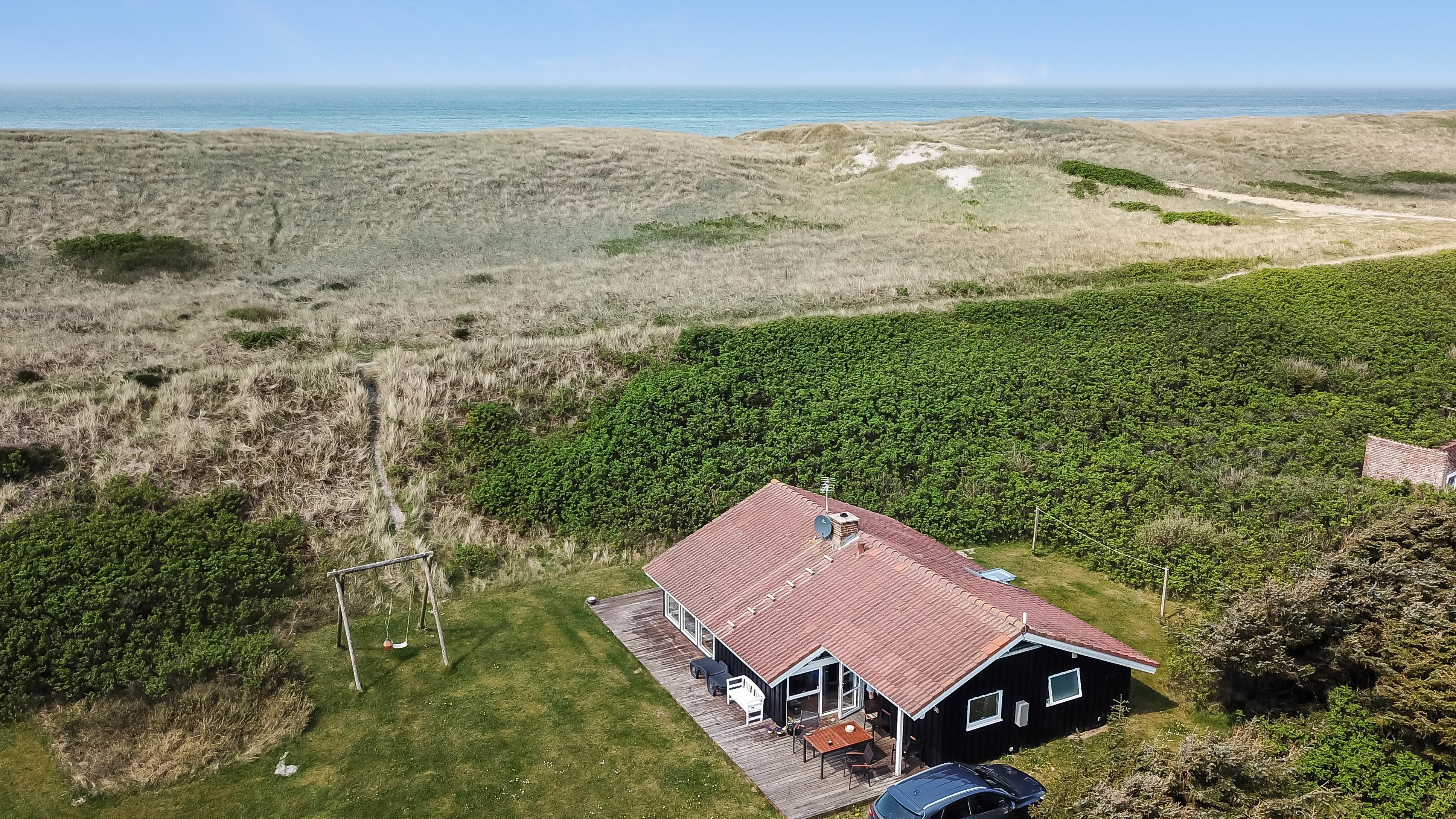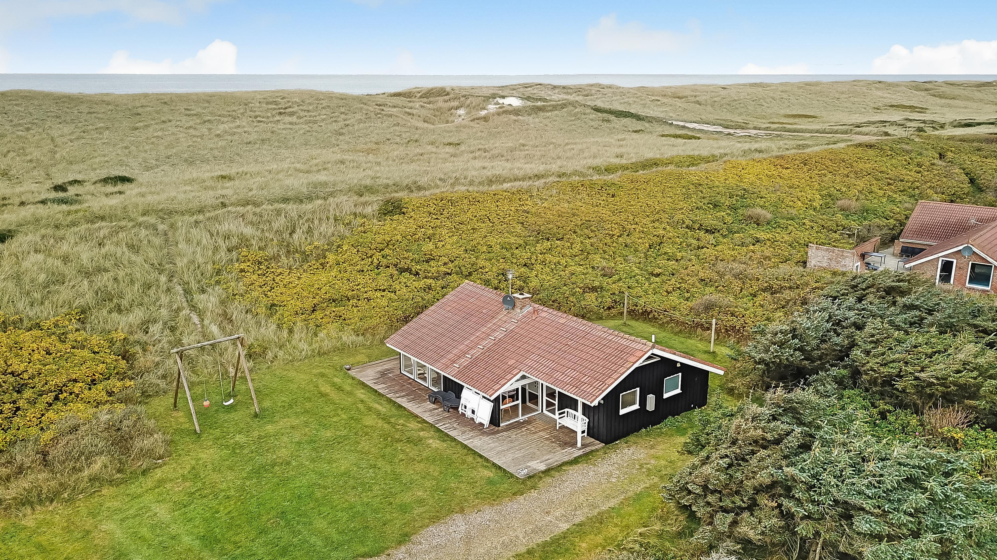 Das Haus liegt auf einem 1500 qm großen ungestörten Dünengrundstück Bloß 90 m von der Nordsee entfernt. Zum Haus gehört eine schöne Westterrasse mit Gartenmöbeln, Sonnenliegen und Grill. Die Nordsee, die jeden Tag neue Geschichten erzählt, ist schnell zu Fuß zu erreichen . Hier gibt es sehr gute Möglichkeiten für Aktivitäten: baden, Steine und Bernsteine suchen, Sandburgen bauen, angeln oder bloß sitzen und die schöne Nordsee genießen und den Wind durch die Haare wehen zu lassen, eine reine Therapie für Körper und Seele. Möchten Sie etwas anderes als bloß Sand und Strand im Urlaub zu genießen, so können Sie das Fischerdorf Thyborøn besuchen. Hier gibt es Jyllands Aquarium und Sea War Museum und sehr gute Restaurants mit frischem Fisch, oder machen Sie eine Wanderung am Hafen entlang um das schöne Hafenmilieu zu genießen. Vejlby Kit ist auch ein sehr gutes Gebiet für Fahrradfahrer. Hier gibt es sehr gute Verhältnisse für Radfahrer, denn hier ist ein Teil von der Westküstenroute, die von der Grenze bis Nordjylland reicht. Dieses Ferienhaus ist eine sehr gute Wahl für die ganze Familie.