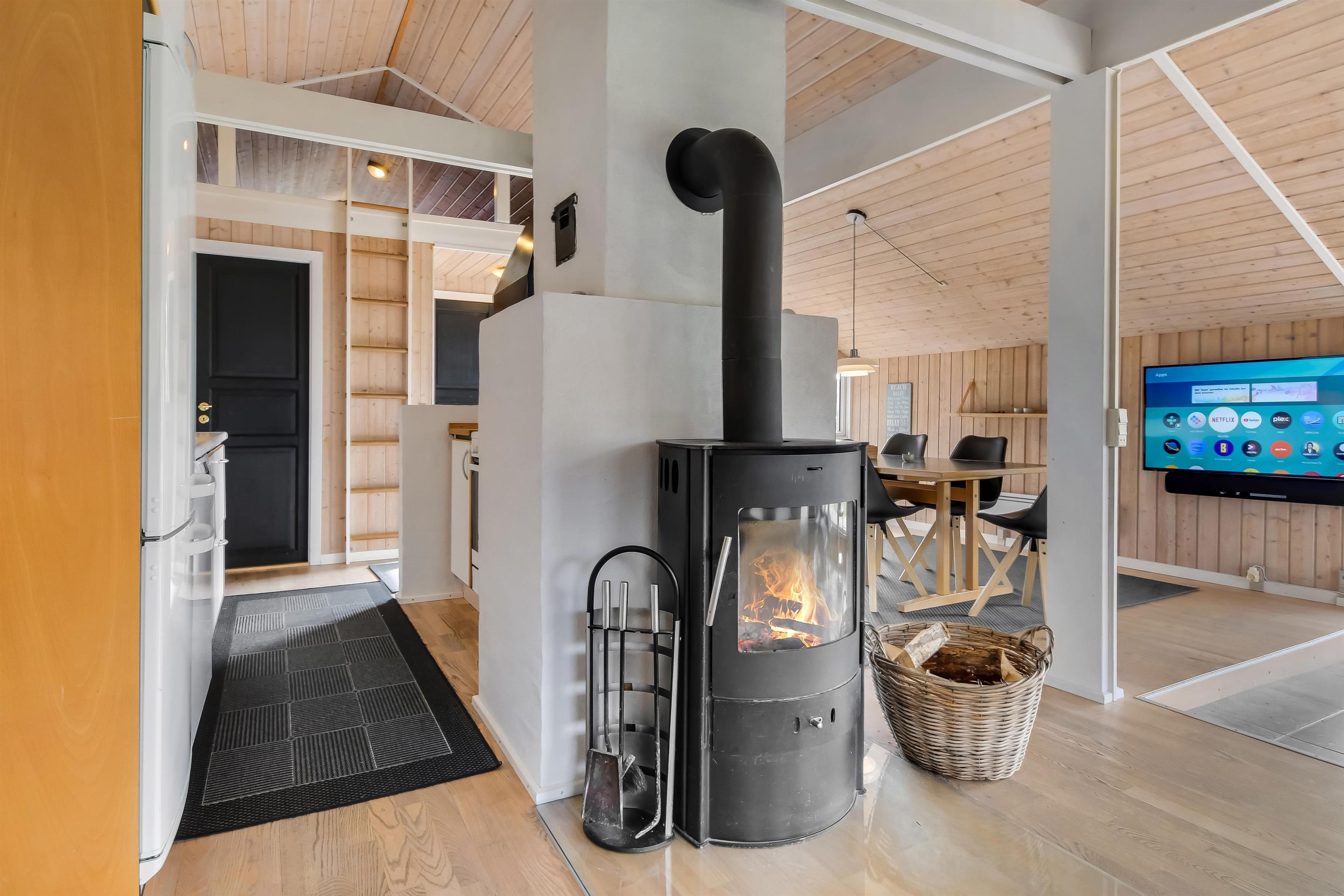 Dieses schönes Ferienhaus auf 90 qm hat einen großen Wohnraum mit offener Decke und ist mit Ledermöbeln, Kaminofen und Wärmepumpe, die beide dabei helfen eine günstigere Heizrechnung zu bekommen, eingerichtet. TV mit dänischen und deutschen Programmen und ein Chromecast mit der Möglichkeit für Streaming von TV / Radio / Apps, für die Sie selber ein Abonnement haben. Es gibt Fußbodenheizung im Wohnraum. Dicht an der Küche gibt es den Essbereich mit Esstisch und Stühlen. 3 gute Schlafräume: 1DB + 2B + 1K und Holzboden. Offene Küche mit Ceranfeld-Kochherd, Geschirrspüler, Mikrowelle und einem Kühl-/Gefrierschrank. Großes Badezimmer mit Toilette, Dusche und Waschbecken, Fliesenboden mit Fußbodenheizung und Zugang zur Sauna. Waschmaschine. Es gibt Glasfasernetz im Haus. Nichtraucher-Haus. Haustiere sind nicht erlaubt.
