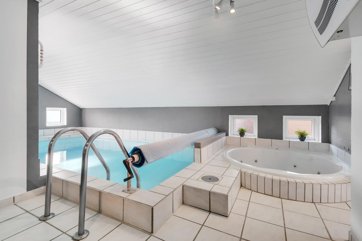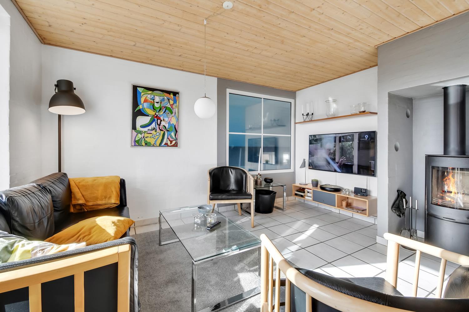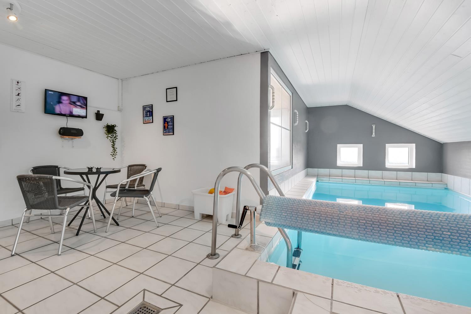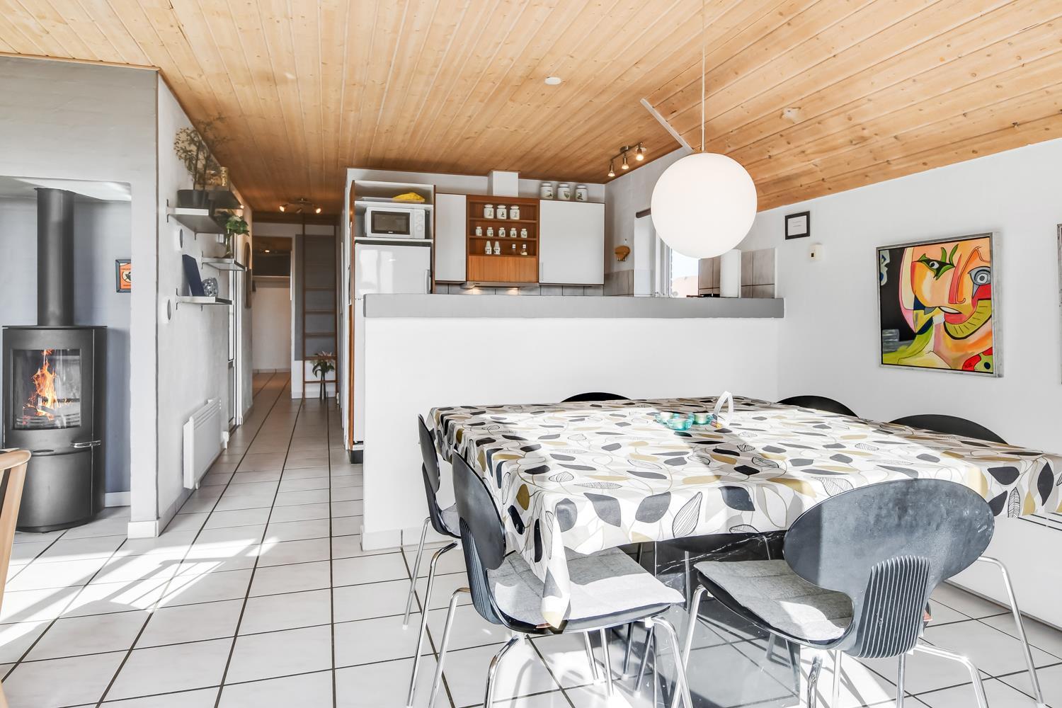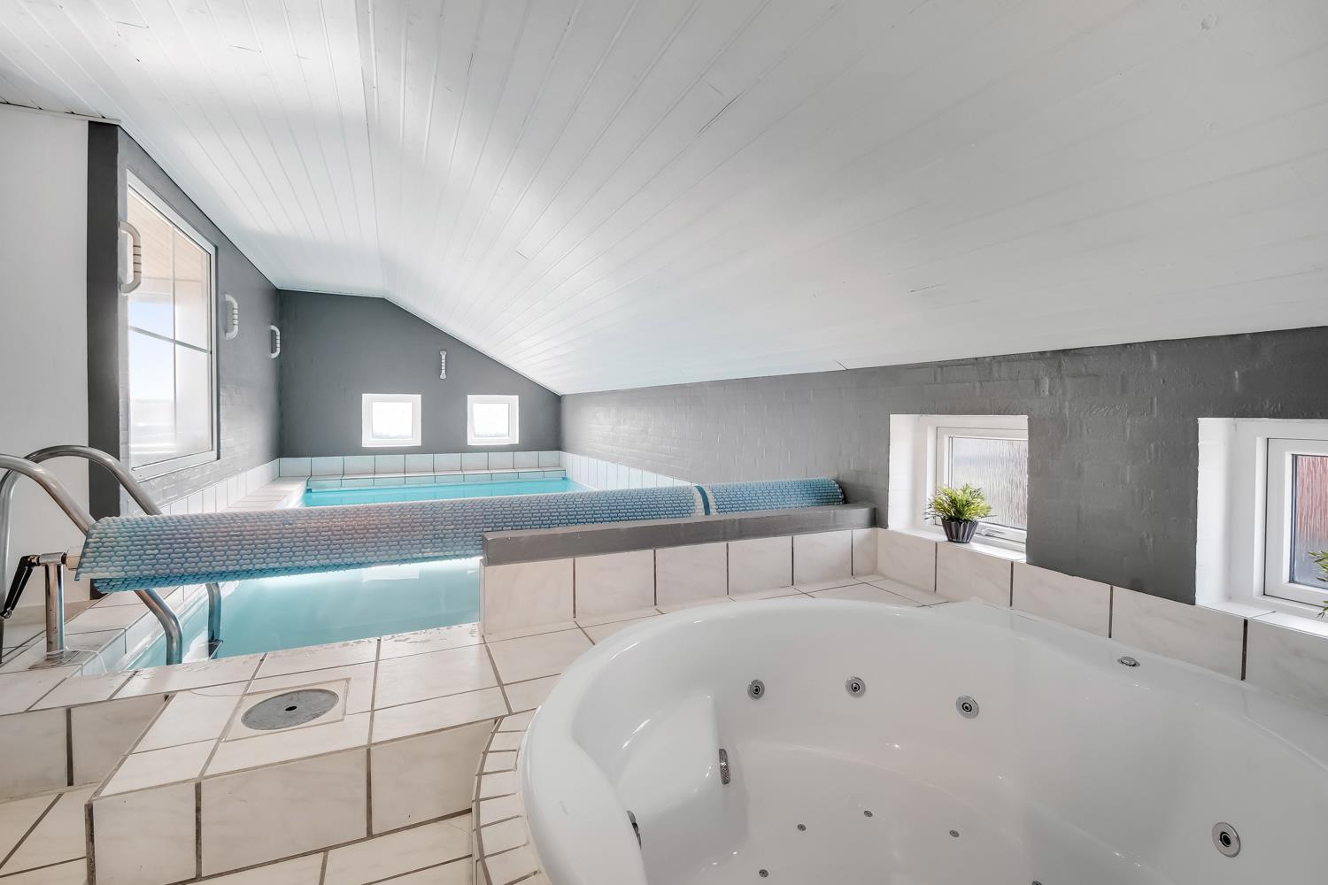 Offene Küche mit Wohn- und Essbereich. Das Wohnzimmer ist eingerichtet u. a. mit Holzofen, Wärmepumpe, Sofa, Flachbildschirm-TV mit dänischem und deutschem Programm via Glasfazernet, Dabradio. Über das kostenfreie WLAN ist bei Mitnahme eines passenden Endgeräts auch Streaming möglich. Vom Wohnzimmer hat man direkten Zugang zur Terrasse. Die Küche ist ausgestattet mit Elektroherd, Kühlschrank mit Gefrierfach, Mikrowelle, Geschirrspüler und Fußbodenheizung. Der Pool misst 5.10 x 2.80 x 1.25 Meter und hat Gegenstromanlage und Unterwasserbeleuchtung. Im Poolraum gibt es außerdem einen 4-Personen-Whirlpool sowie eine gemütliche Sitzecke mit Flachbildschirm-TV und Bluetooth Lautsprechern. So können Sie Musik hören oder Ihren Lieblingsfilm schauen, wenn Sie im Whirlpool sitzen. Von hier hat man Zugang zu einem der Badezimmer mit Fußbodenheizung, Dusche, Toilette, Waschbecken und Sauna. Das zweite Badezimmer verfügt über eine Dusche, Toilette und Waschbecken. Das Haus hat 3 große Schlafzimmer mit 2 Doppelbetten (2 DB) und 1 Schlafzimmer mit 2 Einzelbetten (2 EB). Beide Doppelbettzimmer sind mit Flachbildschirm-TV ausgestattet. Außerdem gibt es ein Kinderzimmer mit einem Kinderbett und einem Wickeltisch. Des Weiteren stehen 2 Kinderstühle zur Verfügung. Hauswirtschaftsraum mit Waschmaschine und Wäschetrockner. 1 Haustier ist erlaubt. Nichtraucherhaus. Kaution Wintersaison EUR 400 und Sommersaison EUR 300. Beim Haus gibt es Holz und als Gast dürfen Sie es frei nutzen.