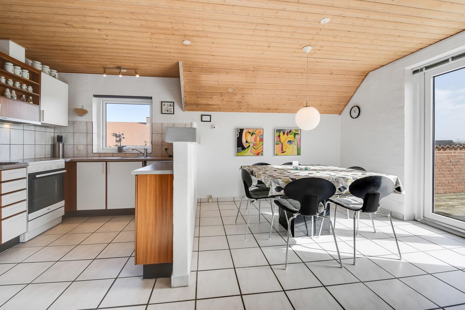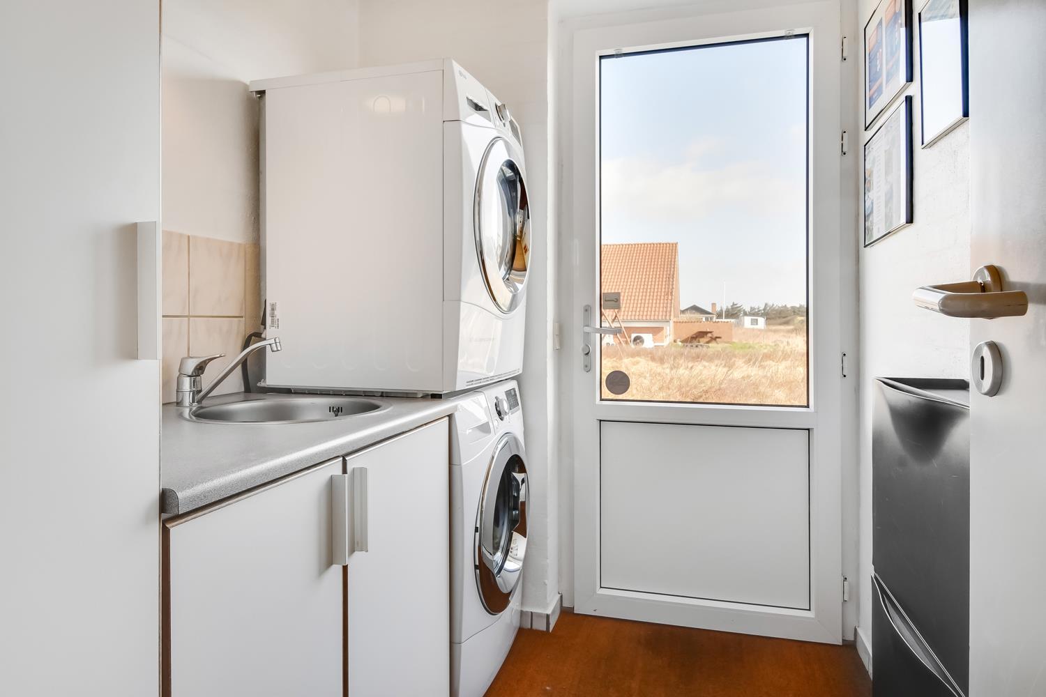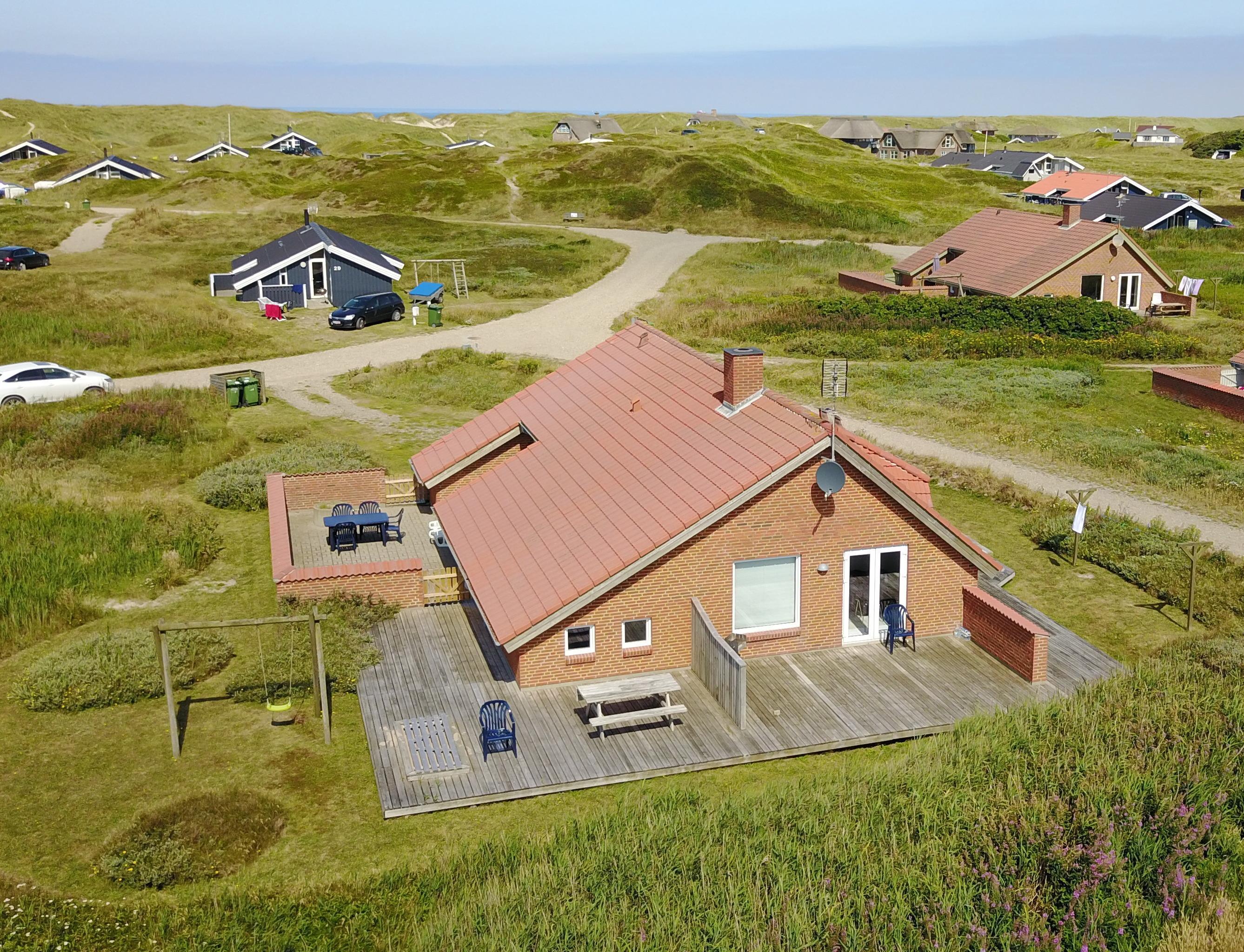 Das Ferienhaus ist von einem schönen Terrassenareal umgeben. Vom Poolraum hat man direkten Zugang zu einer eingezäunten Südterrasse mit Steinplatten. Der andere Teil der Terrasse ist mit bequemen Holzdielen ausgelegt. Hier können Sie in der Sonne liegen, die Gartenmöbel benutzen oder den Grill anmachen, während Sie den Kindern beim Schaukeln oder Spielen im Sandkasten zuschauen. Wenn Sie dieses Haus mieten, haben Sie kostenfreien Zutritt in das 5 km entfernte Harboøre Center.