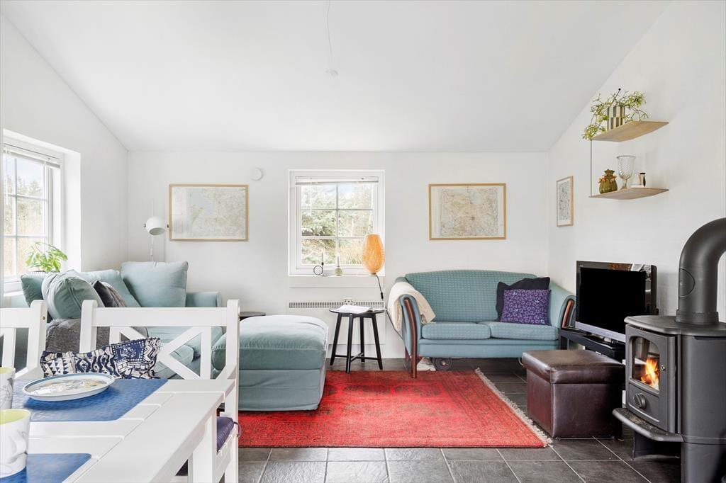 Dieses Ferienhaus besticht durch durchdachte Details und eine Atmosphäre voller Ruhe und Charme. Das Wohnzimmer öffnet sich zum Küchen- und Essbereich und schafft so einen harmonischen Rahmen für geselliges Beisammensein – auch wenn nicht alle gleichzeitig dasselbe tun. Hier ist Raum für gemütliche Gespräche, Lachen und Nähe. Die hellblauen Sofas laden zum Entspannen vor dem Kamin ein, dessen knisternde Flammen eine angenehme Stimmung erzeugen. Holen Sie Ihre Strickarbeit oder ein gutes Buch hervor und lassen Sie die Zeit ein wenig stillstehen. Die großen Fensterflächen sorgen für ein herrliches Lichtspiel und tauchen den Raum in ein schönes Licht, das mit dem Sonnenlauf über den Himmel wandert.