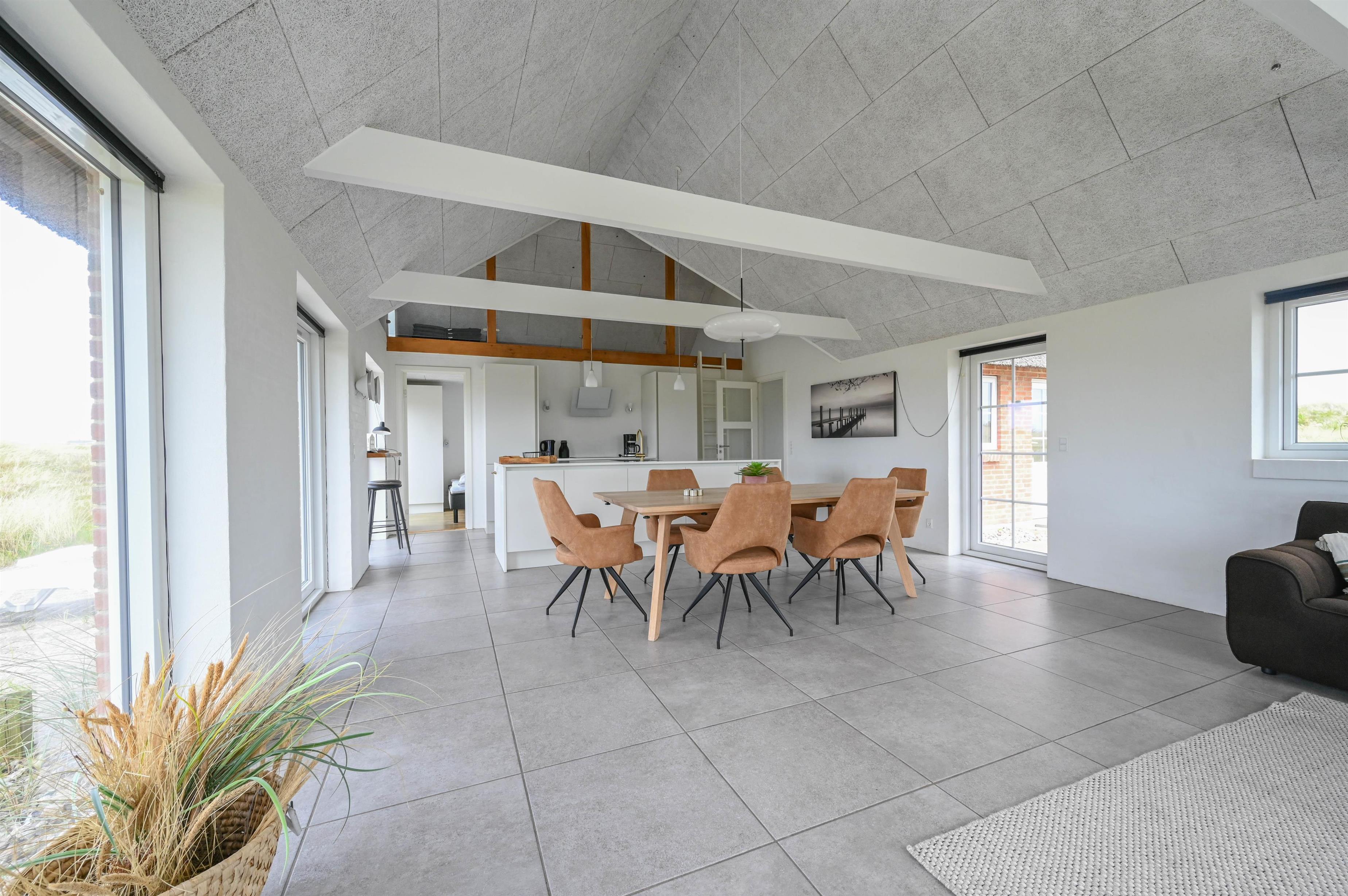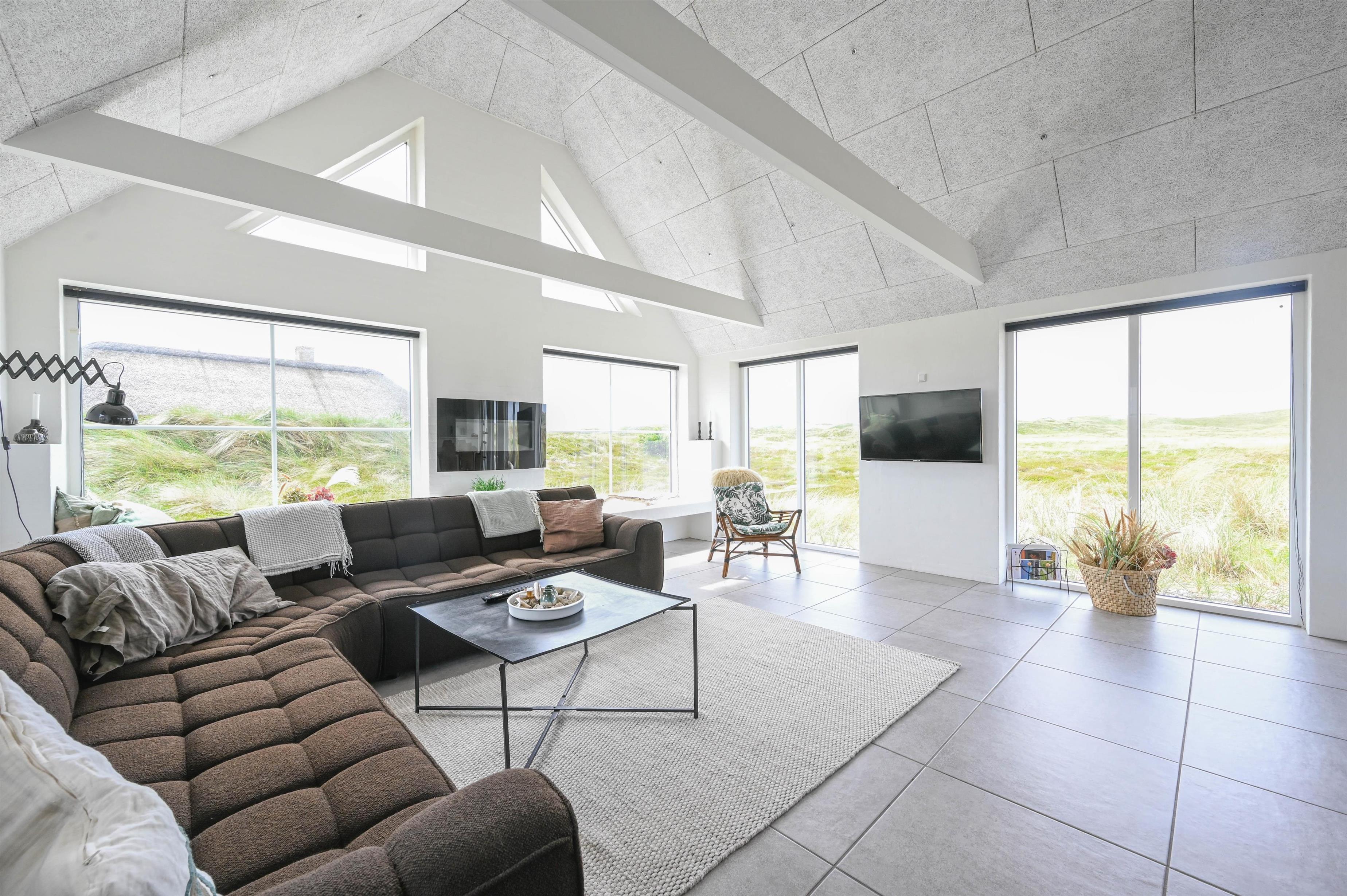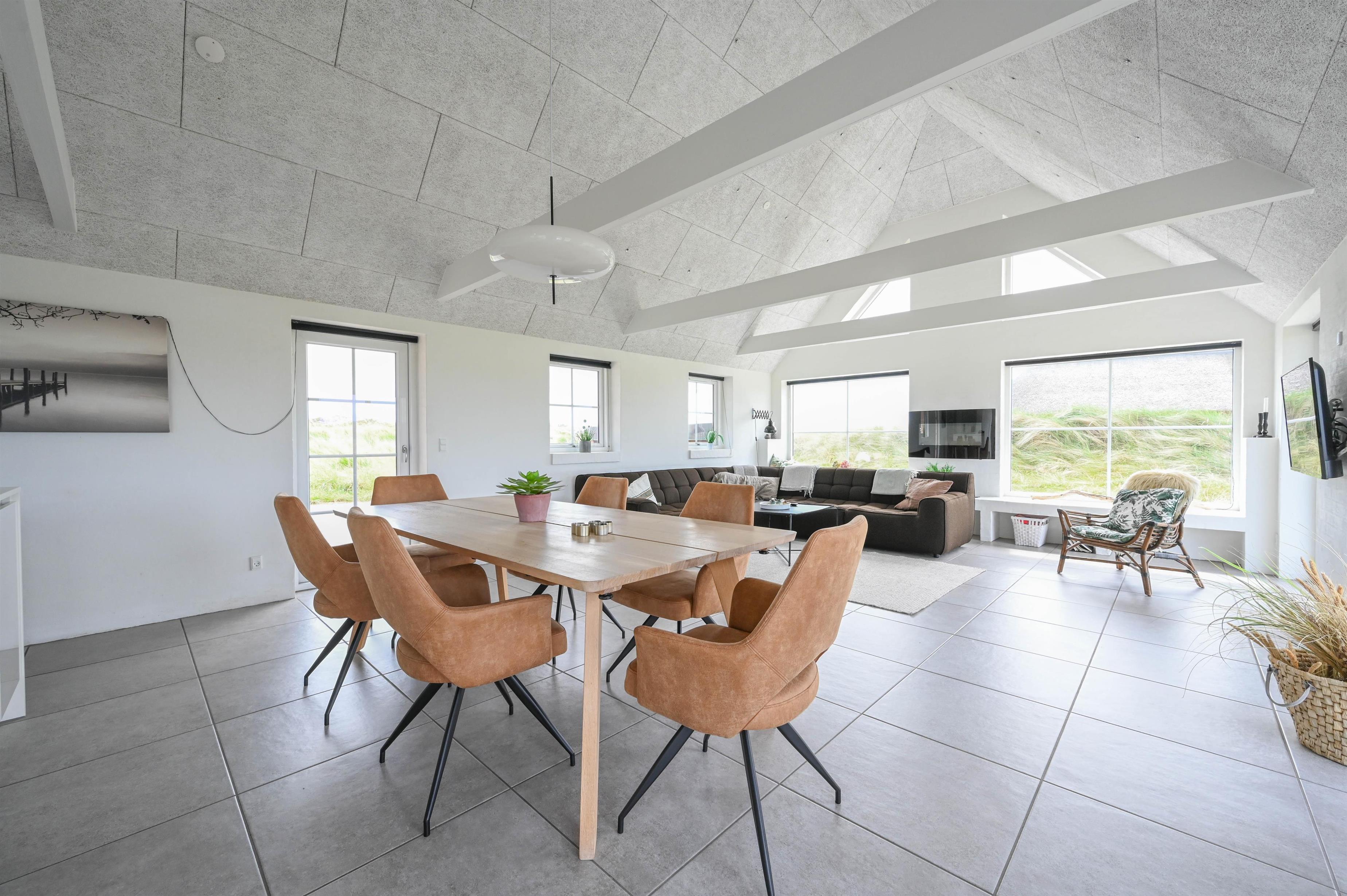 Mitten in den Dünen liegt dieses wunderschöne Ferienhaus mit 121 qm Wohnfläche auf einem riesigen 8000 qm großen Naturgrundstück. Es ist eines der allerbesten Grundstücke in Vester Husby. Von hier aus lauft ihr auf einem kleinen Pfad direkt zum nur 400 m entfernten Nordseestrand, ohne andere Häuser zu passieren. Hier warten hohe, helle und modern eingerichtete Räume mit wunderschöner Aussicht auf die Dünen auf euch. In der kühleren Jahreszeit genießt ihr den fantastischen Wellnessbereich mit Whirlpool und Sauna.
