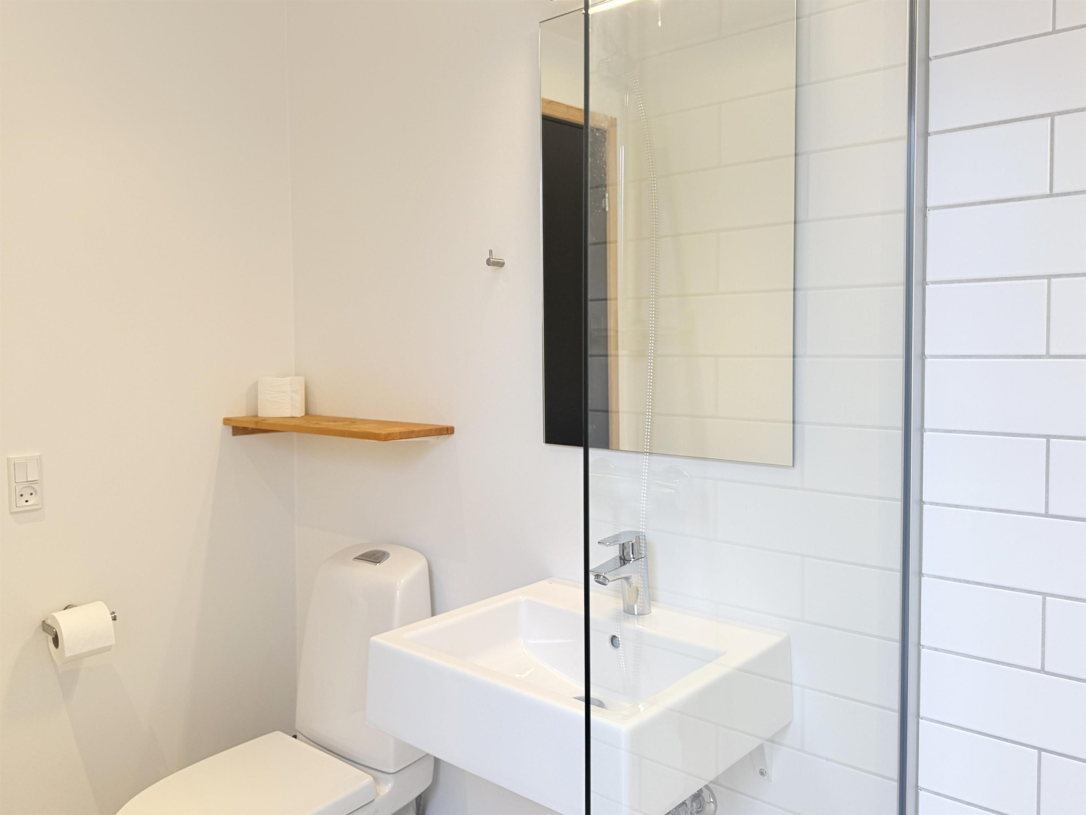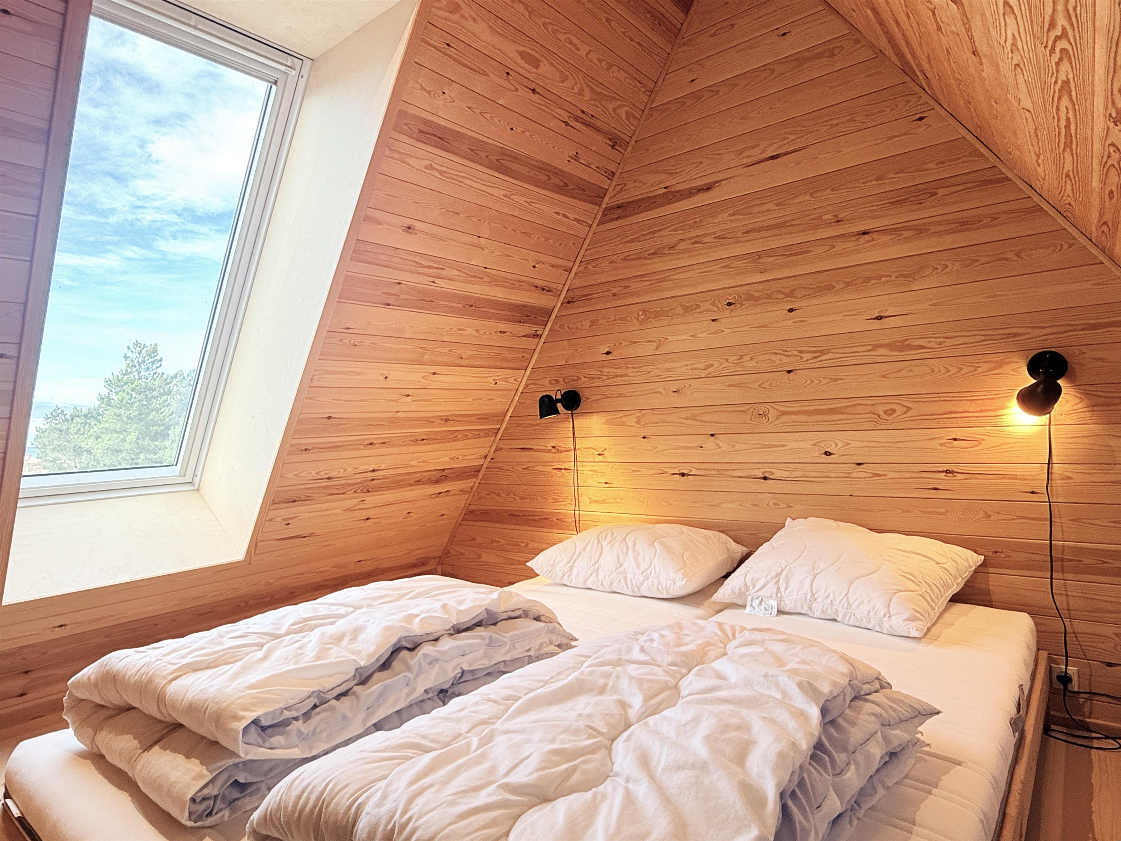 Das Haupthaus verfügt über eine große, helle Wohnküche mit Essbereich und gemütlicher Sofaecke. Außerdem gibt es ein Schlafzimmer mit Doppelbett, ein Badezimmer mit Dusche und eine Treppe zu einem weiteren Schlafzimmer mit Doppelbett. Eine ähnliche Aufteilung mit Schlafzimmern und Badezimmer befindet sich im gegenüberliegenden Flügel des Hauses, der durch die überdachte Terrasse vom Haupthaus getrennt ist. Die Schlafzimmer im ersten Stock bieten einen traumhaften Meerblick, und sowohl die Badezimmer als auch die Schlafzimmer im Erdgeschoss haben Zugang zum Garten. Die Raumaufteilung macht das Haus besonders geeignet für mehrere Familien. Vom Haupthaus aus gelangen Sie auf die nach Westen und Osten ausgerichteten Holzterrassen. Eine Außendusche lädt nach einem Strandbesuch zum Entspannen ein. Es bieten sich wirklich gute Gelegenheiten, den hauseigenen Grill zu nutzen und dabei den Sonnenuntergang über dem Meer zu genießen.