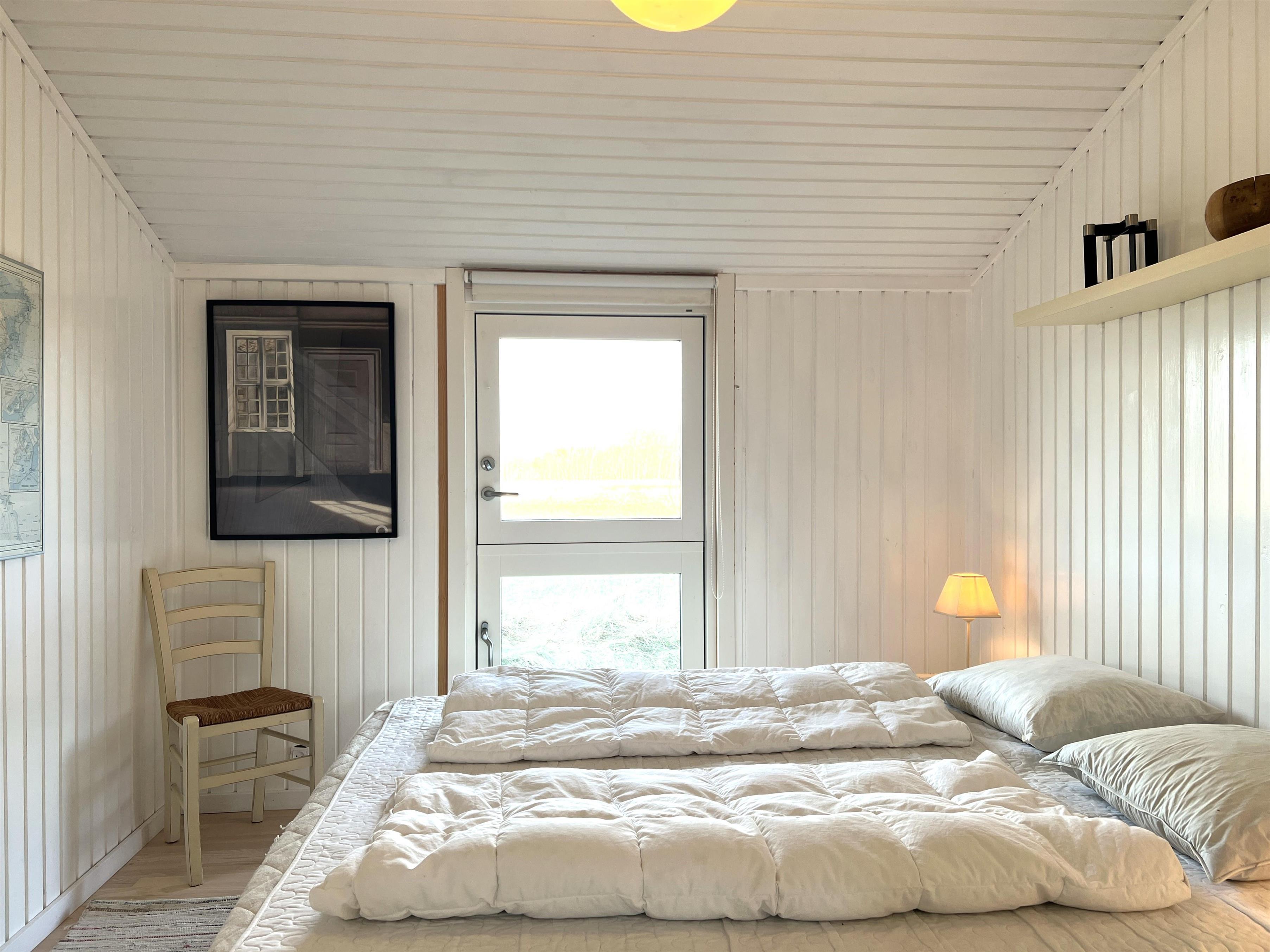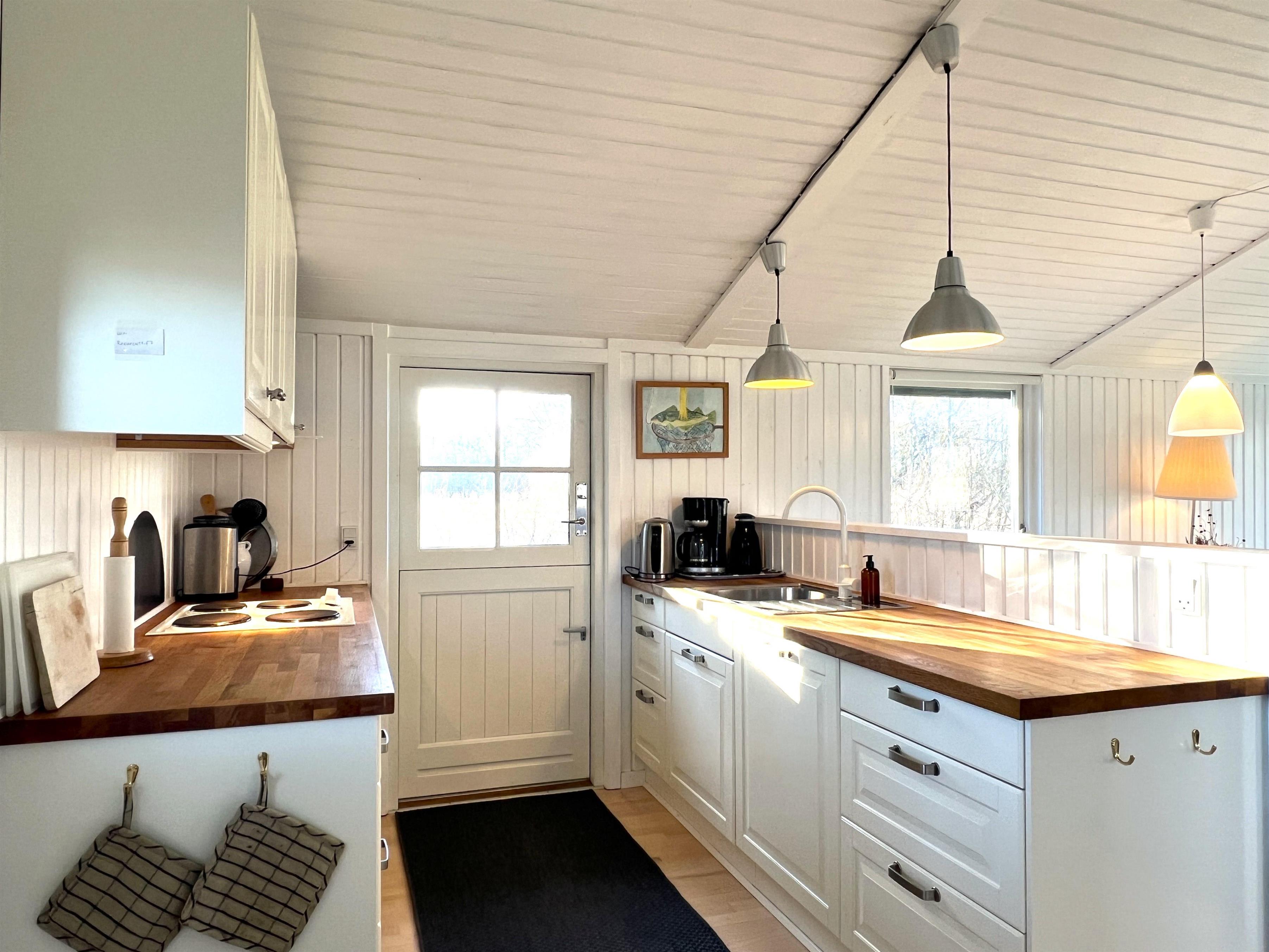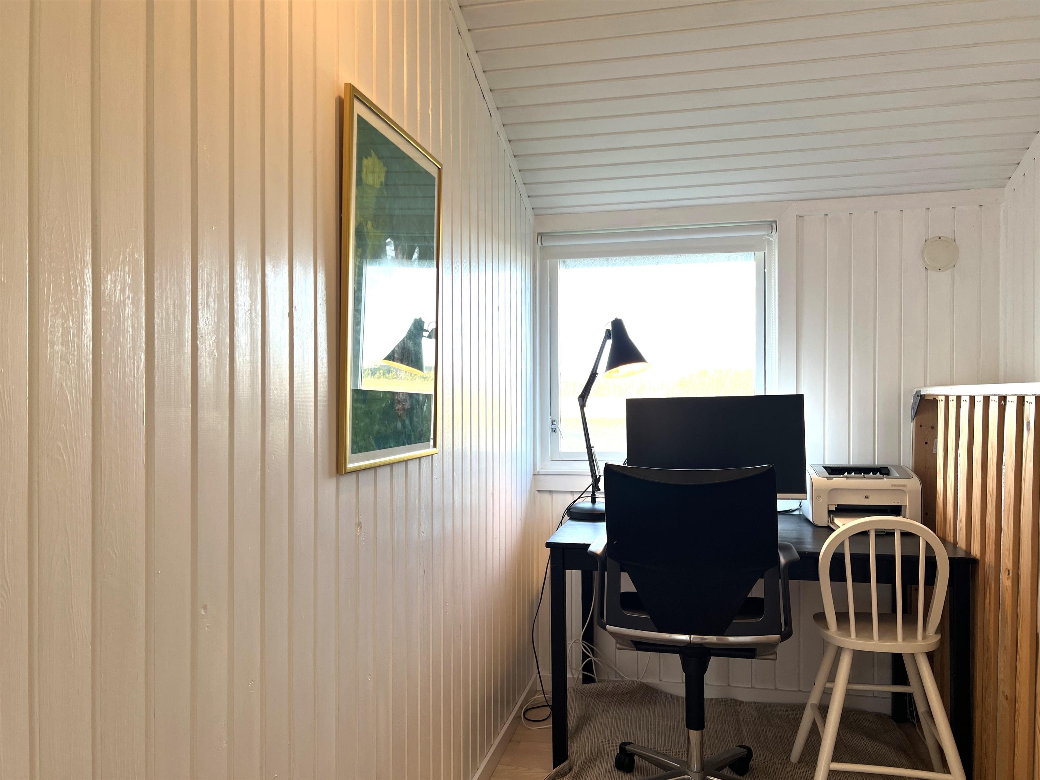 Das Haus verfügt über eine schöne Küche in offener Verbindung zum Wohnzimmer, die über ein wirklich schönes Licht verfügt und sowohl mit einem Holzofen als auch mit einer Wärmepumpe beheizt wird. Vom Wohnzimmer aus haben Sie Zugang zur Terrasse, wo Sie die wunderschöne Natur und Tierwelt hautnah erleben können. Hier kann der Grill genutzt werden, während man bis in den Abend hinein den Sonnenuntergang genießen kann. Zwei gute Schlafzimmer mit Doppelbetten, eines davon mit eigenem Ausgang. Zusätzlich ein extra Zimmer/Kontor mit einem Bett. Badezimmer mit Dusche. Im Nebengebäude gibt es einen Gefrierschrank.