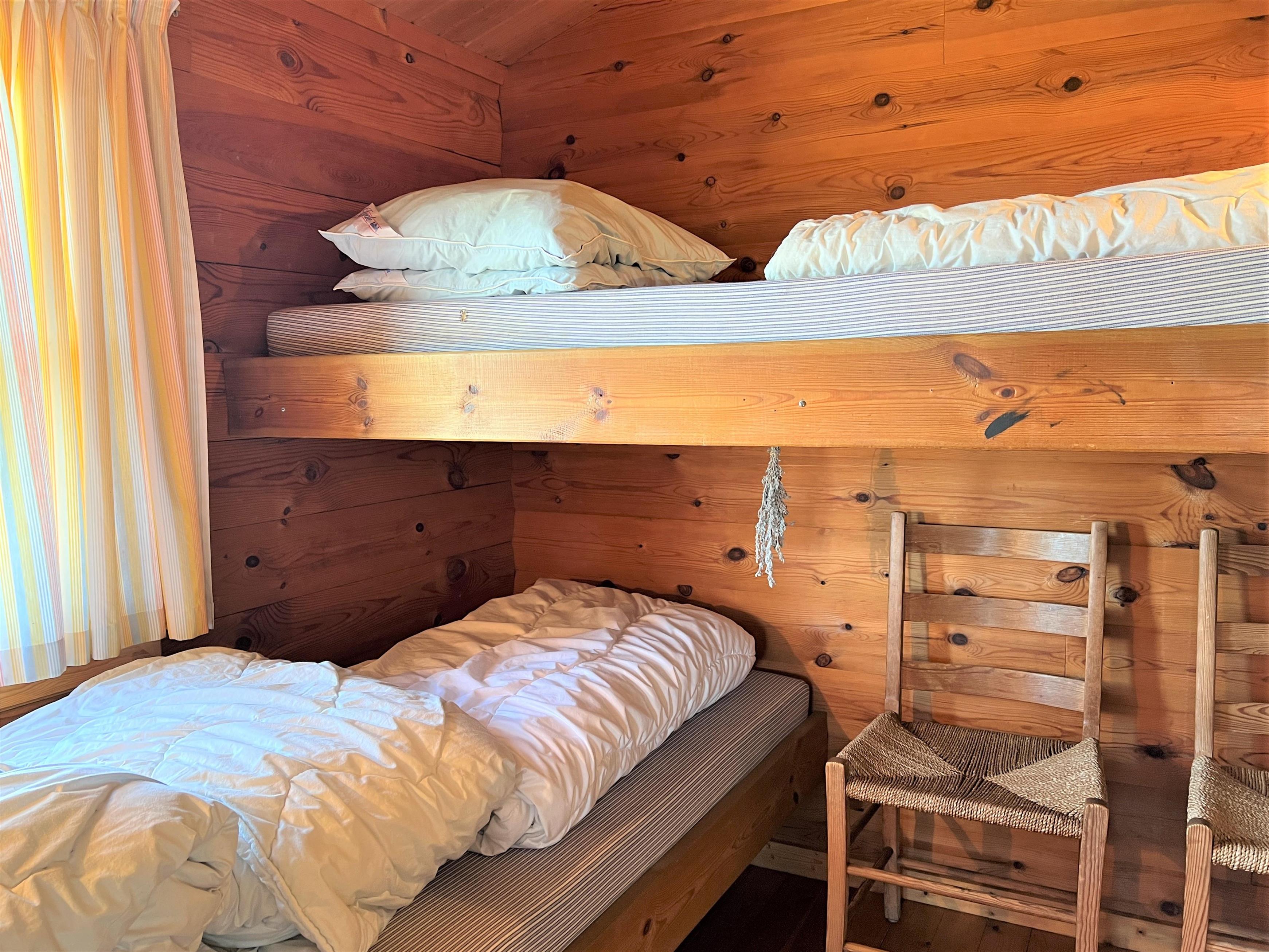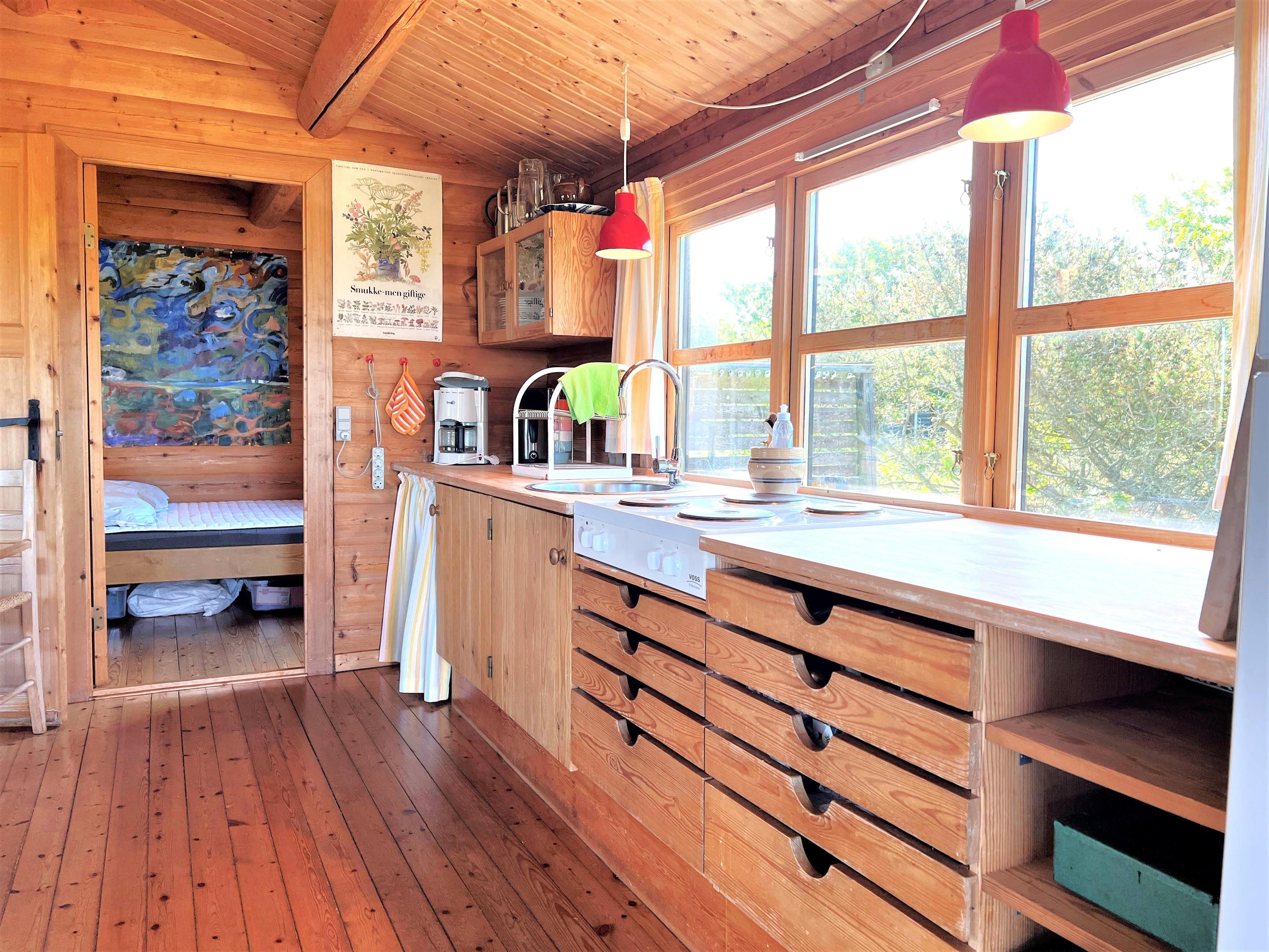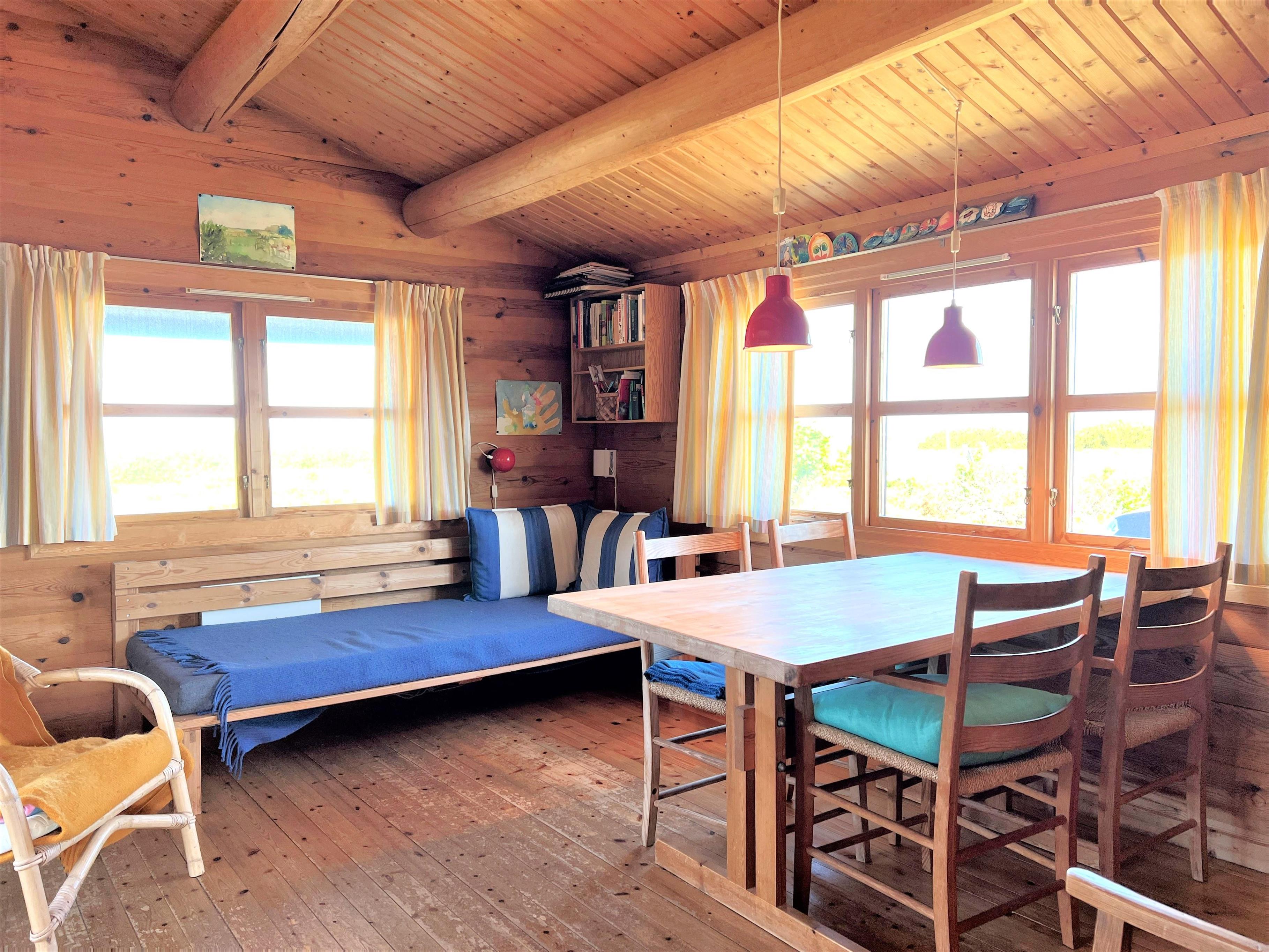 Das Haus hat ein grosser Küchen/Essplatz , Schlafsofa, 2 Schlafzimmer mit einem 120 cm grossem Bett, und eines mit 2 Einzelbetten. Feines funktionelles Badezimmer. Ausserhalb hat es einen Tisch und Bänkeset mit einem extra Tisch, auf dem man das Essen zubereiten kann, und gleichzeitig eine herlliche Aussicht geniesst.