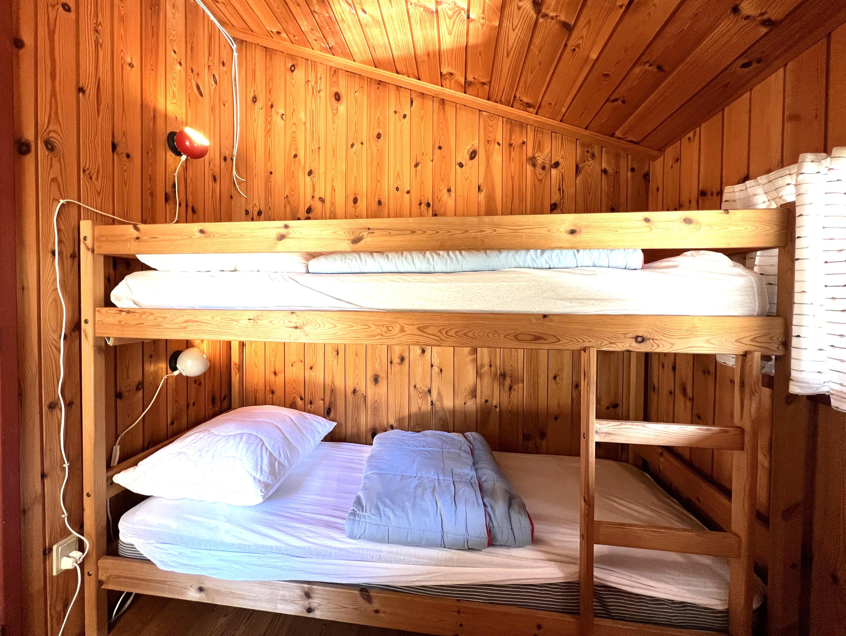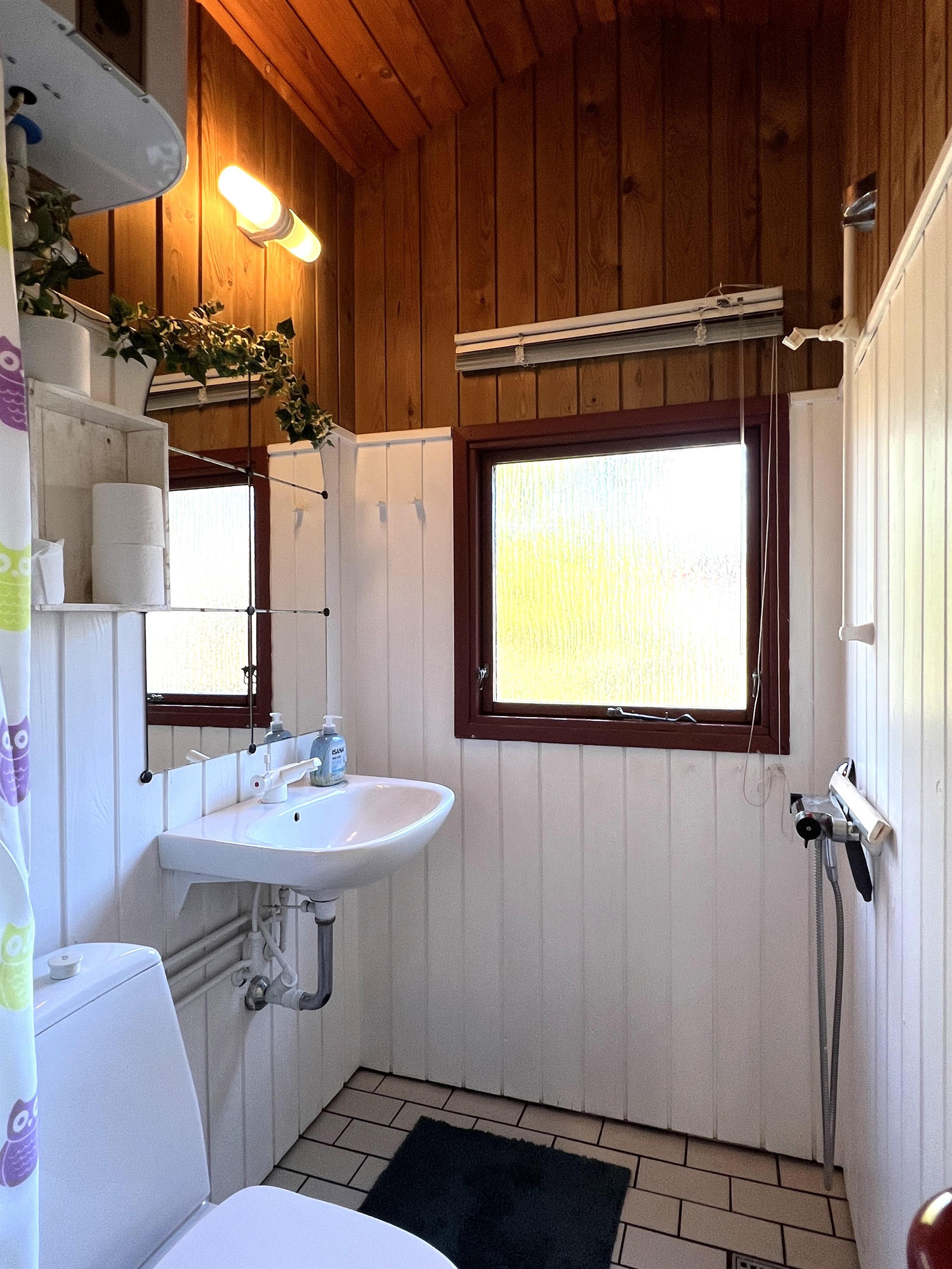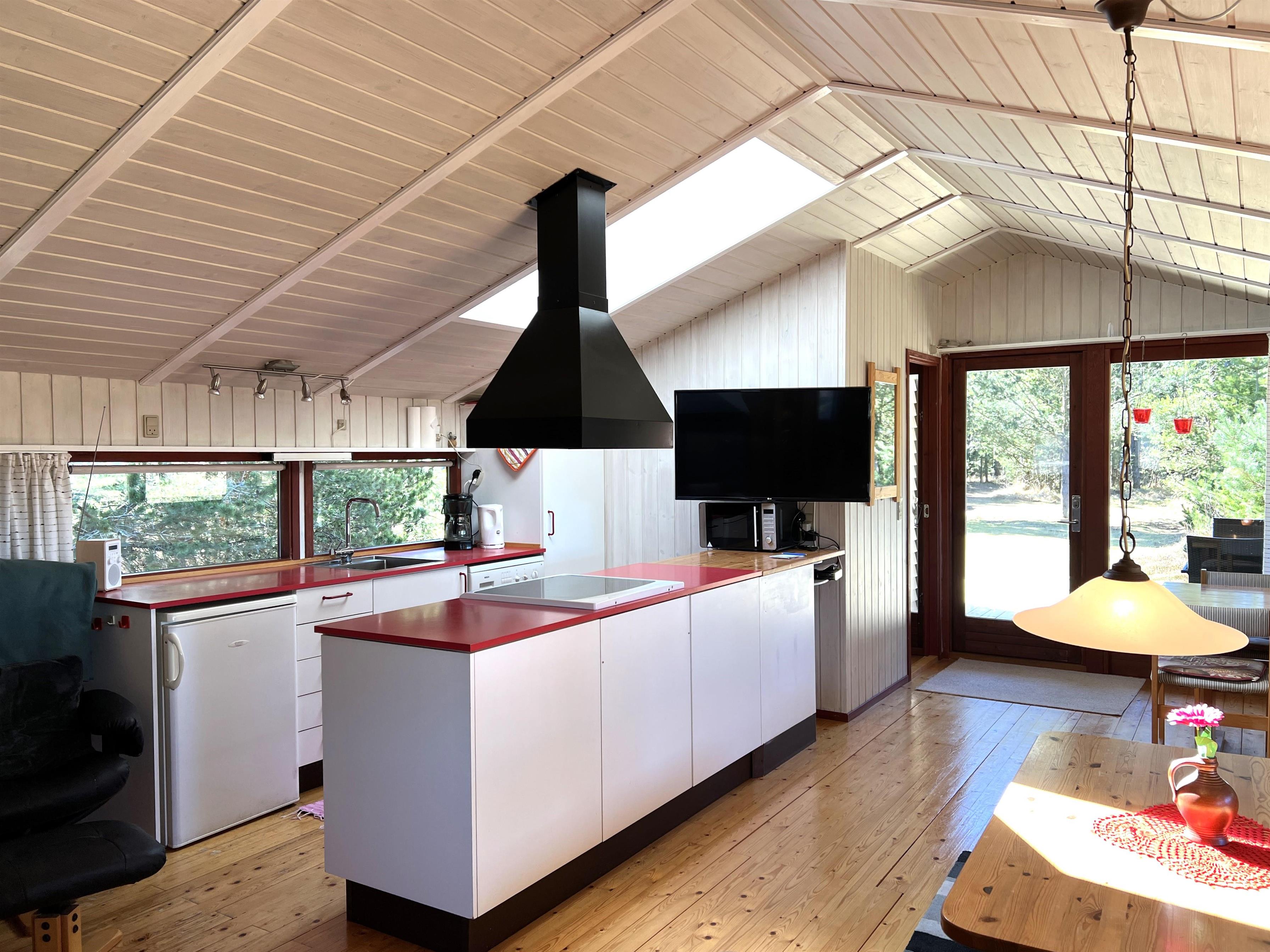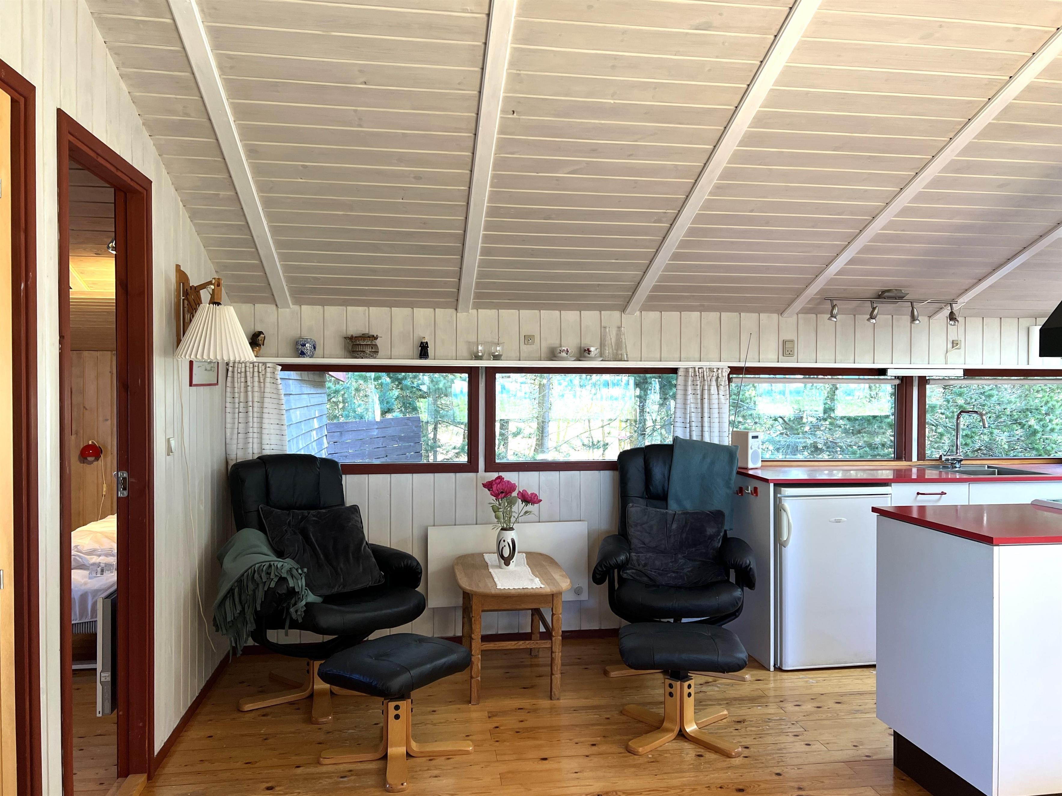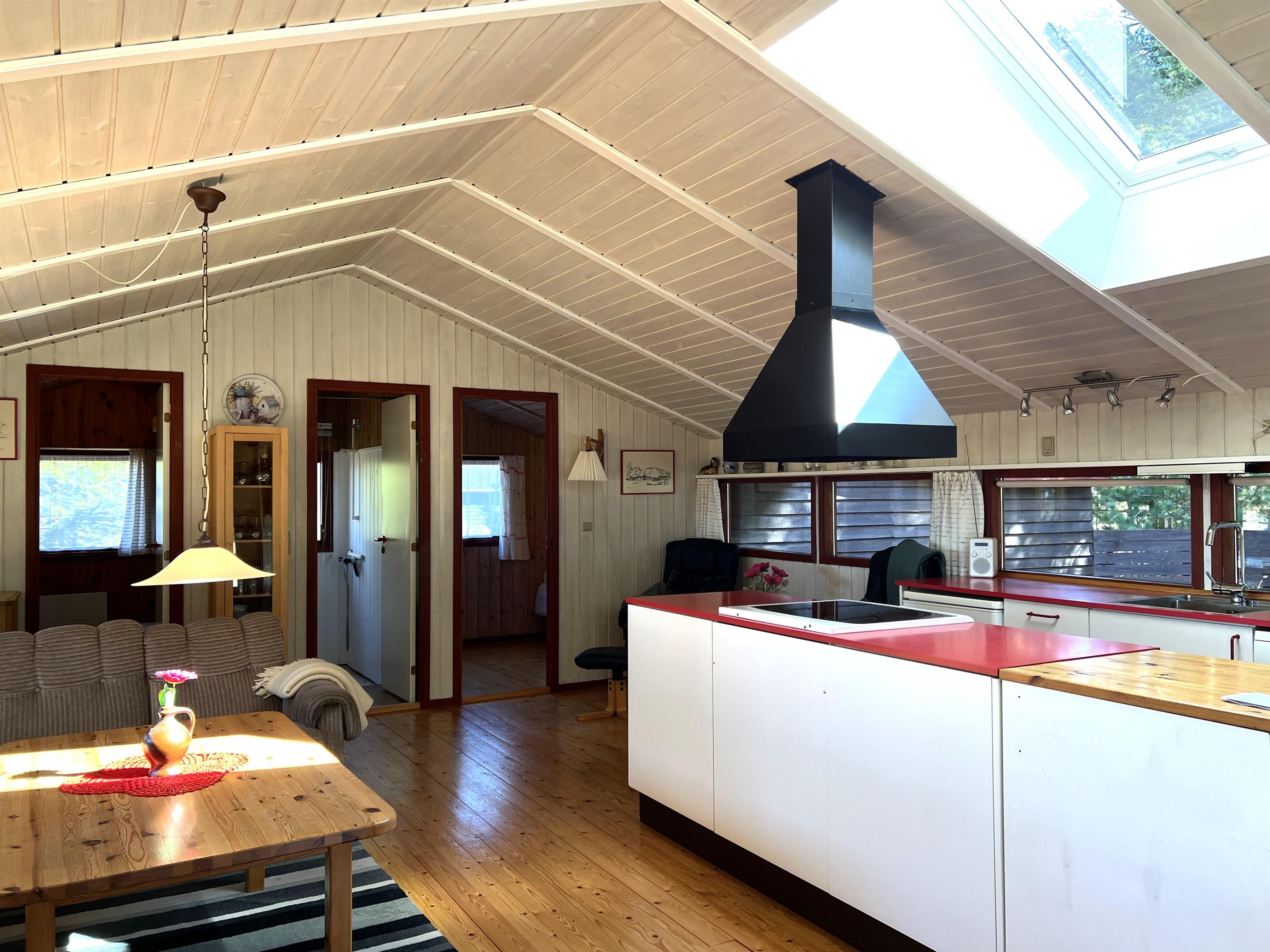 Das Haus ist hell und praktisch. Funktionelle, feine Küche, die in Verbindung mit dem Esszimmer und Sofabereich und Ausgang zur Holzterrasse steht. Die zum Wasser gerichteten Fensterpartien sorgen für angenehmes Licht in den Gemeinschaftsräumen. Es gibt auch drei Schlafzimmer im Haus: eines mit zwei Einzelbetten, eines mit einem Etagenbett (nur für Kinder) und eines mit einem Einzelbett. Kleines schönes Badezimmer.