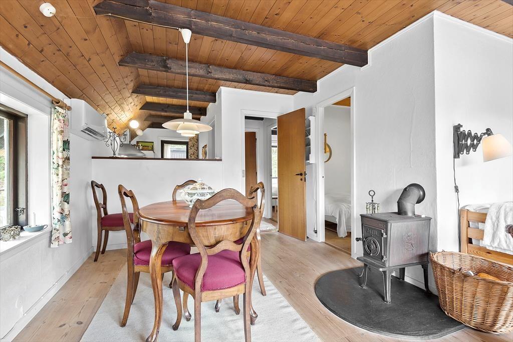 Dieses einladende Haus aus dem Jahr 1968 beinhaltet zwei Schlafzimmer, ein Badezimmer, eine Küche und ein schönes Wohnzimmer, welches um eine Ecke herum reicht. Alle Räume erstrahlen in einem gepflegten Zustand, und die klassische Möblierung trägt zusammen mit dem Kaminofen, den sichtbaren Balken und anderen stimmungsvollen Details zur gemütlichen Atmosphäre im Wohnbereich bei. Das Wohnzimmer und die Küche wurden im Zuge der Renovierung des Hauses im Jahr 1999 modernisiert. Beide Räumlichkeiten werden lediglich durch eine halbhohe Mauer voneinander geteilt, sodass du beim Zubereiten der Mahlzeiten schön im Familienleben integriert bleiben kannst. Wenn schließlich das Essen serviert wird, kannst du den Esstisch mit dem zum Inventar gehörenden feinen Porzellan decken.