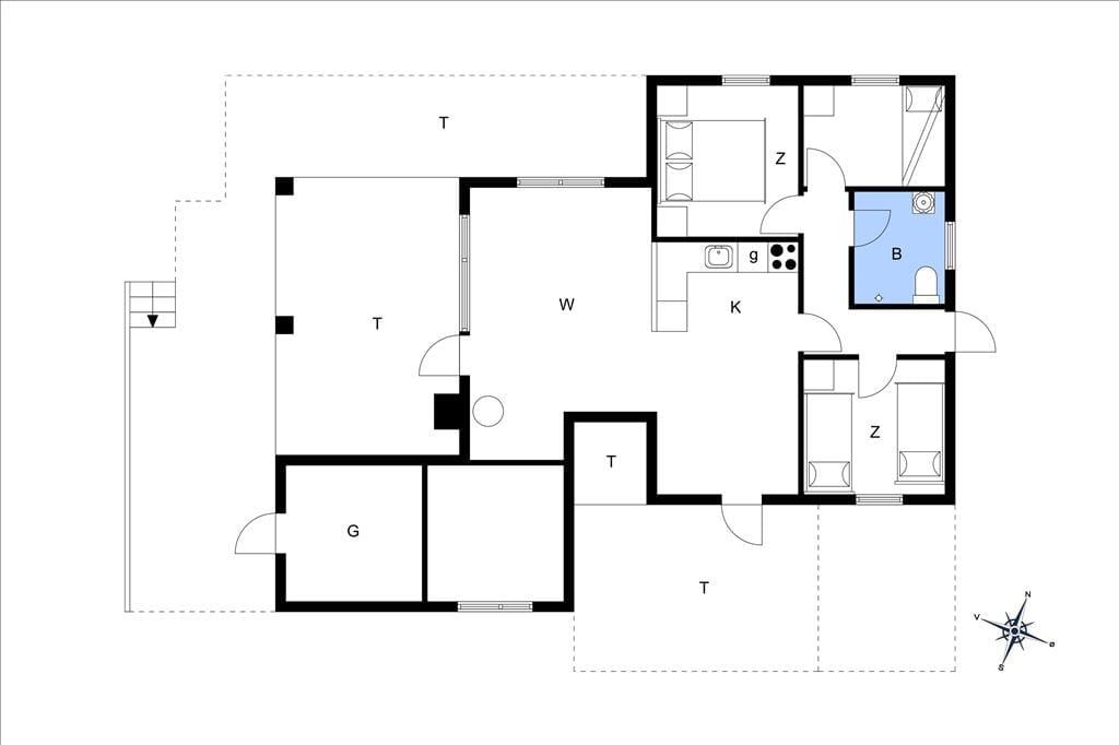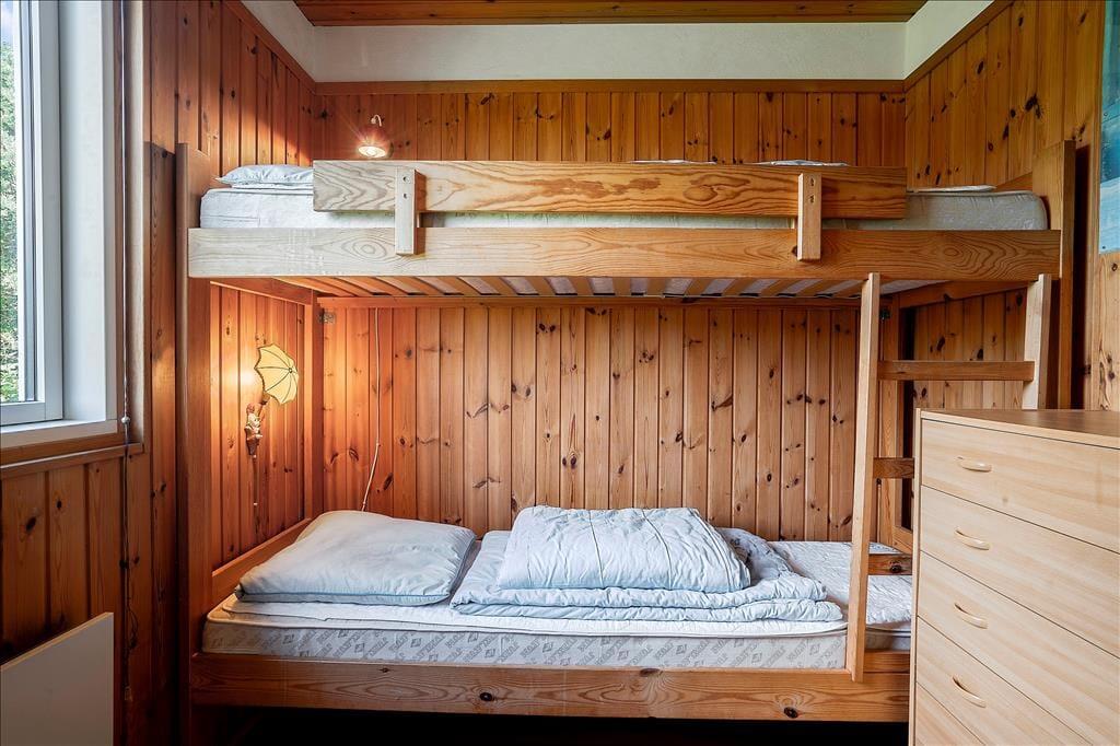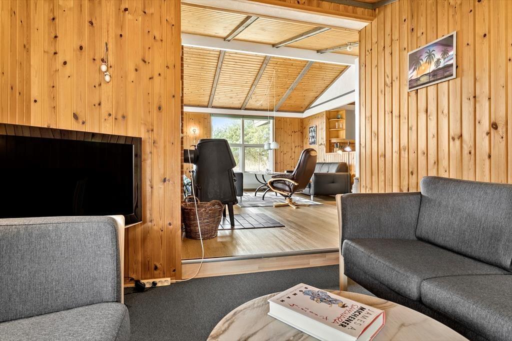Der große, helle Wohnbereich verfügt über Ausgänge zu den Terrassen an beiden Hausseiten. Der Brennofen ist so platziert, dass Sie sich sowohl von der Sofagruppe, als auch vom Essplatz aus, am knisternden Feuer erfreuen können. Der Wohnbereich erstreckt sich über zwei Ebenen. Zur gemütlichen Fernsehecke führt eine Stufe hinunter. Die renovierte Küche ist u.a. mit einem Geschirrspüler ausgestattet. Zur Einrichtung des ebenfalls renovierten Badezimmers gehören eine Dusche, eine Waschmaschine und eine Fußbodenheizung. Die sechs Schlafplätze verteilen sich auf drei Schlafräume. Ein Raum ist mit einem Doppelbett, der zweite mit zwei Einzelbetten und der dritte mit einem Etagenbett ausgestattet. In allen drei Schlafräumen steht Ihnen ausreichend Schrankplatz zur Verfügung.