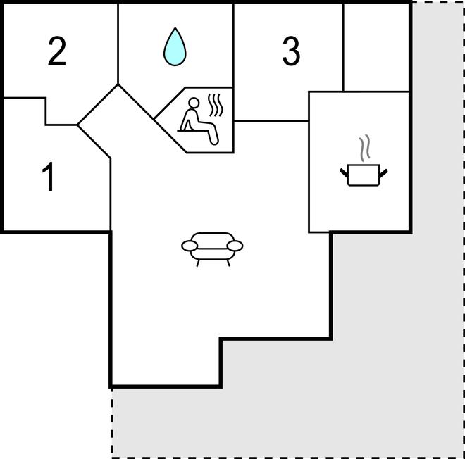 Badezimmer (nr. 1) - WC. Warmes und kaltes Wasser. Dusche