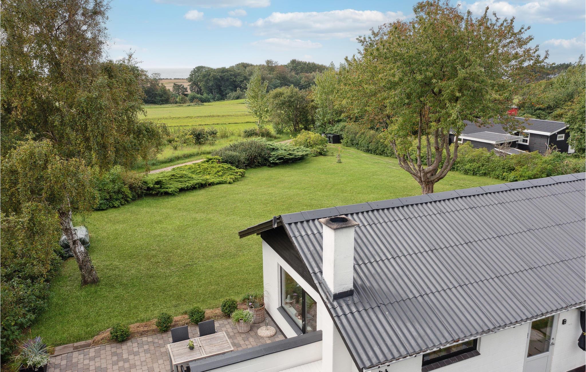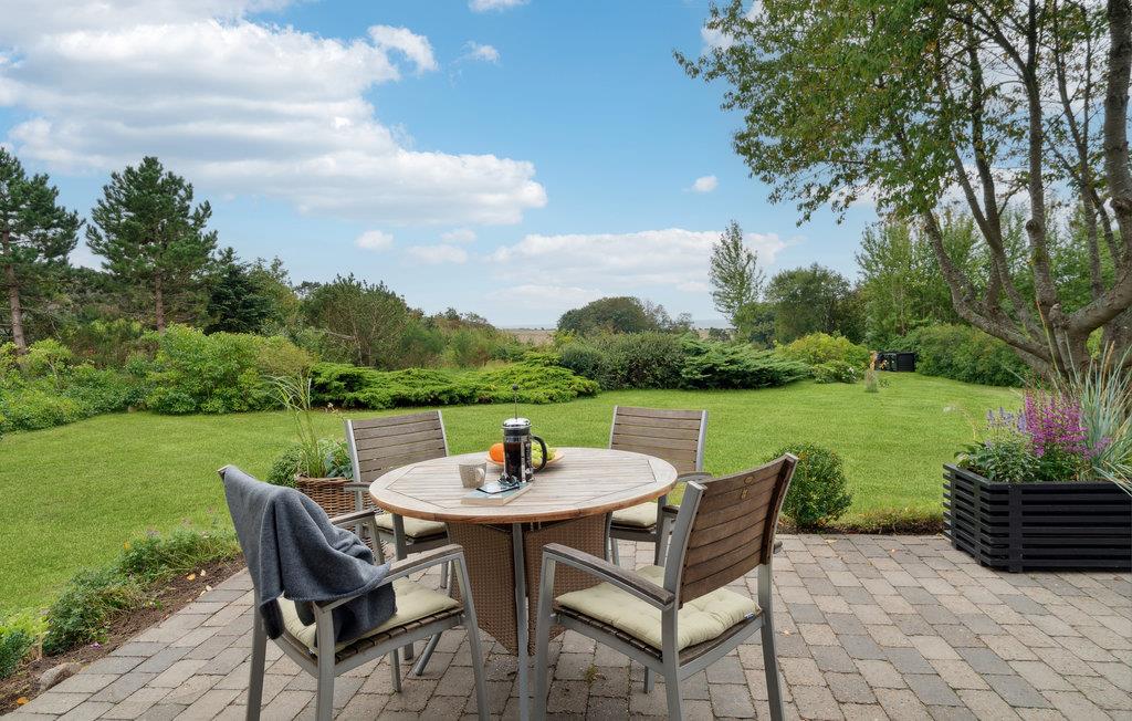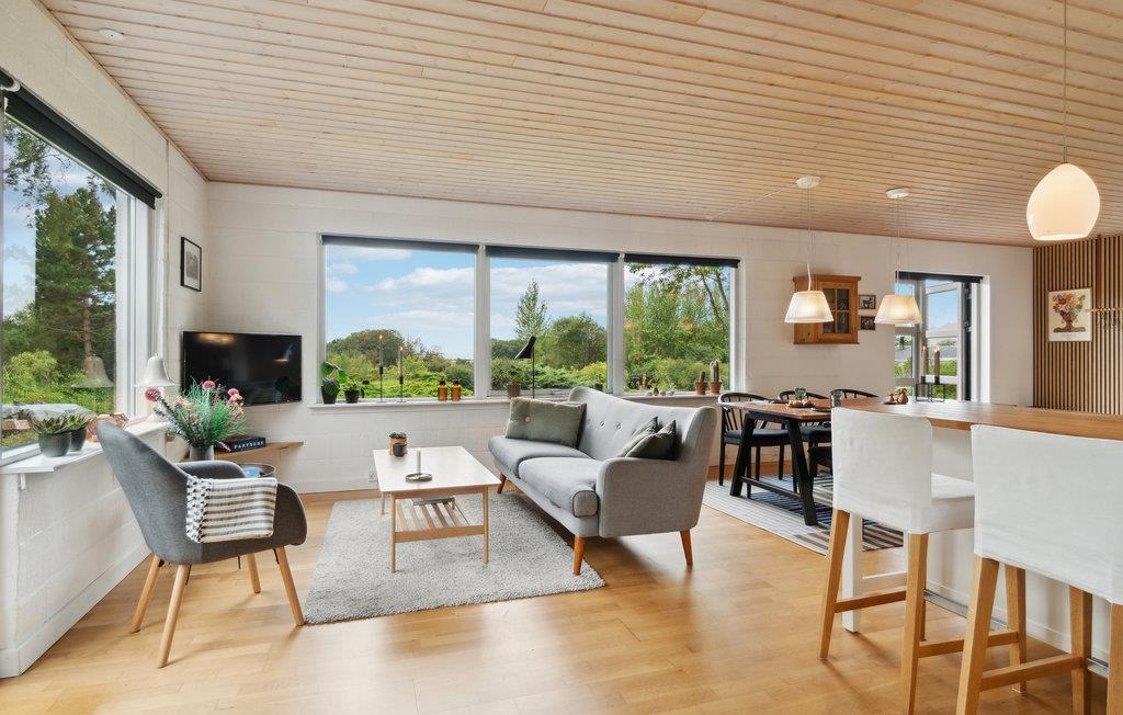 Gemütliches Ferienhaus auf Samsø mit Kamin, Terrasse und Meerblick für erholsame Tage in Dänemark.