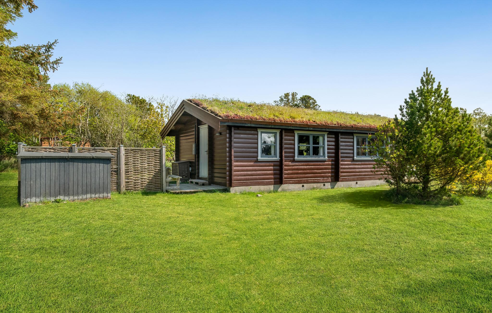 Gemütliches Ferienhaus mit Grasdach nahe dem Strand auf Samsø in Dänemark für erholsame Urlaubstage.