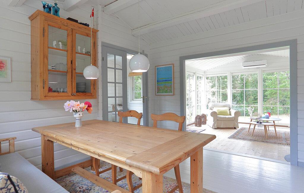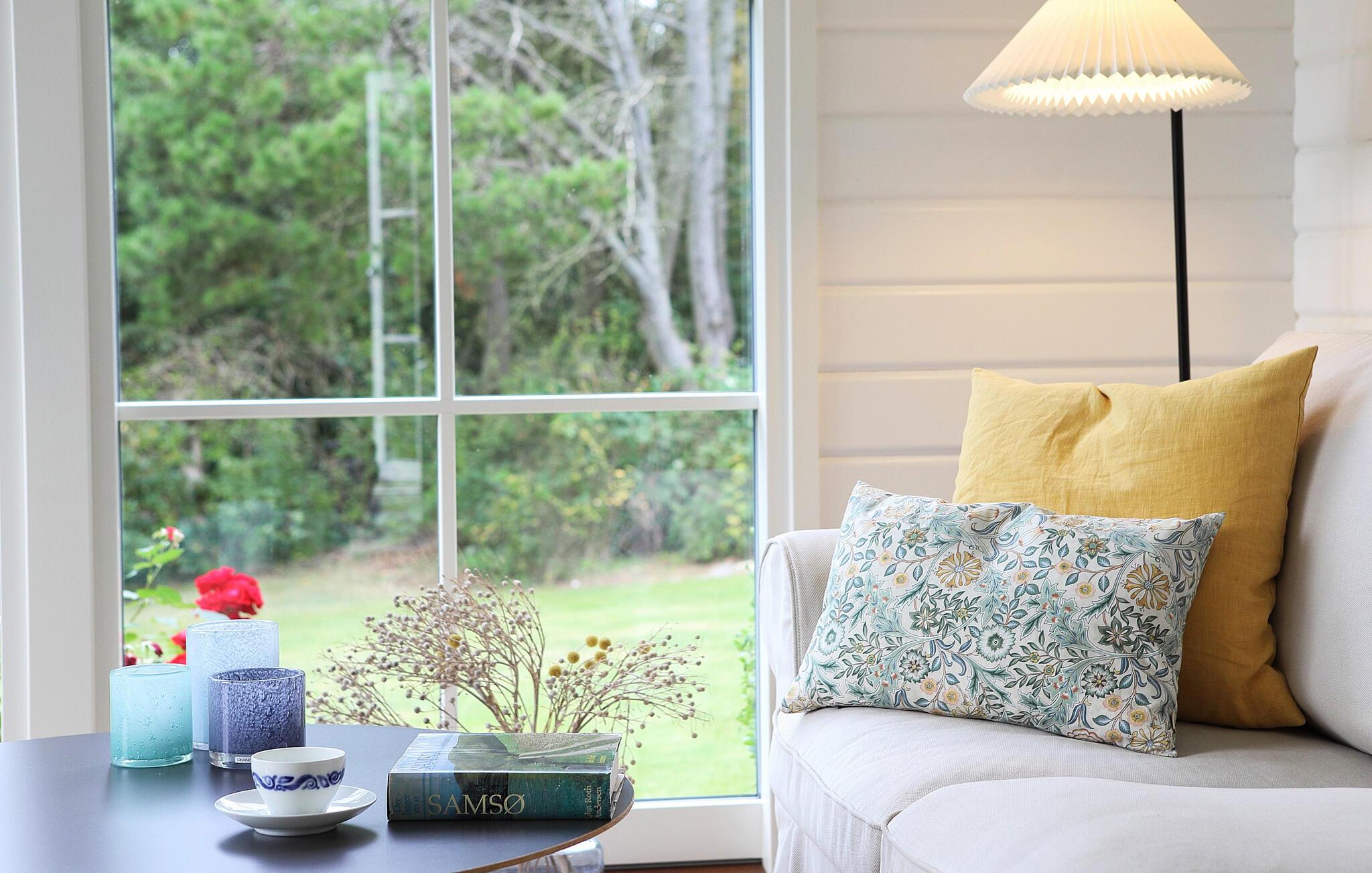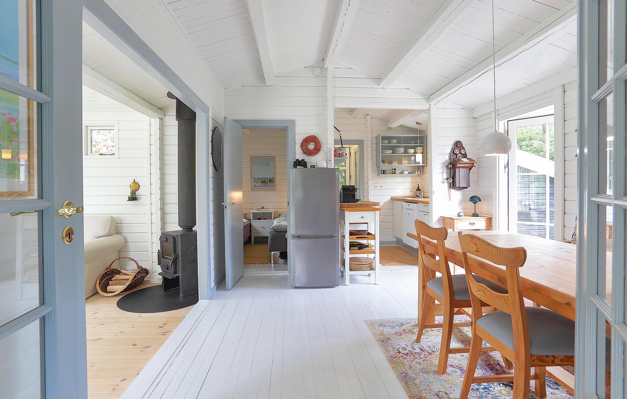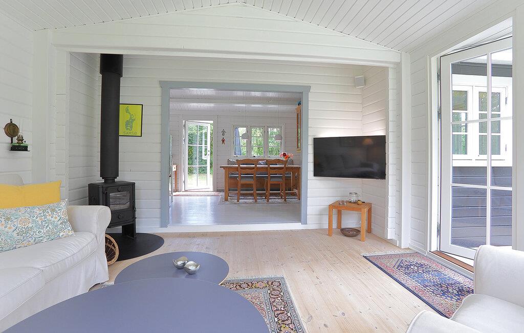 Die ruhige Lage Ihres Ferienhauses inmitten üppiger Natur bietet die ideale Umgebung, um den Alltag hinter sich zu lassen und die dänische Inselidylle zu genießen. Freuen Sie sich auf die helle und freundliche Atmosphäre des Hauses. Der Wohnbereich mit großen Fenstern schafft eine einladende Stimmung und bietet einen wunderbaren Blick ins Grüne. Lassen Sie sich auf dem Sofa nieder, genießen Sie die Wärme des Kaminofens oder entspannen Sie mit einem guten Buch. Die offene Küche ermöglicht Ihnen, mühelos köstliche Mahlzeiten zuzubereiten, die Sie anschließend im liebevoll eingerichteten Essbereich genießen können.