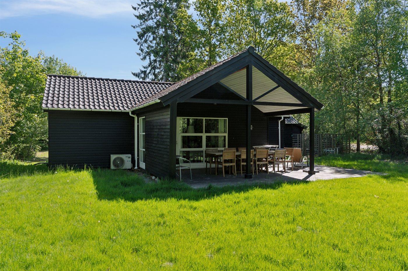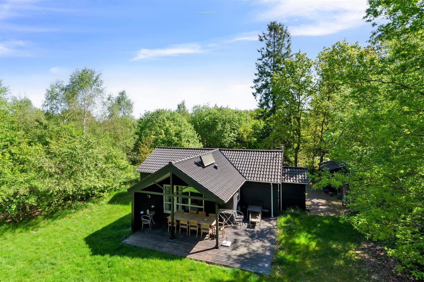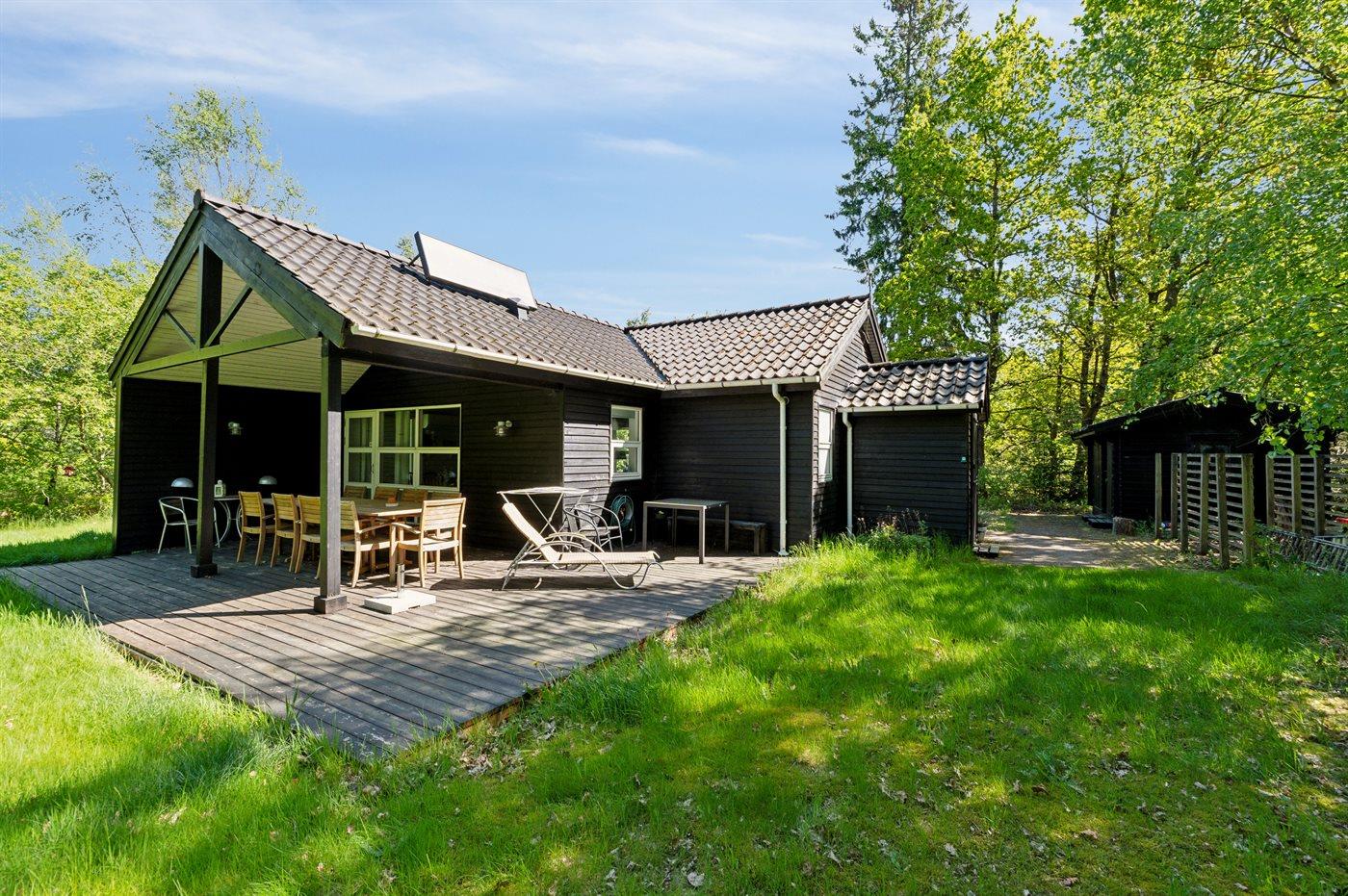 Modernes Ferienhaus in ruhiger Natur bei Give mit Terrasse, Kamin und guter Ausstattung für erholsame Tage.