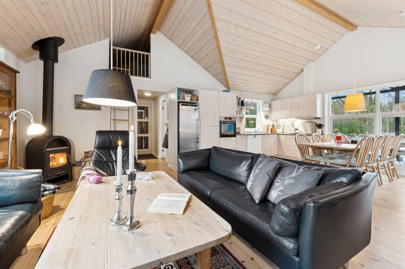 Das Innere des Ferienhauses präsentiert sich hell und modern mit einer sehr guten Raumaufteilung, die ideal für beispielsweise eine Familie mit 2-3 Kindern ist. Der Mittelpunkt des Hauses ist das große, offene Wohnzimmer mit Wohnküche, ein feiner Ort, um die Familie für gemütliche Stunden während des Urlaubs zu versammeln – auch wenn das Wetter mal nicht mitspielt.