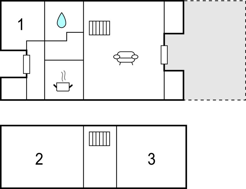 Dieses Ferienhaus bietet ideale Bedingungen für einen entspannten Urlaub mit der Familie oder Freunden. Das Haus erstreckt sich über zwei Etagen und verfügt über 3 Schlafzimmer, die mit einem Doppelbett und 6 Einzelbetten ausgestattet sind. Das Herz des Hauses ist der schöne Wohnbereich mit großem Sofa, Esstisch und offener Küche. Verbringen Sie hier gemütliche Abende vor dem Fernseher oder bei einem leckeren Abendessen mit allen Gästen.