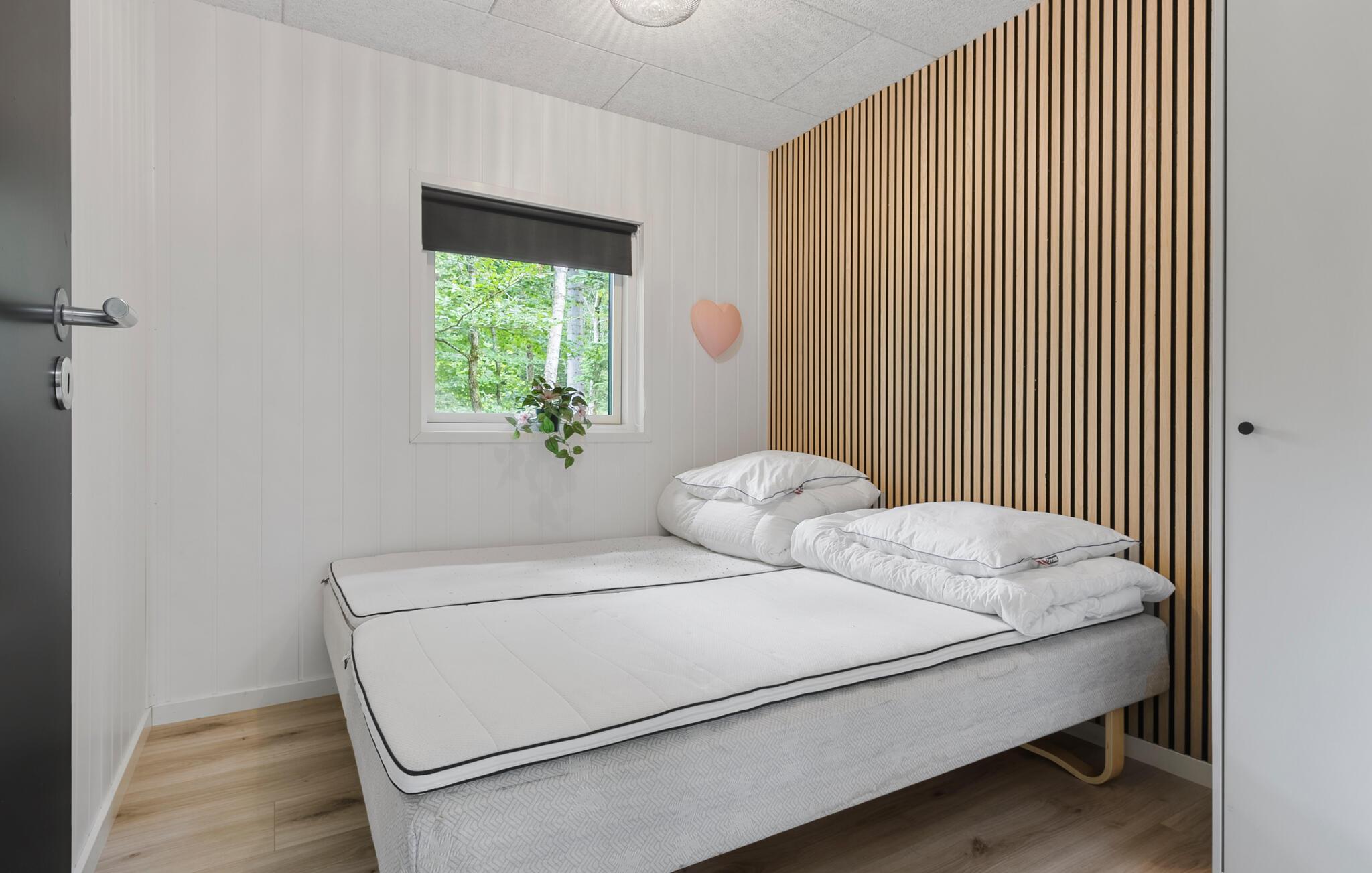 Treten Sie ein und lassen Sie sich vom modernen und stilvollen Interieur dieses charmanten Ferienhauses überraschen. Große Schiebetüren und breite Fensterfronten eröffnen einen herrlichen Blick ins Grüne und lassen auf Wunsch die angenehme Waldluft in die geschmackvoll möblierten Räume. Freuen Sie sich auf gemütliche Kochabende und harmonische Mahlzeiten am behaglich beleuchteten Esstisch, während der Kaminofen leise knistert. Lassen Sie einen langen Tag in der Natur mit einem Brettspiel ausklingen oder streamen Sie einen spannenden Film im einladenden Wohnzimmer.
