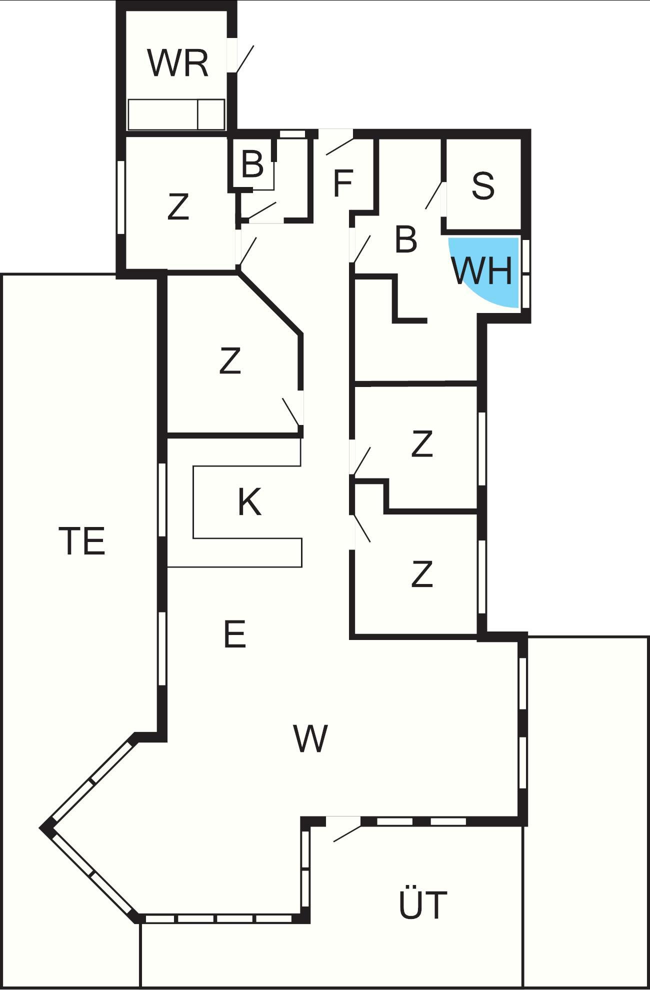 4 Schlafz.: (1DB)+(1DB)+(2B)+(2B), Kinderbett