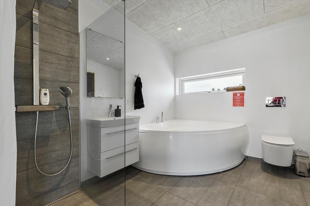 Willkommen im Bækholmen 5 C – einem hellen, neu erbauten Ferienhaus mit Platz für acht Personen und euren vierbeinigen Freund. Das Haus bietet ein lichtdurchflutetes und einladendes Wohnzimmer mit bequemen Möbeln und einem Kaminofen, wo ihr gemeinsam plaudern, Spiele spielen oder einen gemütlichen Filmabend genießen könnt. Vom Wohnzimmer aus hast du direkten Zugang zur überdachten Terrasse – perfekt für den Morgenkaffee oder das Abendessen vom Grill. Die Küche ist modern und gut ausgestattet, unter anderem mit eingebautem Ofen, Geschirrspüler und allem, was ihr für gemeinsame, leckere Mahlzeiten benötigt. Die Aufteilung auf vier Schlafzimmer macht es leicht, Raum für Paare, Freunde und Kinder zu schaffen, und mit zwei Badezimmern – von denen eines einen Whirlpool und Sauna bietet – stehen Entspannung und Wohlgefühl im Mittelpunkt. Für die kleinsten Gäste stehen sowohl Hochstuhl als auch Kinderbett bereit.