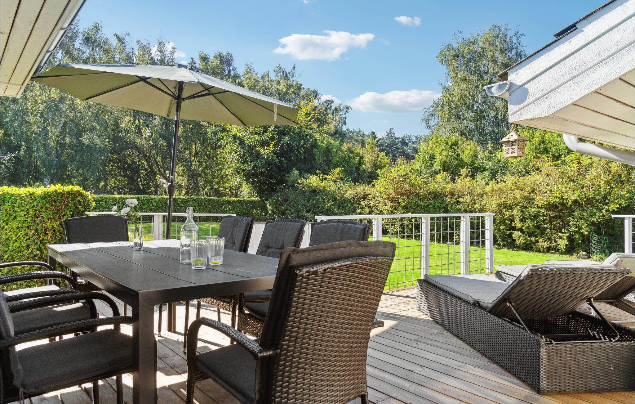 Dieses Ferienhaus liegt in einem ruhigen Gebiet nah an Ebeltoft, und Sie können zu Fuß/mit dem Fahrrad Läden, Bowling und Restaurants erreichen. Es gibt einen Pfad zum Strand. Das Haus ist gut ausgestattet und so eingerichtet, dass sowohl eine als zwei Familien zu jeder Jahreszeit den Urlaub genießen können. Das Grundstück ist mit Bepflanzung, windgeschützten Stellen und Rasen angelegt. Es gibt eine große Terrassefläche, und auf der überdachten Terrasse können Sie die Abendsonne genießen. Innerhalb einer Stunde Fahrt finden Sie viele Attraktionen. Besuchen Sie z. B. den Nationalpark in Mols Berge.