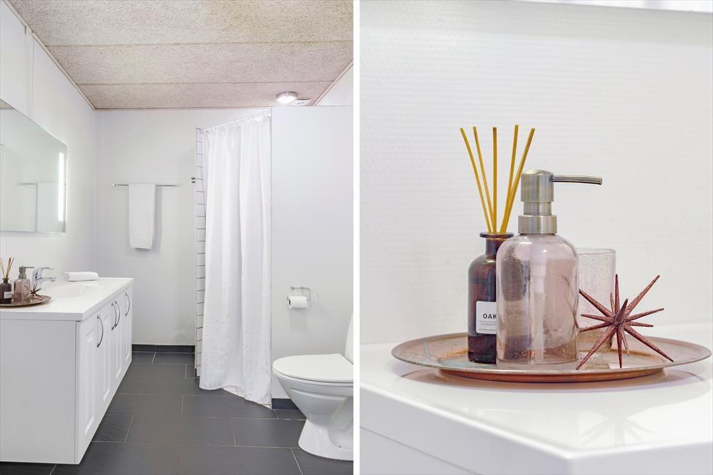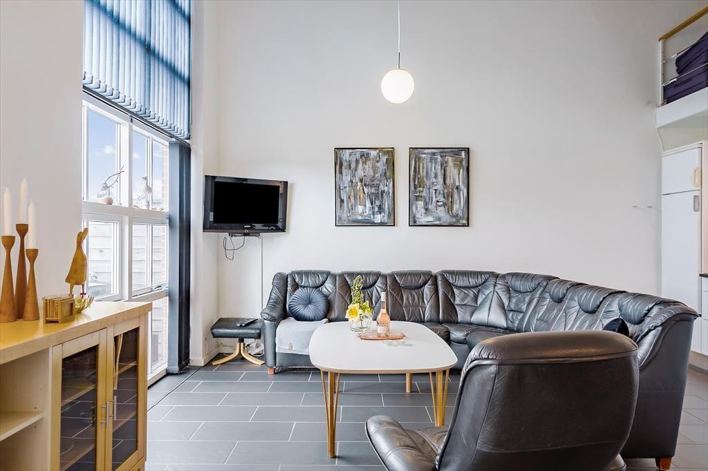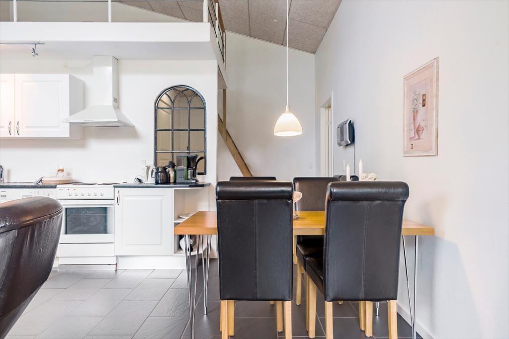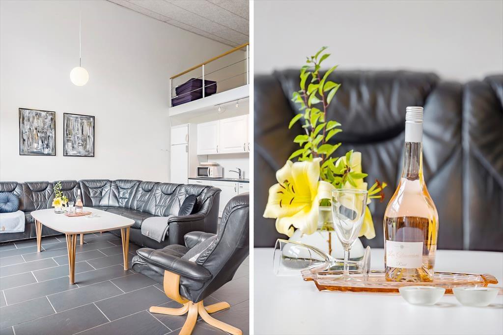 Die 70 m² große, ebenerdige Ferienwohnung aus dem Jahr 2011 ist mit zahlreichen schönen Details versehen. Hierzu zählen unter anderem ein großes Fenster, das einen herrlichen Tageslichteinfall gewährt, und die imposante Deckenhöhe des Wohnraums. Eine kleine, aber gut ausgestattete Küche fügt sich offen in den Wohnraum ein. Über der Küche befindet sich ein großer Schlafboden, der nachts als Schlafplatz und tagsüber als gemütliche Lese- und Spielecke fungiert. Ein Badezimmer mit Dusche ist vorhanden. Die beiden Schlafräume beinhalten komfortable Betten. Alle Räume sind mit einer Fußbodenheizung versehen, die das gesamte Jahr hindurch angenehme Wohntemperaturen garantiert.