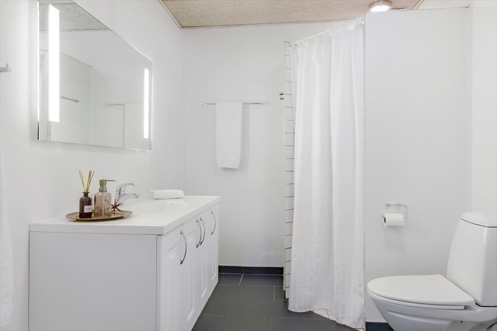 Bereits nach 200 Metern erreichen Sie das Ufer des Limfjords, der sich wunderbar für Bootstouren und Ausflüge mit dem Kajak eignet. Am Ufer treffen Sie auf einen kleinen Steg und einen Slipway, die es beide erleichtern, in tiefere Wasserbereiche zu gelangen. Der schöne Strand Vile Vestergårds besticht mit wunderschönem Ausblick über den Limfjord und die Sallingsundbrücke, die hinüber nach Mors führt, wo sich der populäre Jesperhus Blomsterpark auf den Besuch Ihrer Familie freut. Der beschauliche Hafenort Glyngøre ist nach wenigen Kilometern erreicht. Die Wohnung bildet einen guten Ausgangspunkt für Erkundungstouren auf Salling und in der Umgebung - ganz gleich, ob Sie die bekannte Mittelalterburg Spøttrup, die Handelsstadt Skive oder die kleine Limfjordinsel Fur kennenlernen möchten.