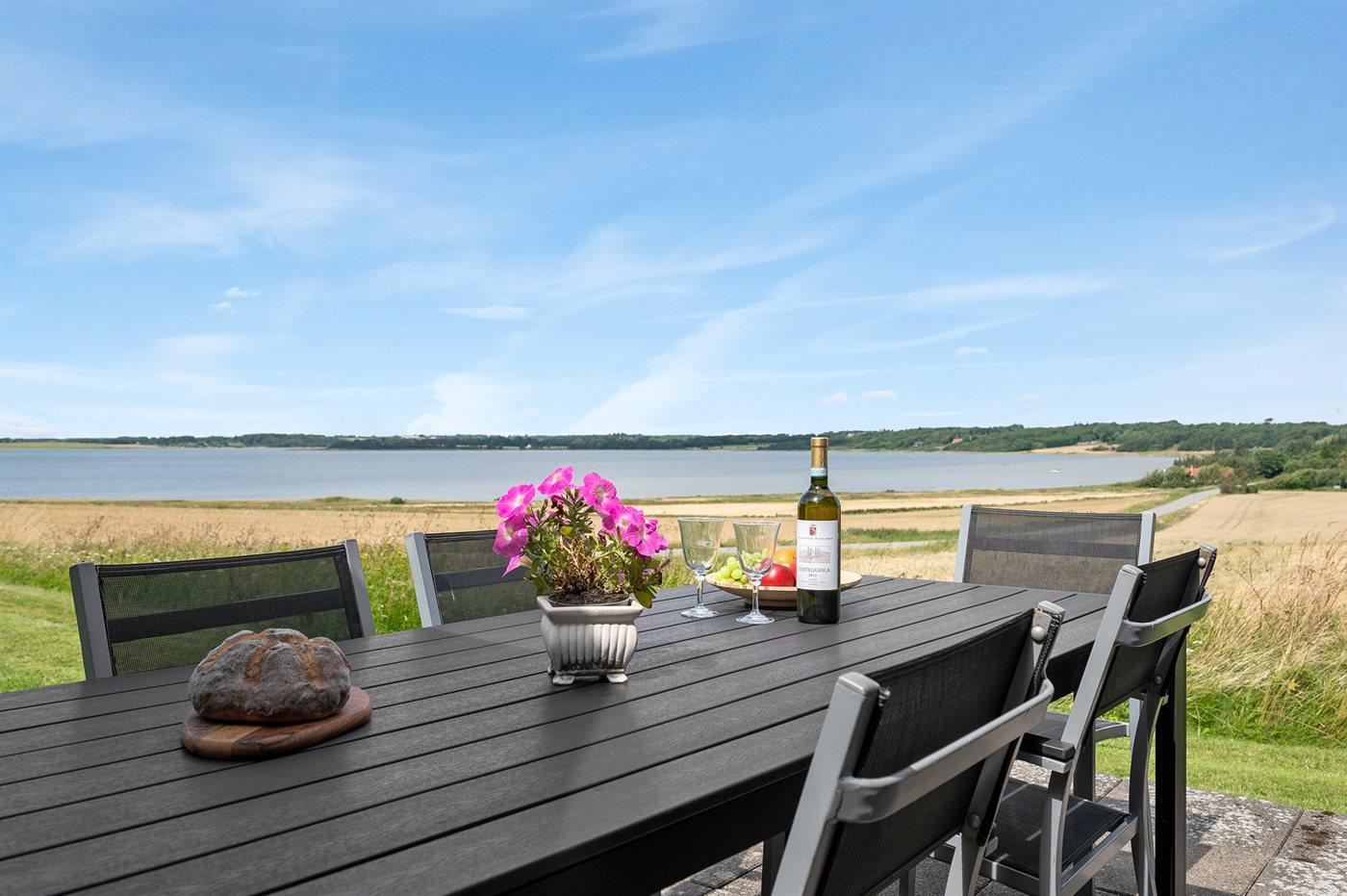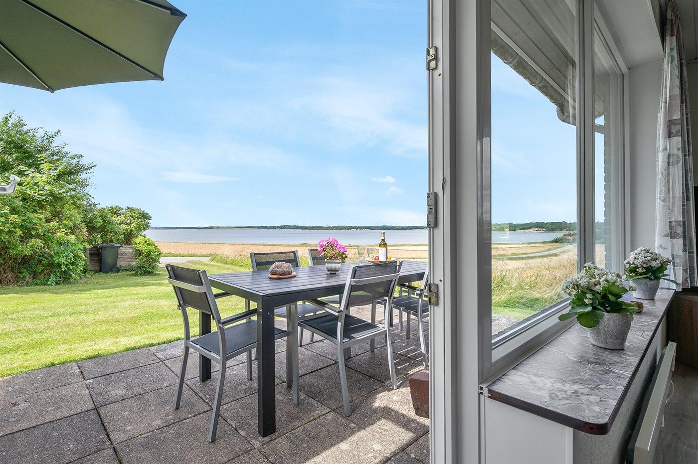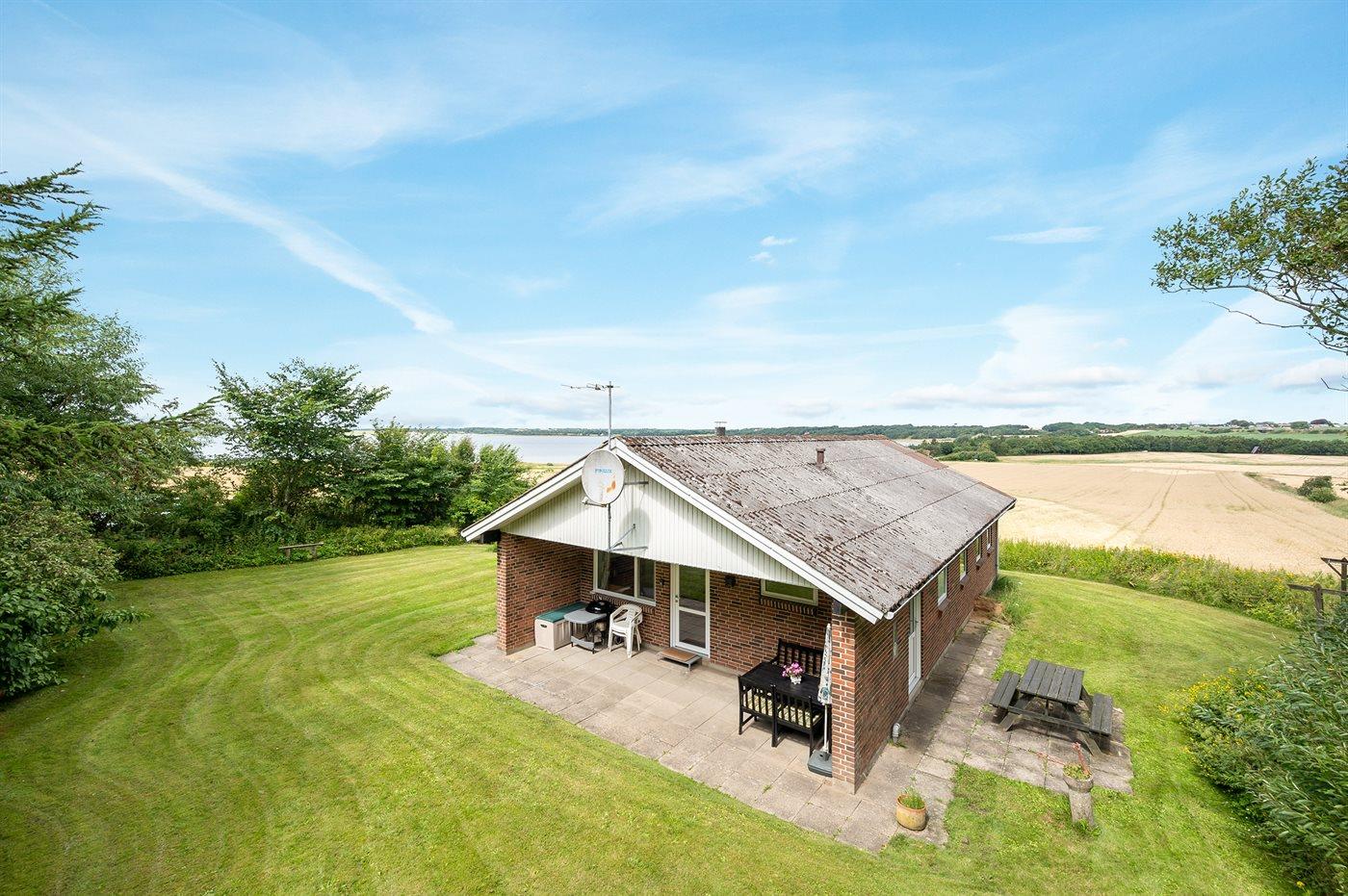 Idyllisches Ferienhaus in Roslev mit Blick auf die Bucht und kinderfreundlichem Strand.