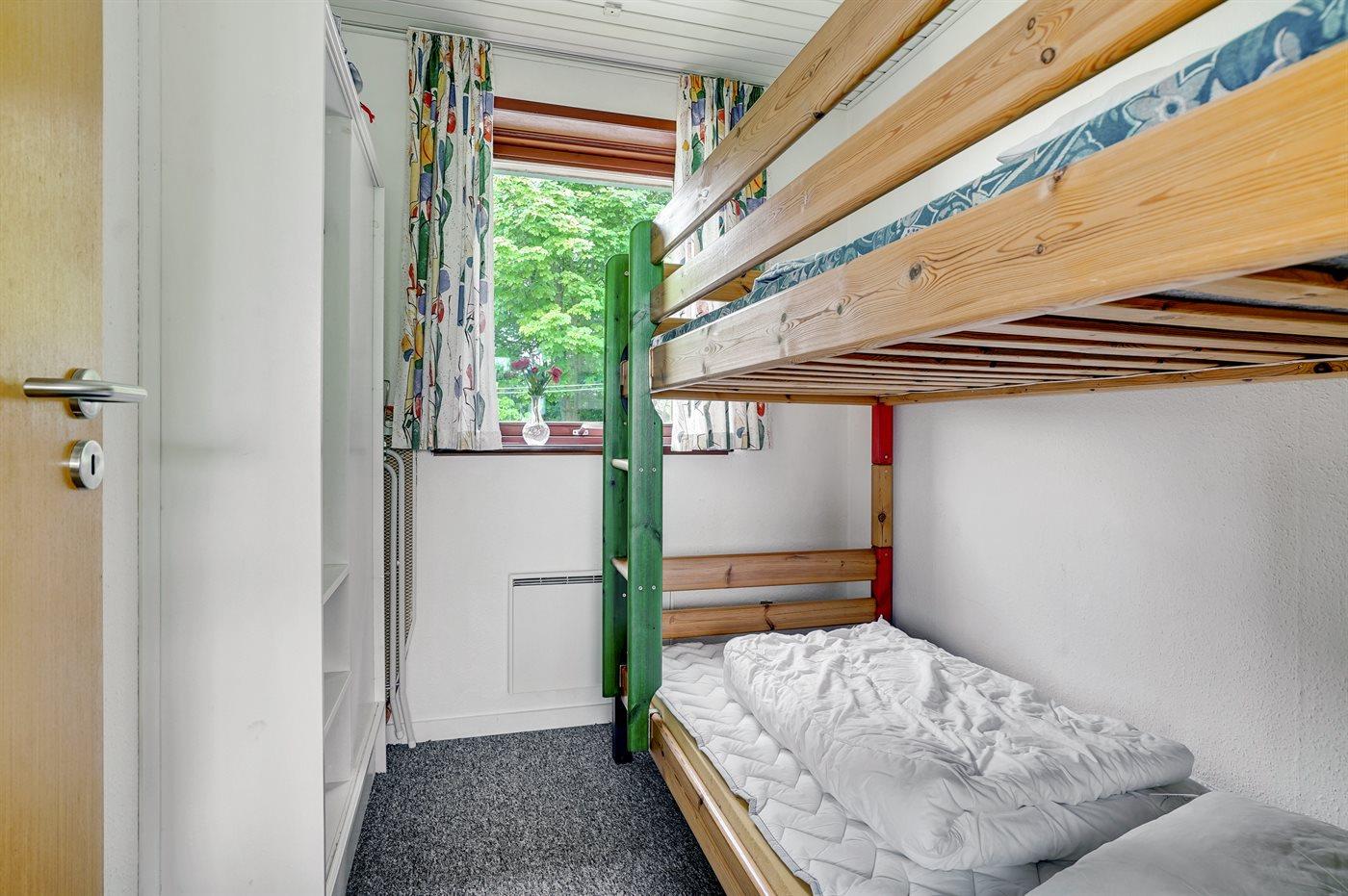 Die Schlafplätze verteilen sich auf 3 Schlafräume. 2 Schlafplätze in einem Doppelbett. 4 Schlafplätze in Etagenbetten. Ferner steht ein Kinderbett zur Verfügung.