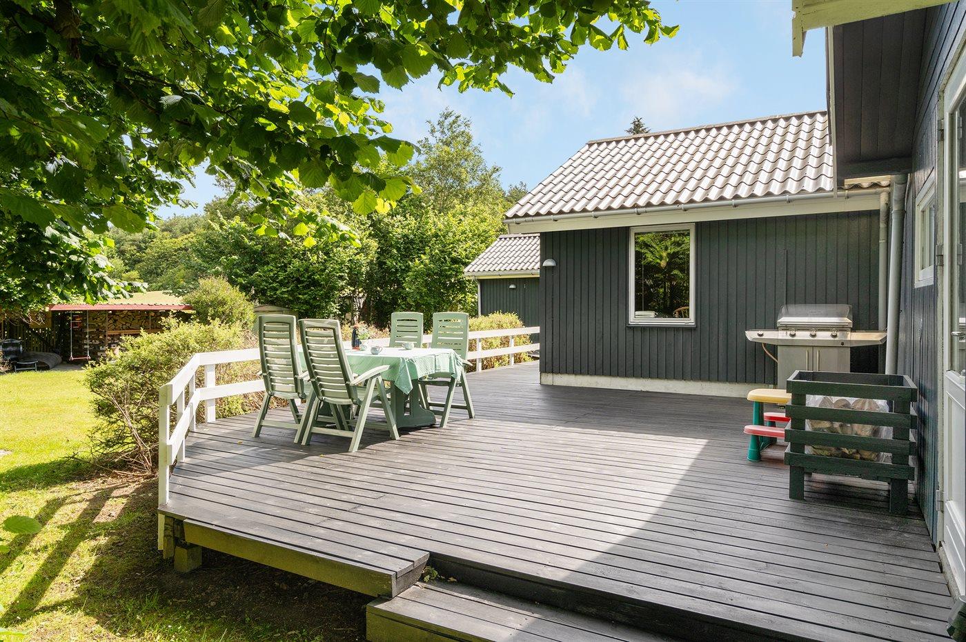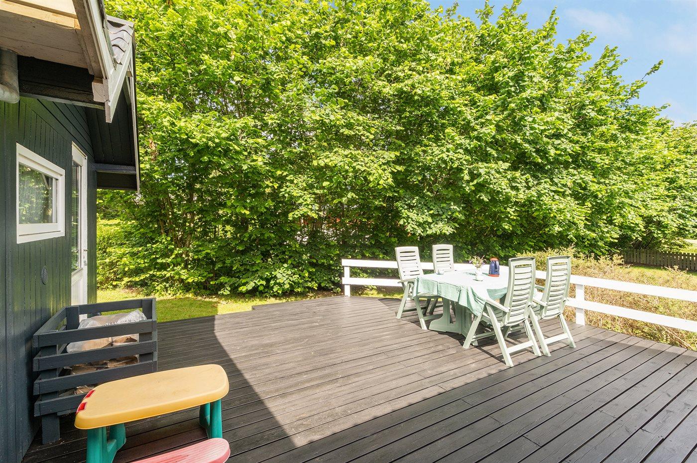 Die Ferienunterkunft liegt auf einem 1275 m² großen Naturgrundstück. Die Entfernung zum Fjord beträgt 150 m. Es gibt einen Badesteg in der Nähe. Die nächste Einkaufsmöglichkeit liegt 6000 m entfernt. In einem Abstand von 5500 m gibt es einen Golfplatz. Es steht ein offenes Terrassenareal zur Verfügung. Außerdem gibt es überdachte Terrasse. Schaukel. Es steht ein Grill zur Verfügung. Parkplatz auf dem Grundstück.