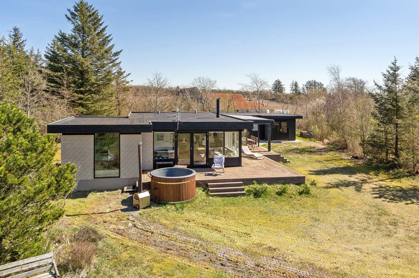 Gemütliches Ferienhaus in Roslev mit Fjordblick, Hot Tub und großem Naturgrundstück für entspannte Urlaubstage.
