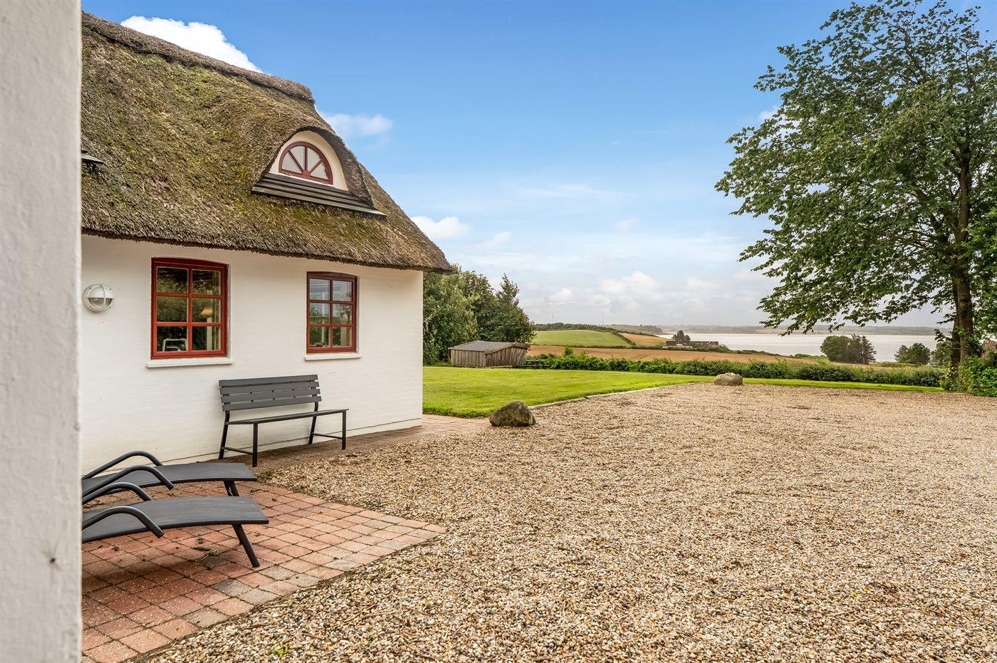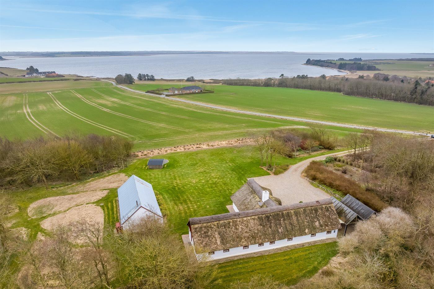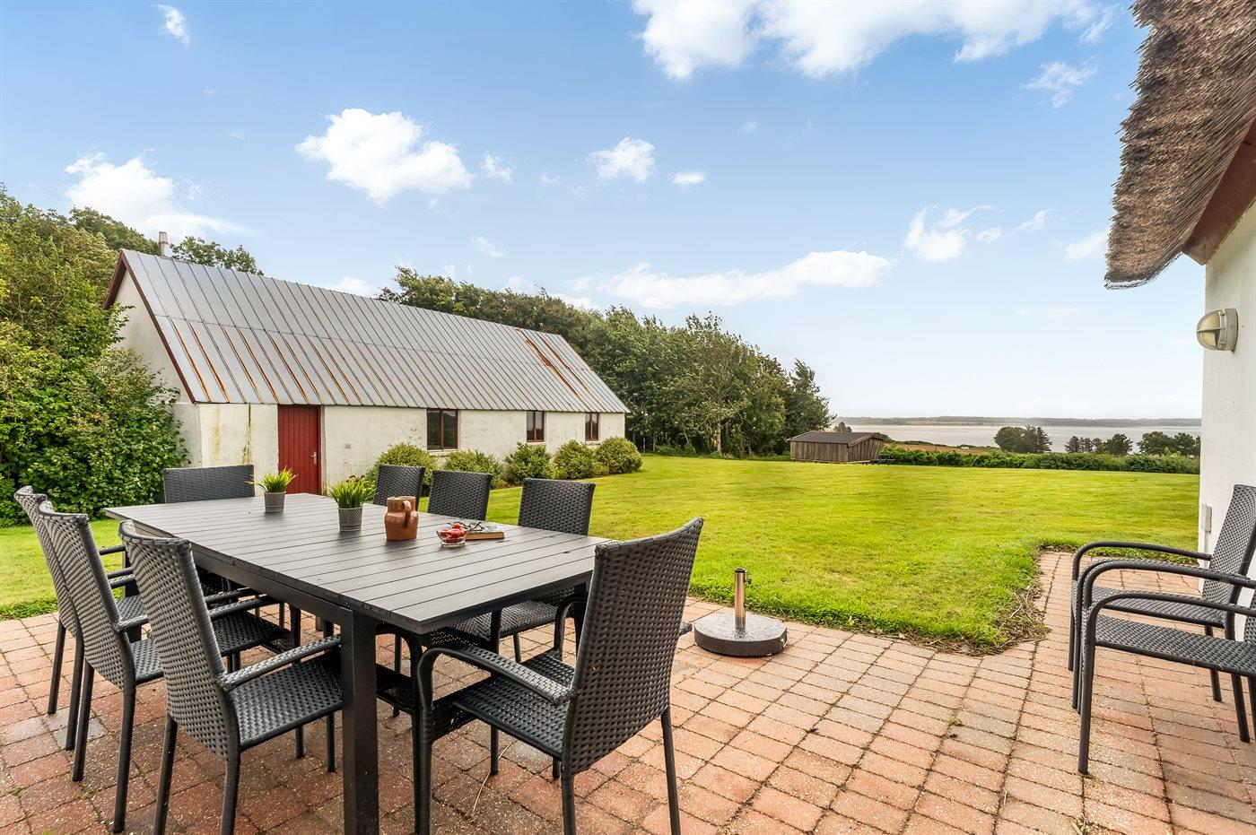Gemütliches Ferienhaus mit Reetdach und Fjordblick in naturnaher Umgebung von Vile, Dänemark.