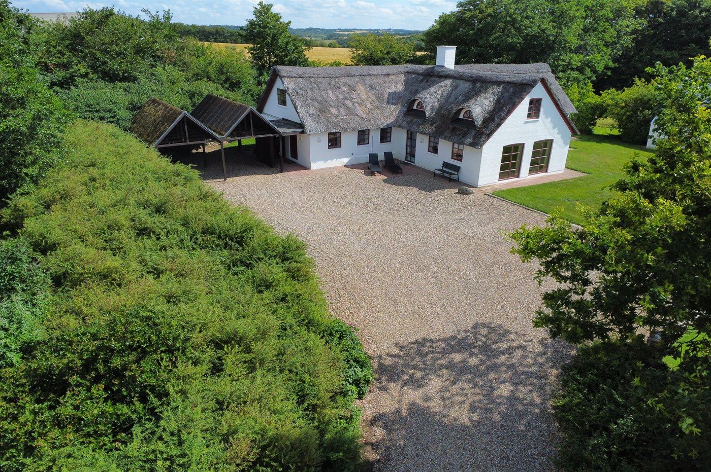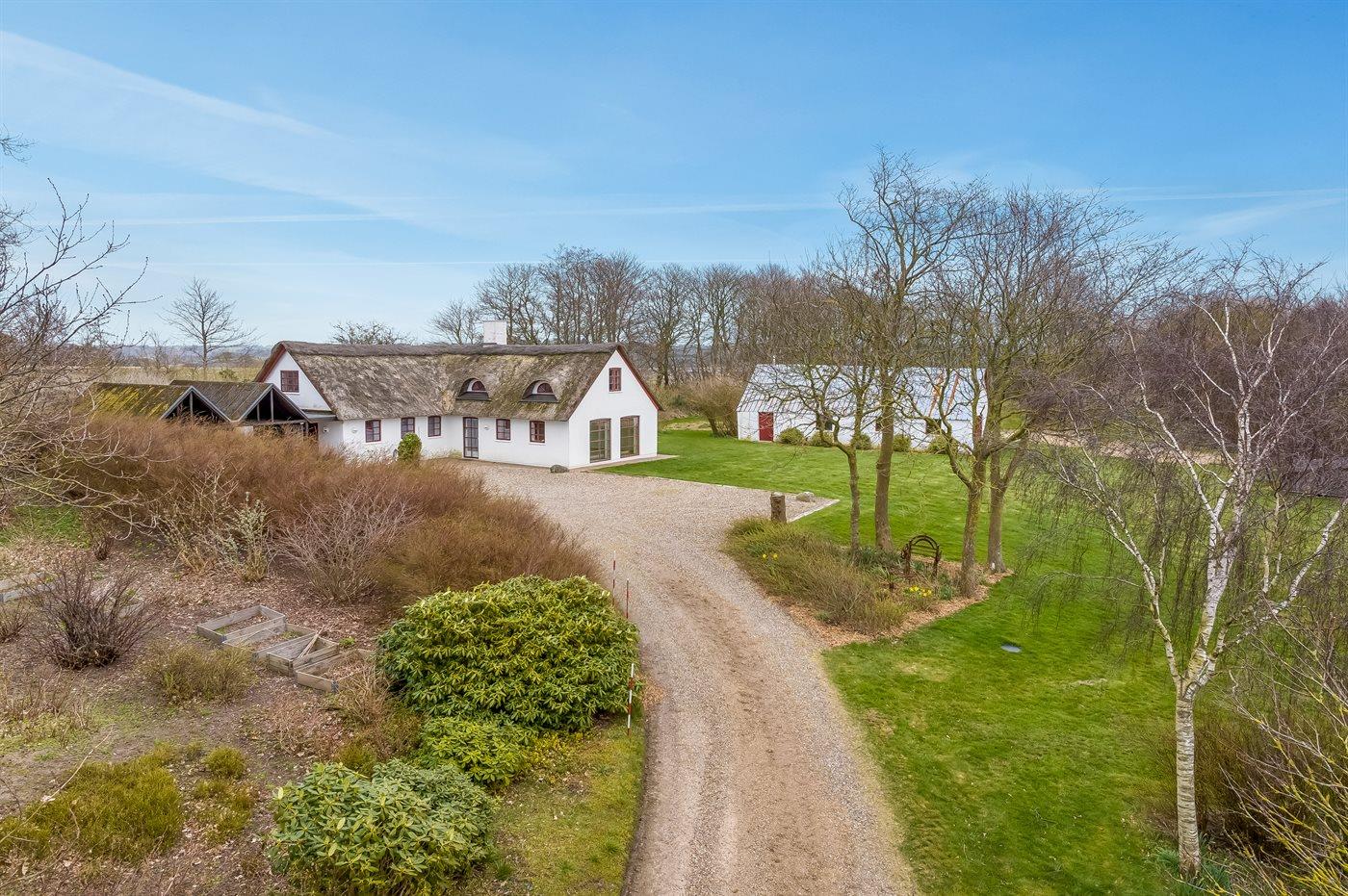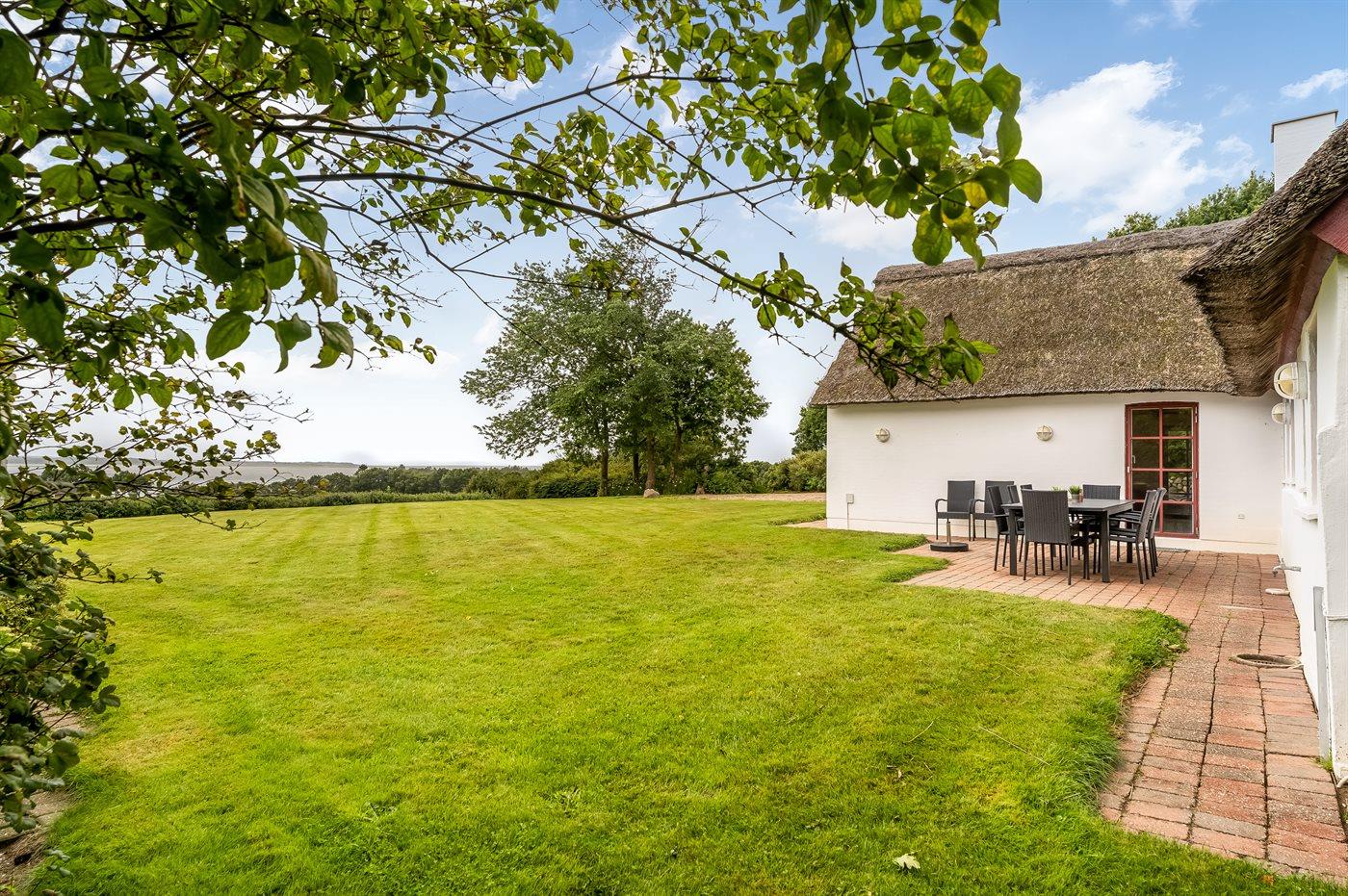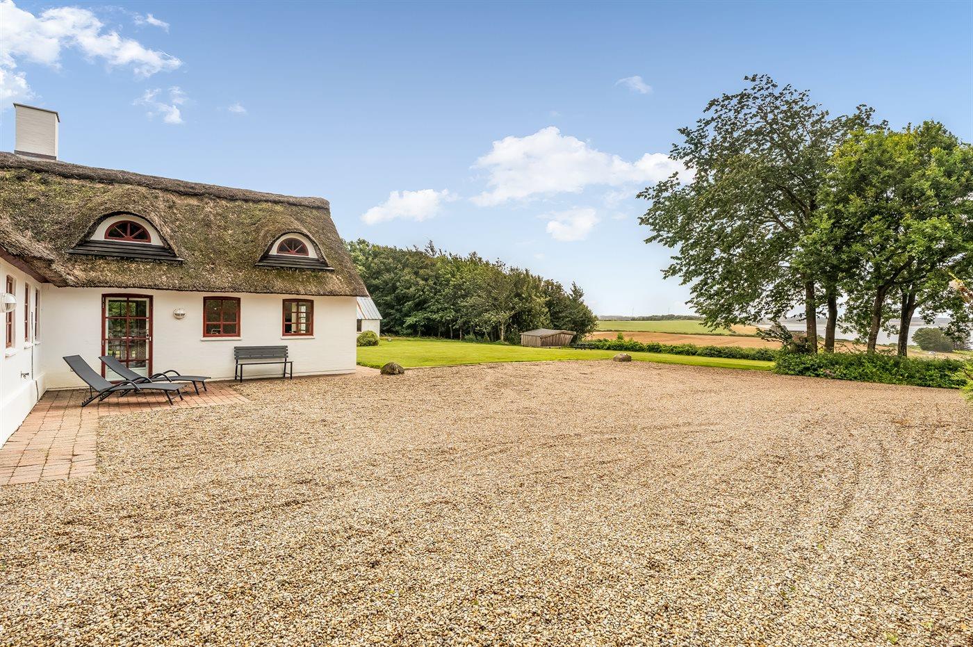 Gemütliches Ferienhaus mit Reetdach und Fjordblick in naturnaher Umgebung von Vile, Dänemark.