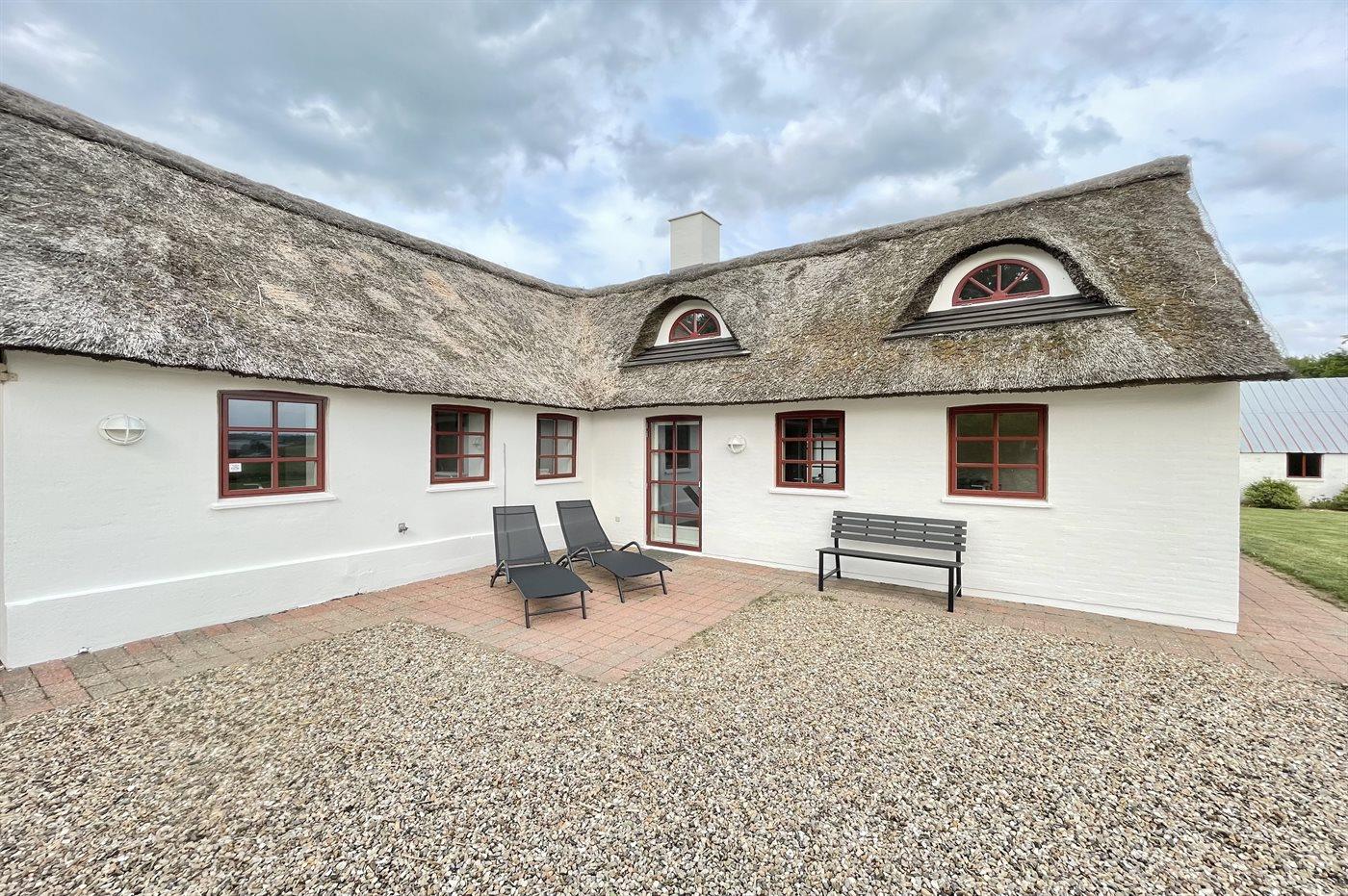 Ferienhaus mit Reetdach und Fjordblick in Vile