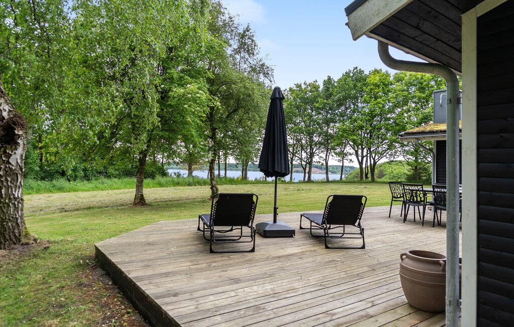 Gemütliches Ferienhaus am Limfjord mit Panoramablick und großzügiger Holzterrasse für erholsame Tage.