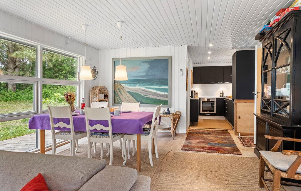 Ihr charmantes Ferienhaus liegt eingebettet in die Natur und bietet Ihnen ideale Voraussetzungen für eine erholsame Auszeit mit Blick auf den Limfjord. Die ruhige Lage schafft den idealen Rahmen für erholsame Tage mit der Familie. Genießen Sie den offenen Wohnbereich mit großen Fensterfronten, die den Blick auf das Wasser freigeben. Machen Sie es sich auf dem Sofa gemütlich, beobachten Sie das Lichtspiel über dem Fjord oder entspannen Sie abends am knisternden Kaminofen. Nutzen Sie die Küche mit modernen Geräten, um gemeinsam zu kochen und Ihre Mahlzeiten am Esstisch mit Aussicht zu genießen.