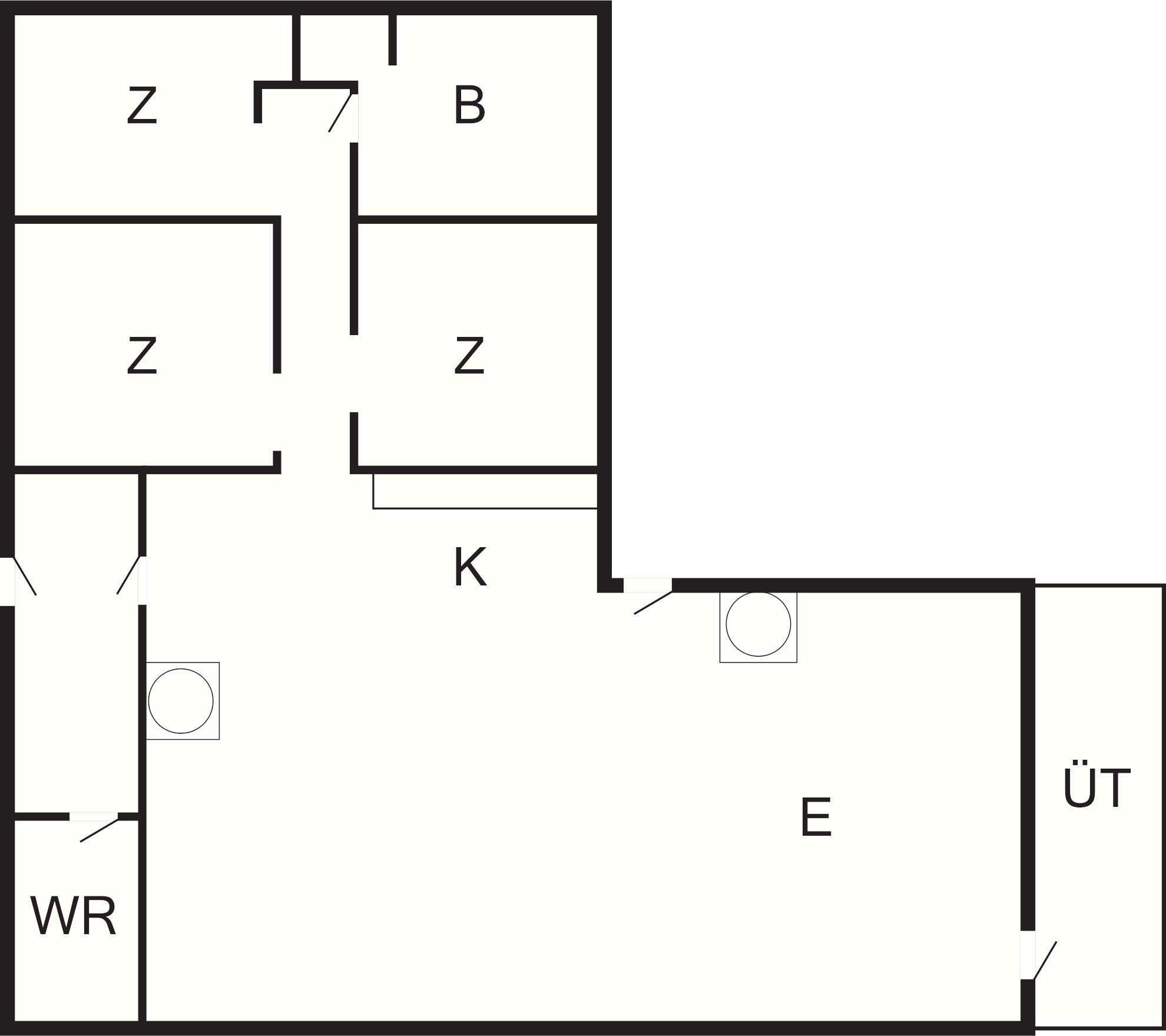 Bad: Waschm, Trockner, WC, Waschb., Dusche, Fußbodenheiz.