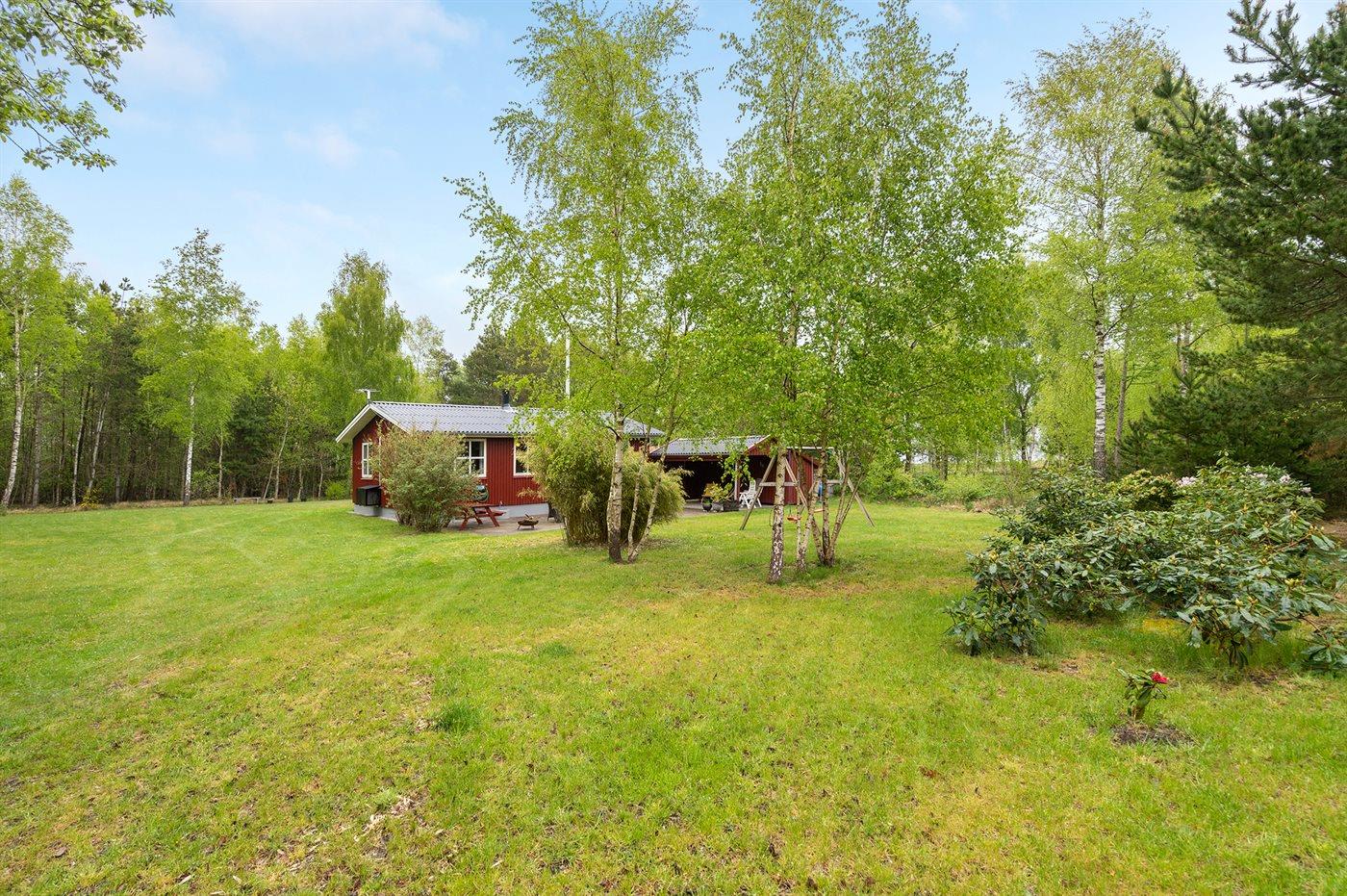 Die Ferienunterkunft liegt auf einem 2834 m² großen Gründstück, das in einem Wald/Plantage liegt. Die Entfernung zum Fjord beträgt 150 m. Die nächste Einkaufsmöglichkeit liegt 8000 m entfernt. Es steht ein offenes Terrassenareal zur Verfügung. Außerdem gibt es überdachte Terrasse. Geräteraum. Schaukel. Sandkasten. Rutsche. Es steht ein Grill zur Verfügung. Parkplatz auf dem Grundstück.