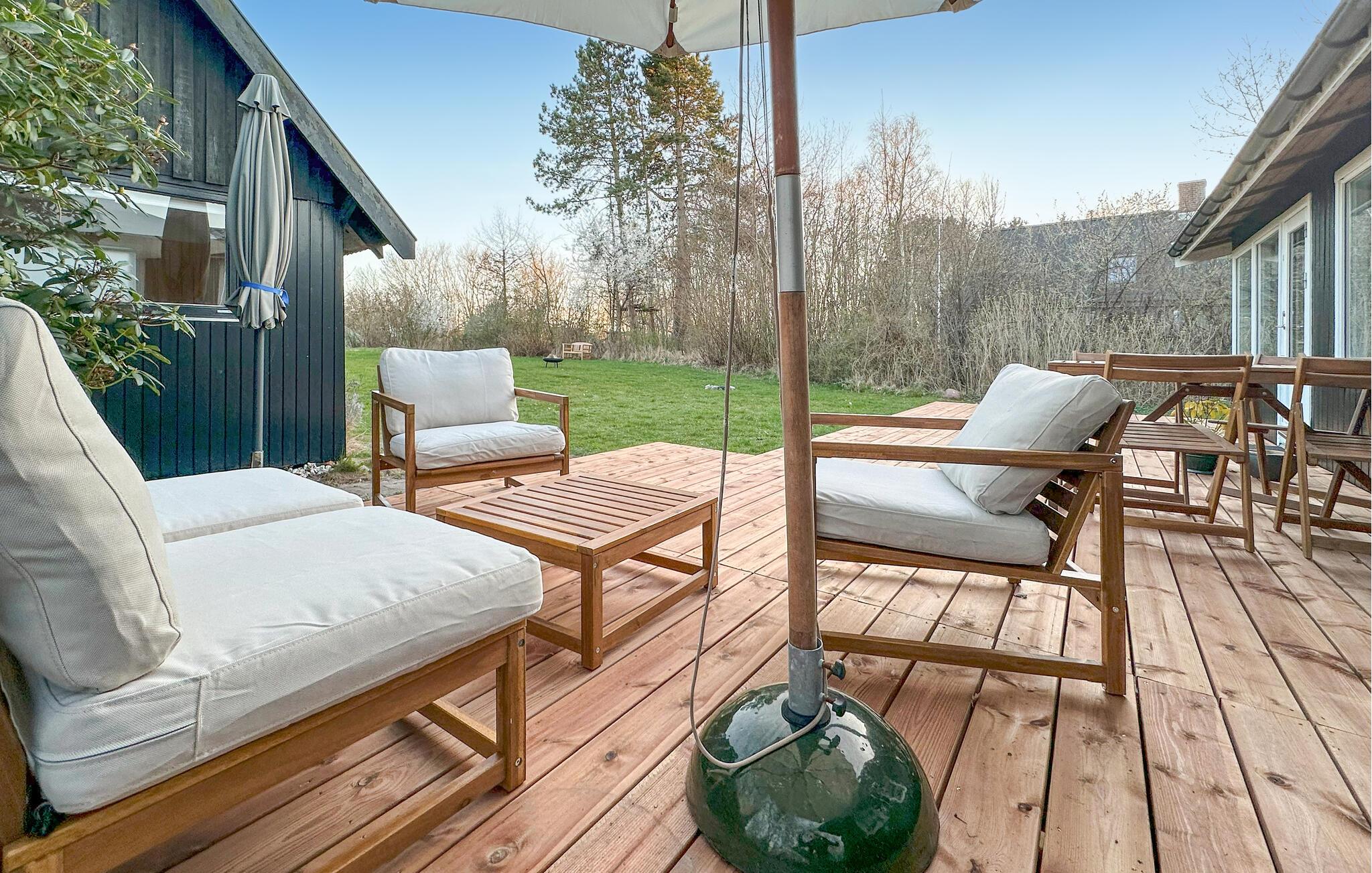An sonnigen Morgenstunden lädt Sie die Terrasse zum Frühstück im Freien ein, während Ihre Kinder im großzügigen Garten unbeschwert toben können. Abends bietet sich die perfekte Gelegenheit für ein stimmungsvolles Barbecue, bei dem Sie den Tag entspannt mit einem Glas Wein ausklingen lassen und dem Rauschen der Wellen lauschen.