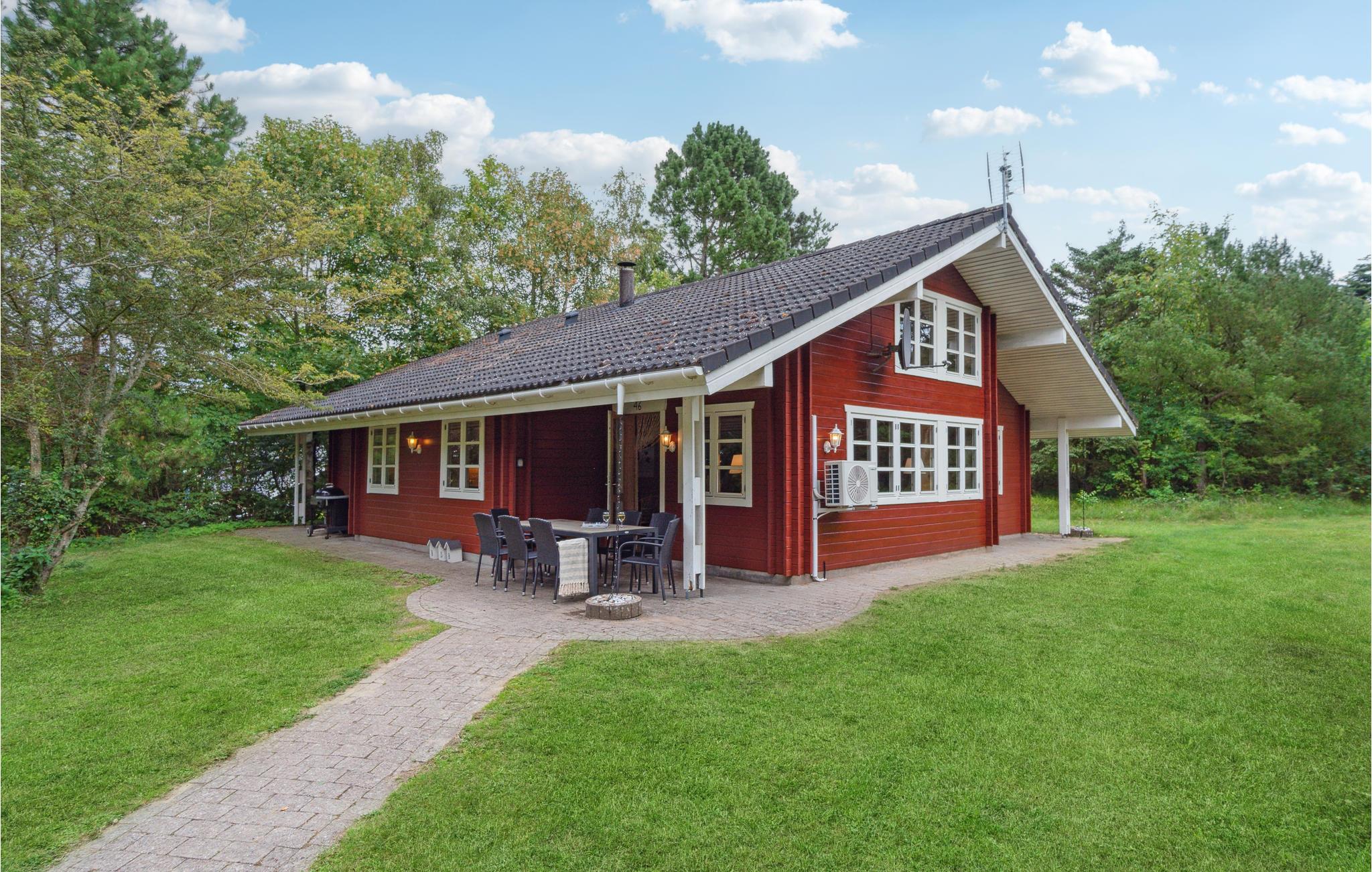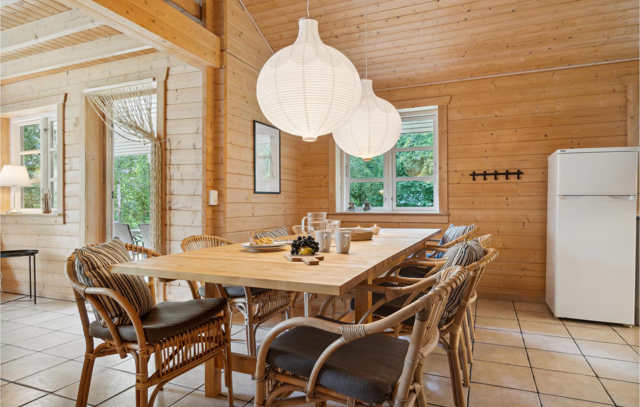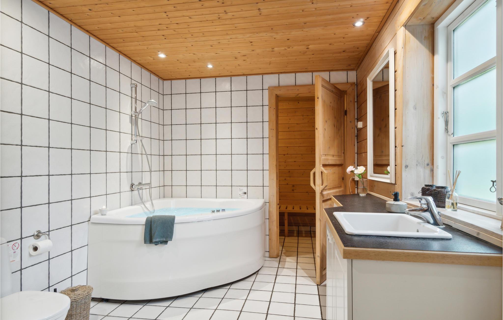 In ruhiger Lage nur wenige hundert Meter vom Wasser entfernt heißt Sie dieses Ferienhaus willkommen. Verbringen Sie gesellige Stunden um den großen Esstisch und machen Sie sich es in der kühlen Jahreszeit Brettspielen gemütlich beim leisen Prasseln der Flammen im Kaminofen. Nach einem langen Spaziergang an der frischen Luft finden Sie wohlige Wärme in der Sauna oder im Whirlpool. An sonnigen Tagen können Sie auf der Terrasse ein Kreuzworträtsel gemeinsam raten, während die Kleinen sich im Garten austoben.