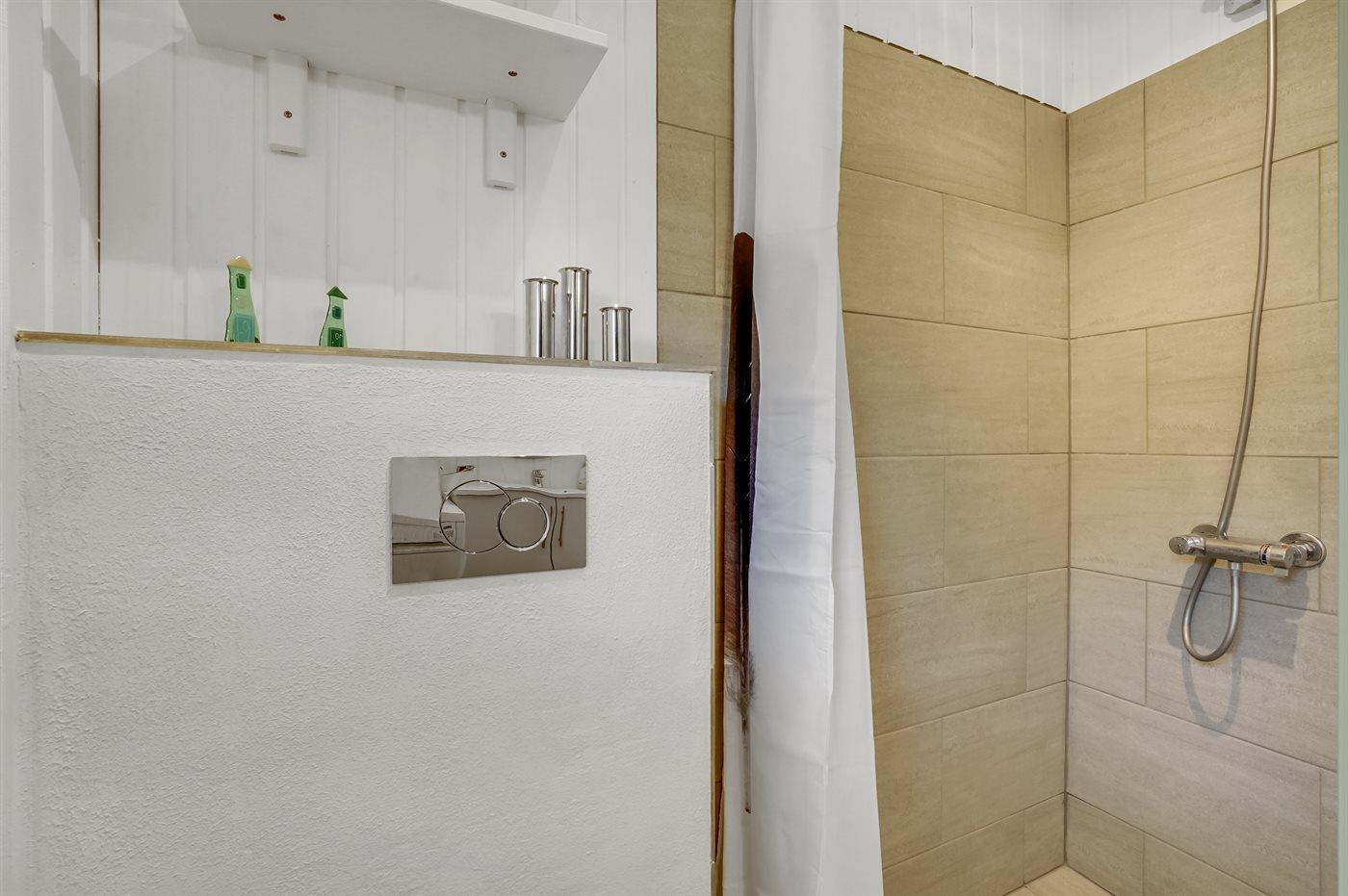 Es gibt 1 Badezimmer mit Duschnische und 2 Toiletten, davon 1 Gästetoilette. Fußbodenheizung in 2 Badezimmern.