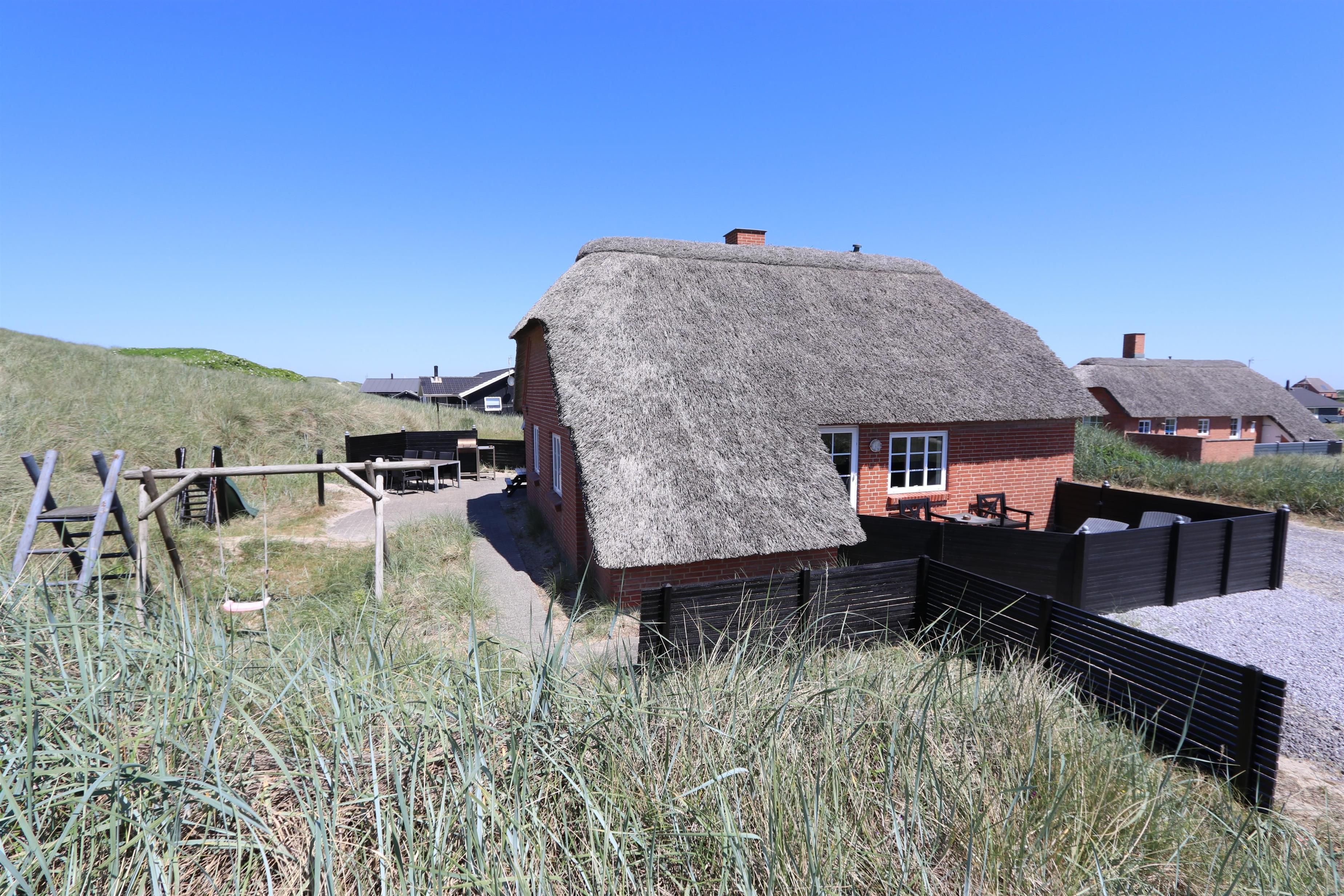 Bis zur Naturschutzgebietsgrenze und in der ersten Dünenreihe und als letztes Haus an der Straße erbaut, liegt dieses schöne und gepflegte, reetgedeckte Ferienhaus mit eigenem Pool. Das Haus ist komfortabel eingerichtet und auch für 2 Familien (4 erwachsene und 4 Kinder) sehr gut geeignet. 2 Haustiere sind erlaubt. Kostenloser Internetzugang.