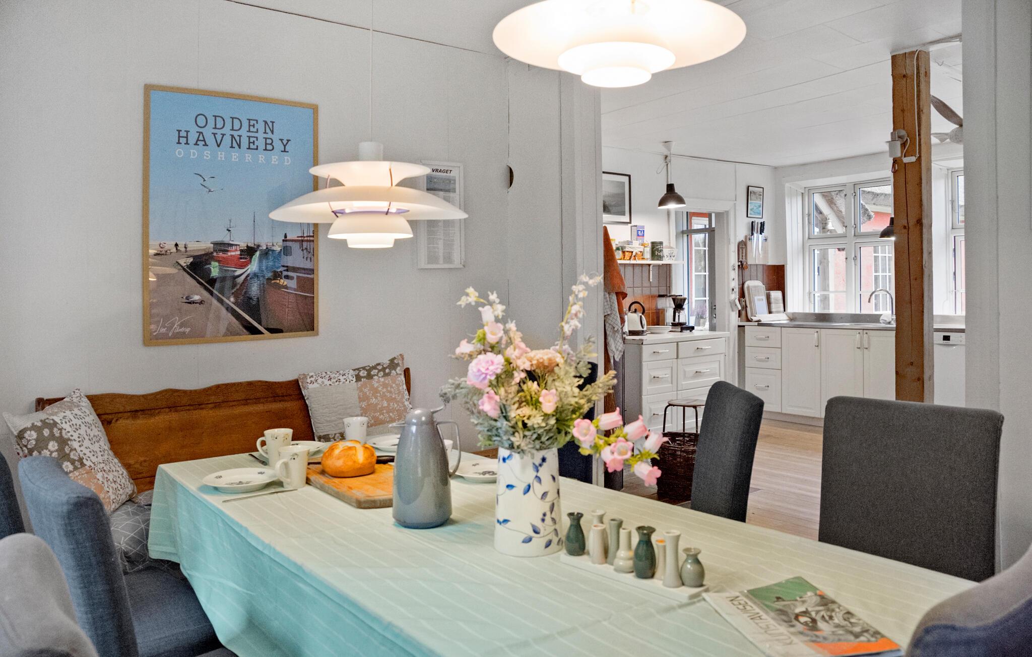 Am malerischen Yderby Lyng Strand erwartet Sie ein entspannter Familienurlaub, der spannende Urlaubsabenteuer und entspannte Erholung vereint. Das charmante Ferienhaus bietet Ihnen den idealen Rahmen für gemeinsame Erlebnisse und erholsame Momente. Starten Sie den Tag mit einem ausgiebigen Frühstück, das Sie in der großen, offenen Küche zubereiten können. Speisen Sie am gemütlichen Esstisch oder nehmen Sie Ihre Mahlzeiten mit auf die Terrasse, wo Sie sie unter dem schützenden Sonnenschirm genießen können.