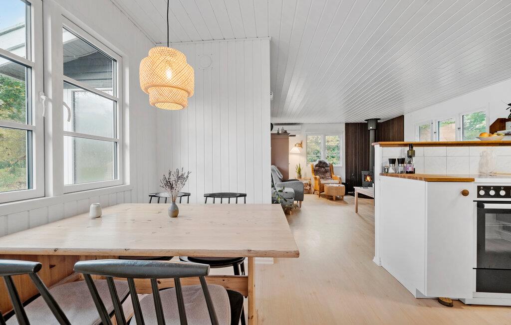 Am malerischen Yderby Lyng Strand erwartet Sie ein unvergesslicher Familienurlaub voller gemeinsamer Erlebnisse und wohltuender Entspannung. Starten Sie Ihren Tag mit einem leckeren Frühstück, das Sie in der offenen, gut ausgestatteten Küche des Hauses zubereiten. Genießen Sie Ihre Mahlzeiten am gemütlichen Esstisch oder im einladenden Wintergarten. Überall können Sie die angenehme Atmosphäre Ihres Ferienhauses in Ruhe genießen.