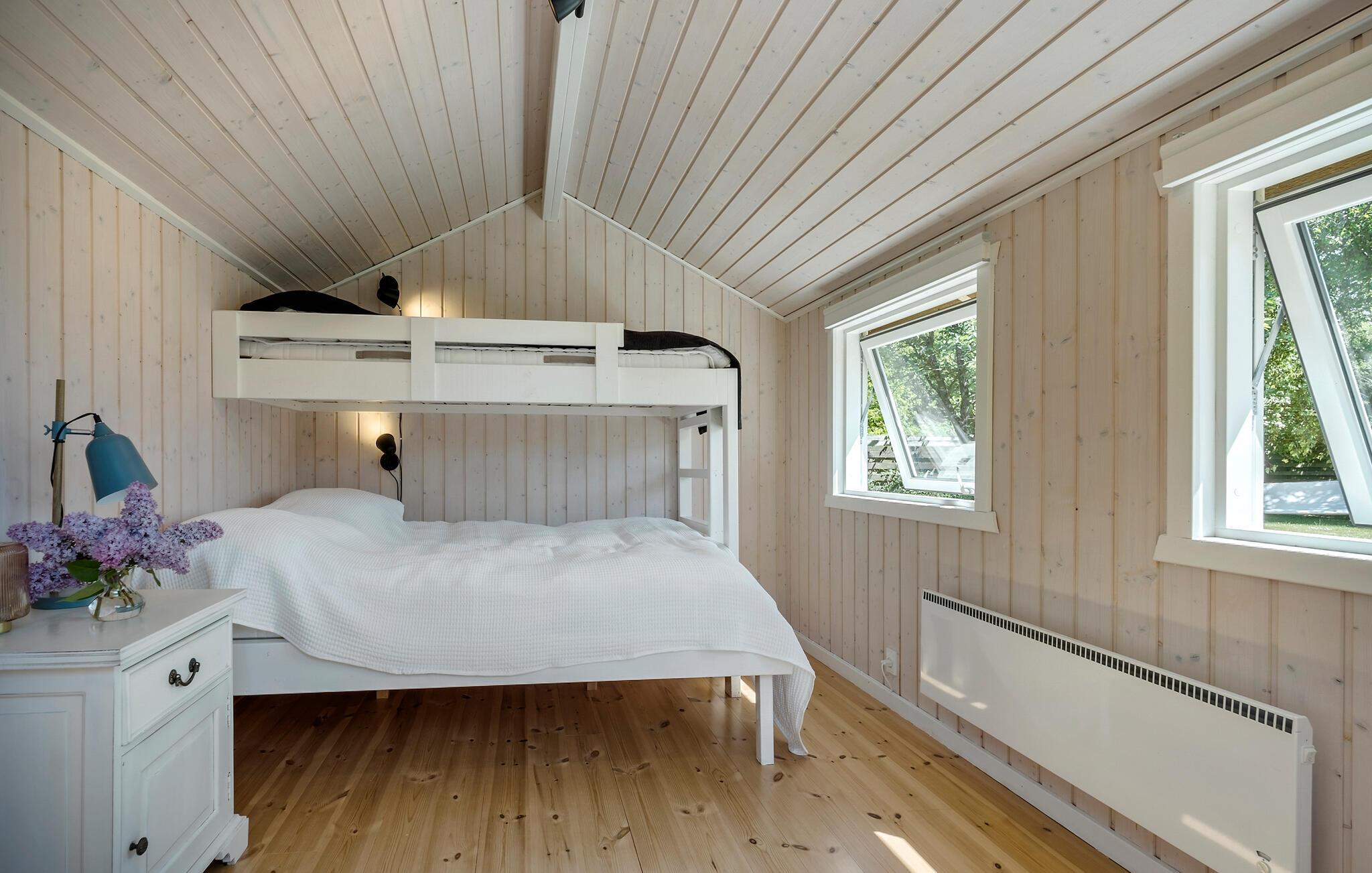 Schlafzimmer (nr. 1) - 2 Schlafmöglichkeiten. (Doppelbett(en)). 1 Schlafmöglichkeit. (Etagenbett).