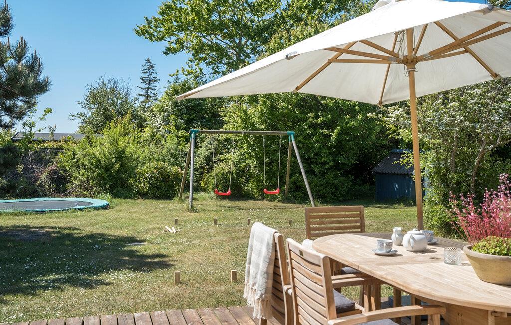 Auch für die kleinen Urlaubsgäste ist hier für Unterhaltung gesorgt. Während die Erwachsenen auf der Terrasse entspannen, können sich die Kinder auf dem Trampolin oder beim Schaukeln austoben. Das kleine Spielhaus bietet einen spannenden Rückzugsort, während die Feuerstelle zum gemütlichen Beisammensein einlädt. Auch das Shelter ist ein Ort, der Ihre Kinder begeistern wird.